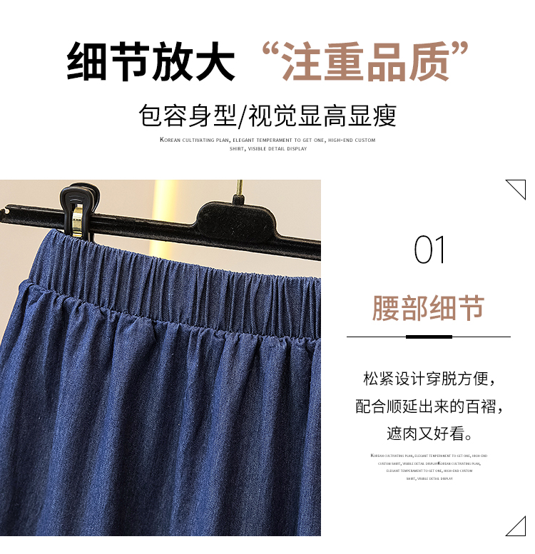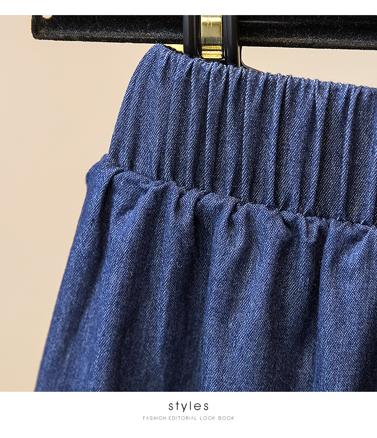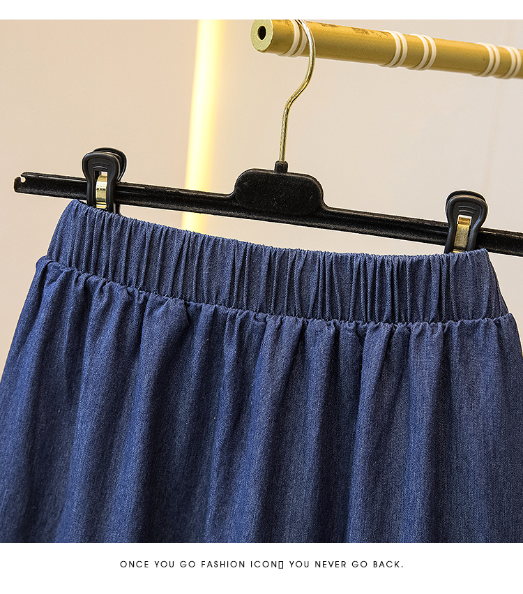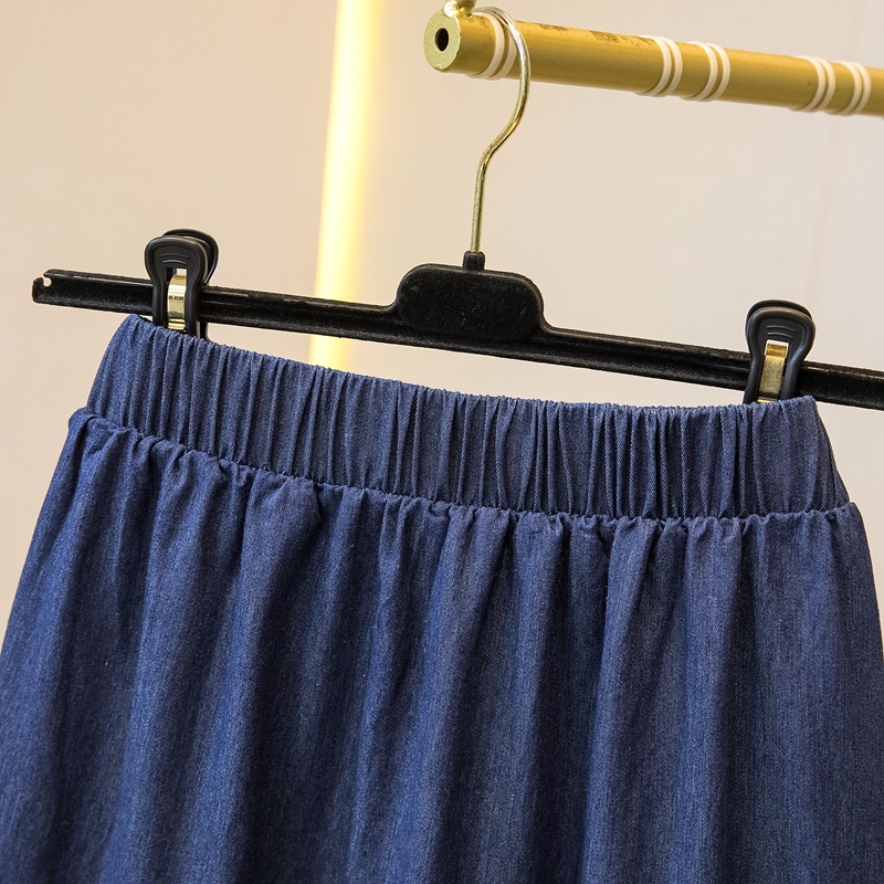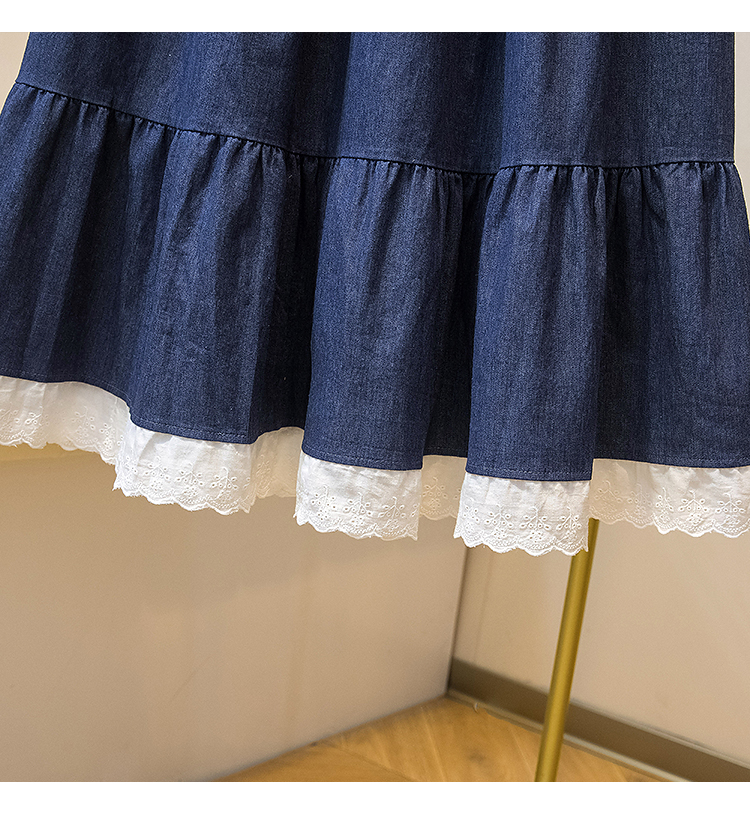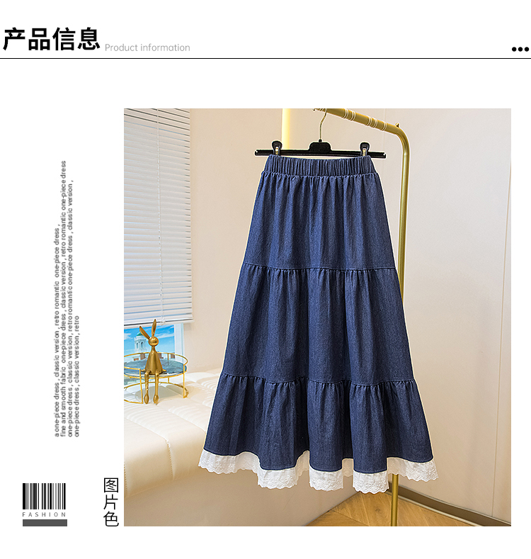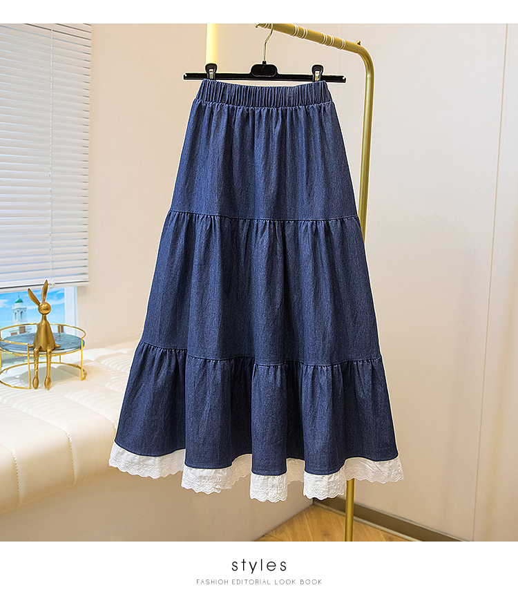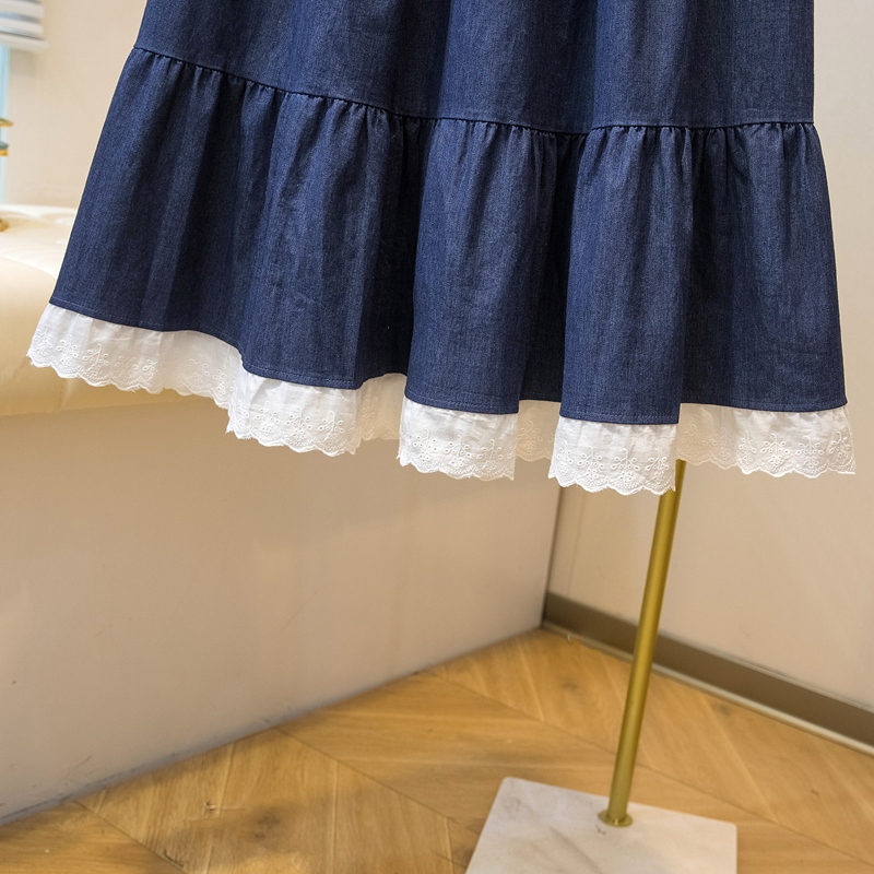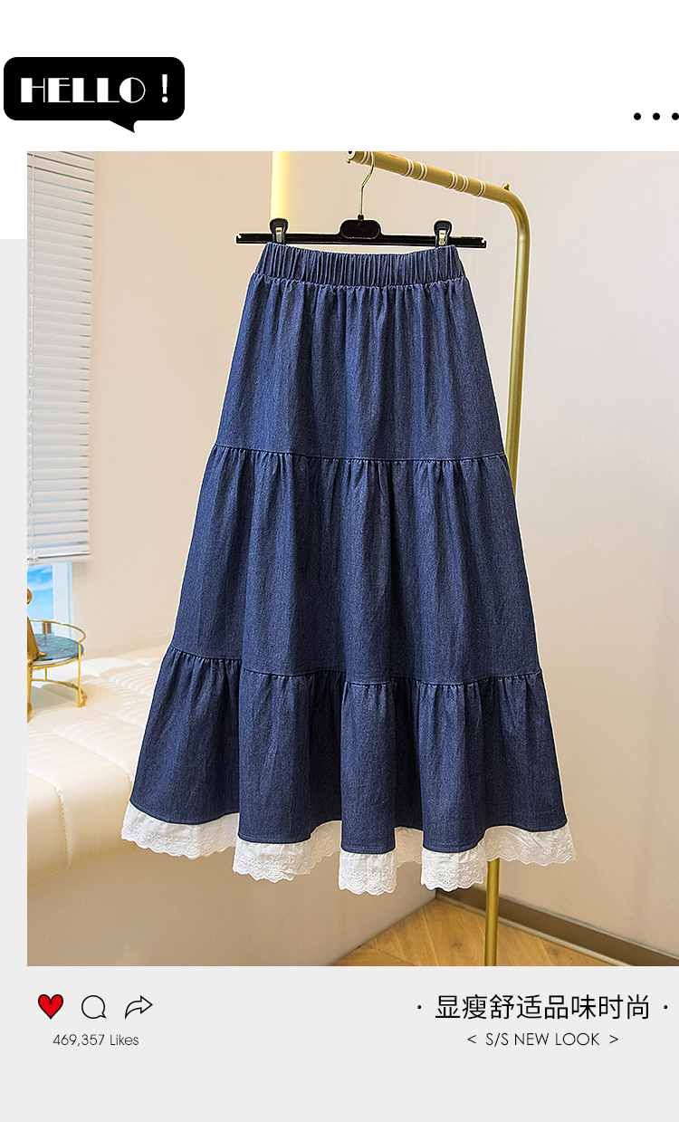 MY16906# 蕾丝拼接牛仔半身裙新款宽松百搭膝盖裙韩版中长款伞裙女裝貨源服裝批發