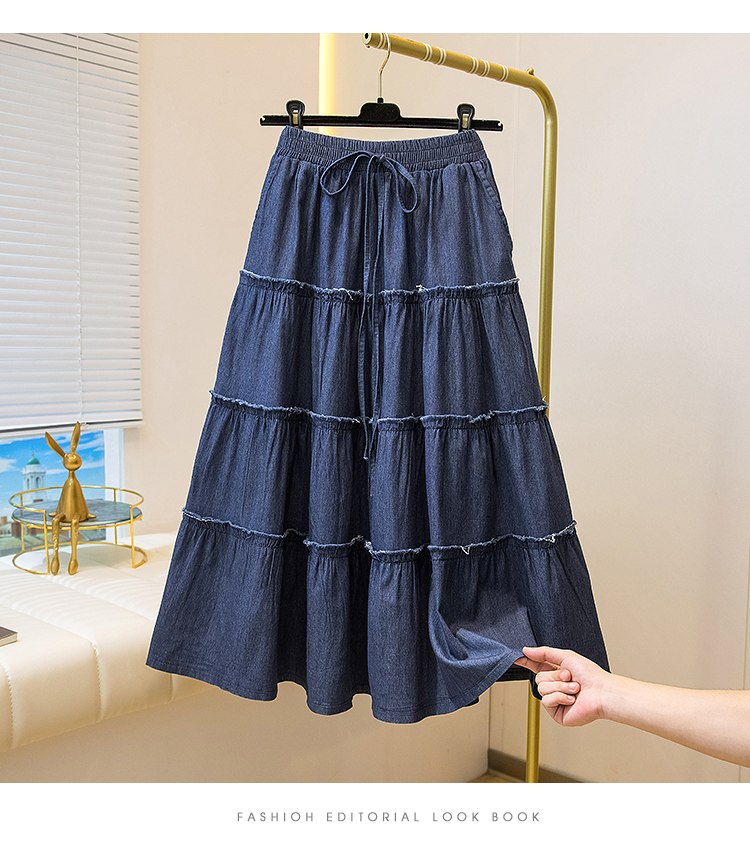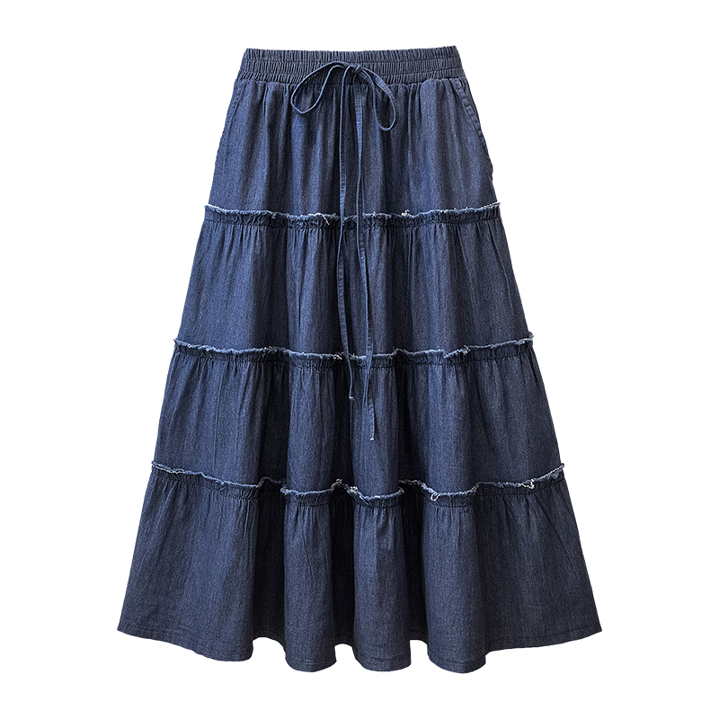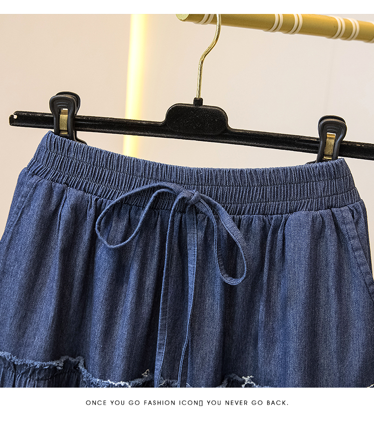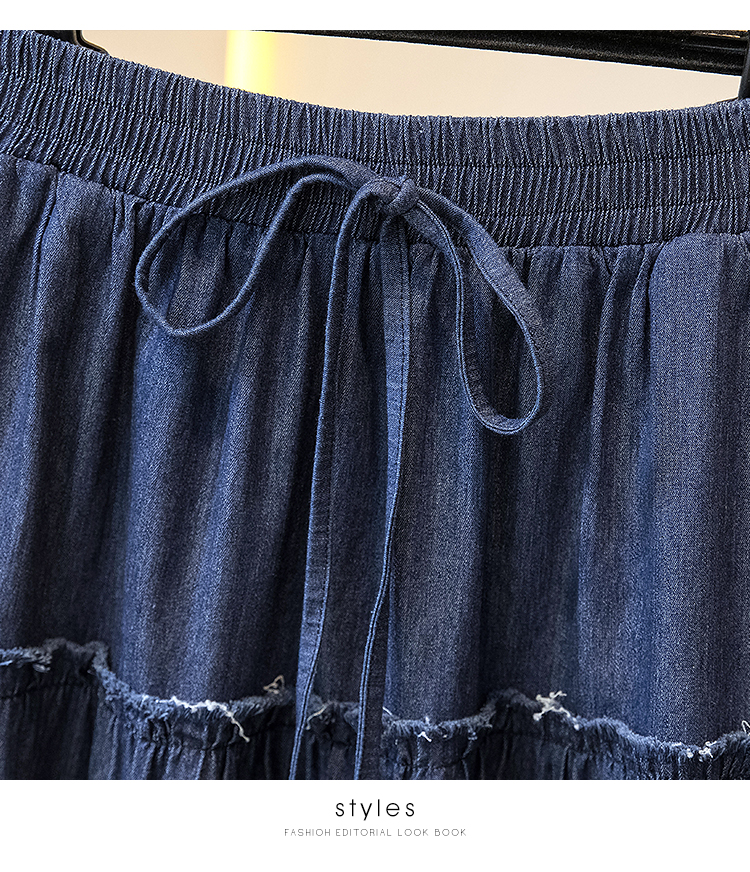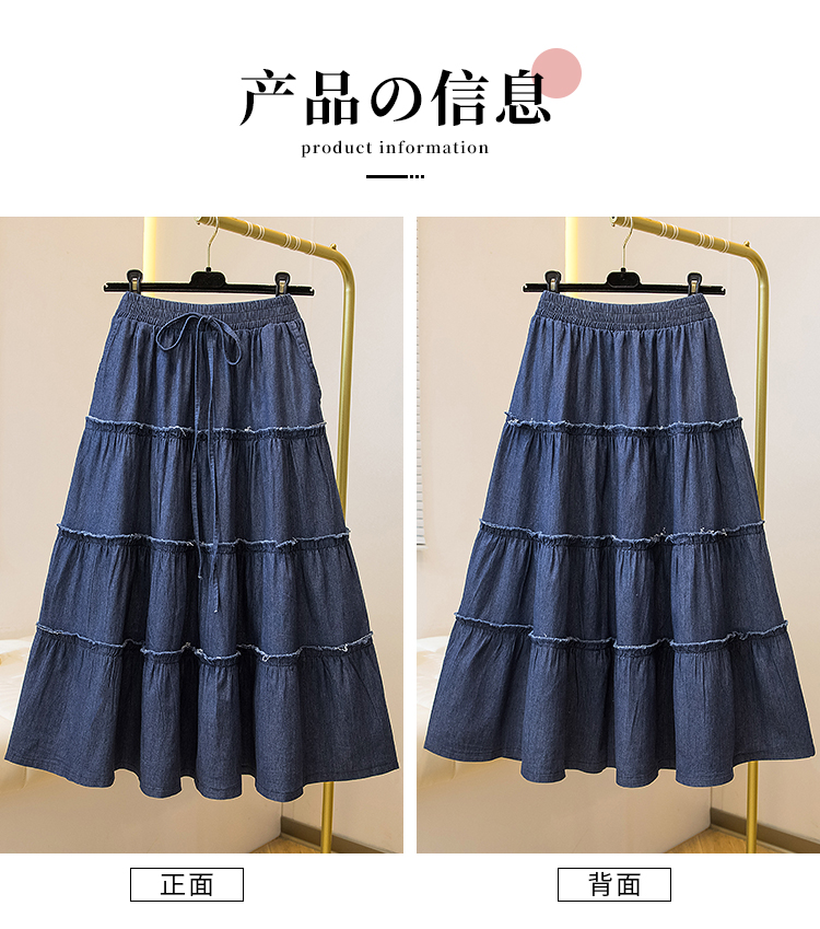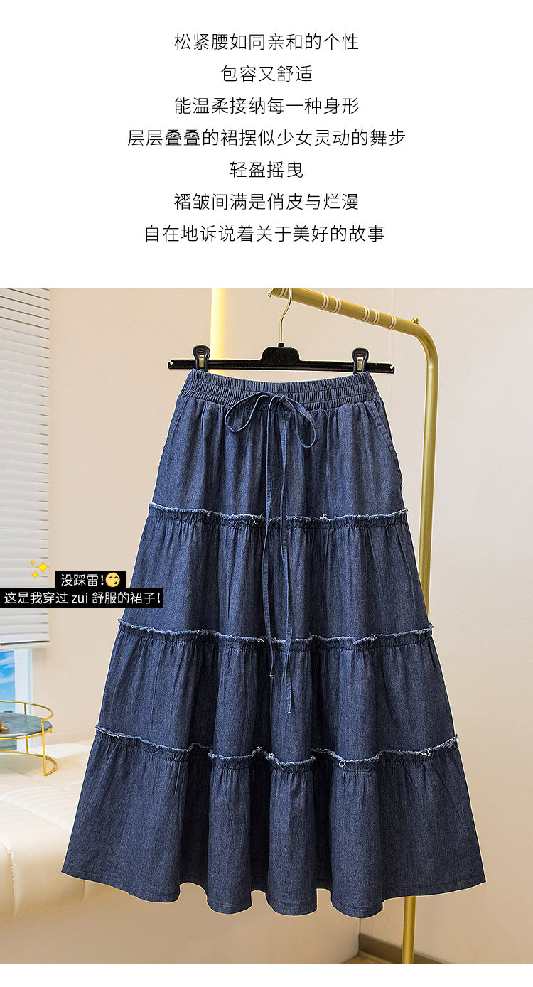 MY16907# 松紧腰宽松牛仔半身裙女抽绳胖mm显瘦A字裙中长款大码女装女裝貨源服裝批發