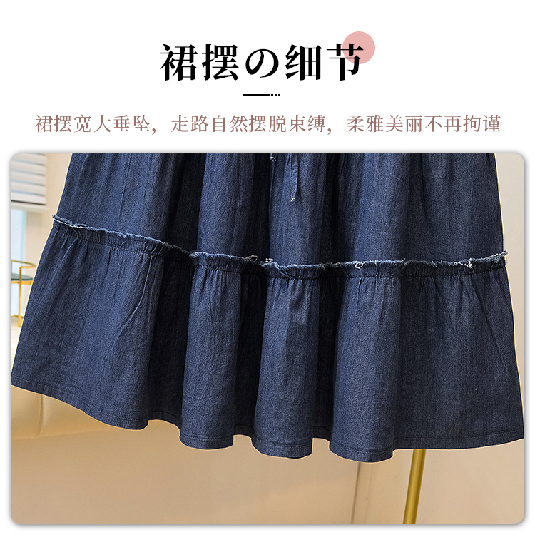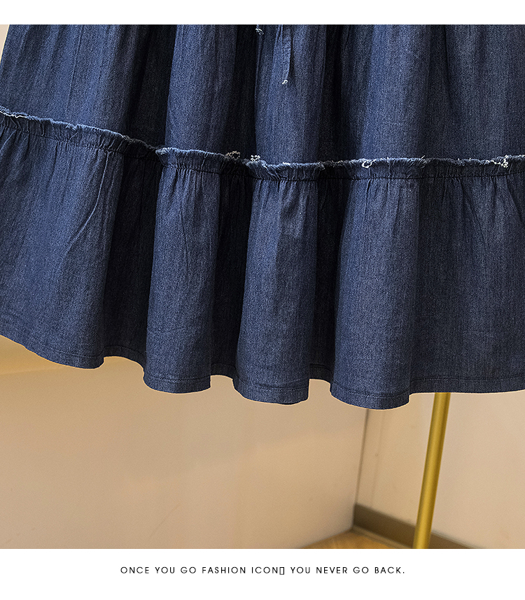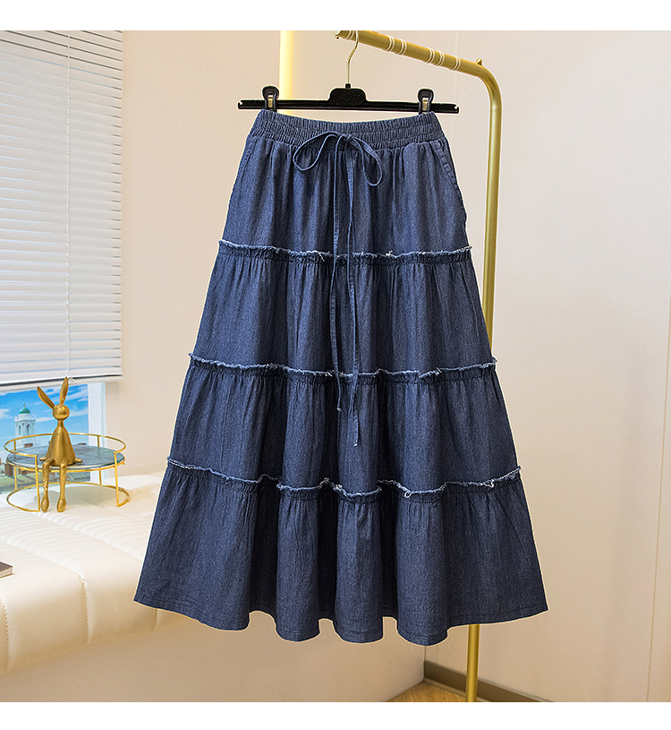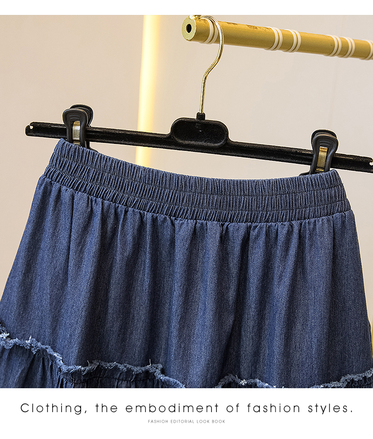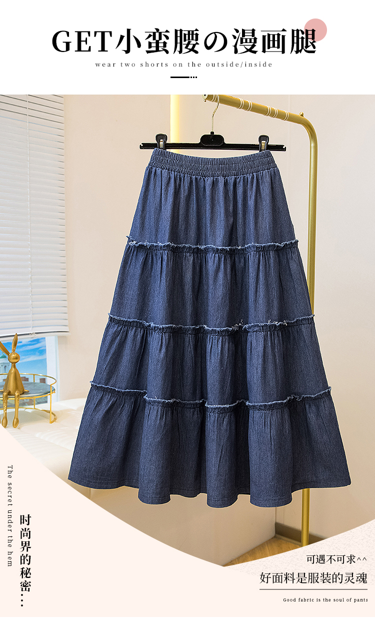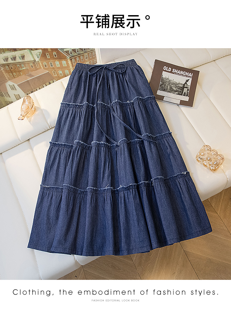 MY16907# 松紧腰宽松牛仔半身裙女抽绳胖mm显瘦A字裙中长款大码女装女裝貨源服裝批發