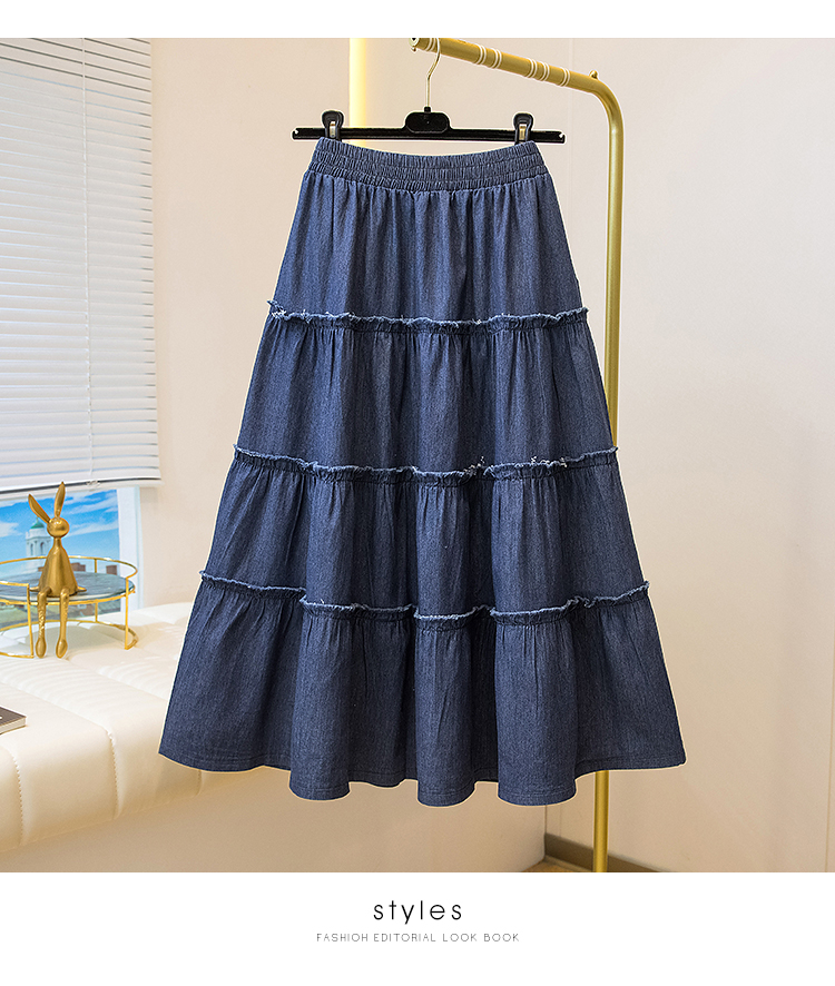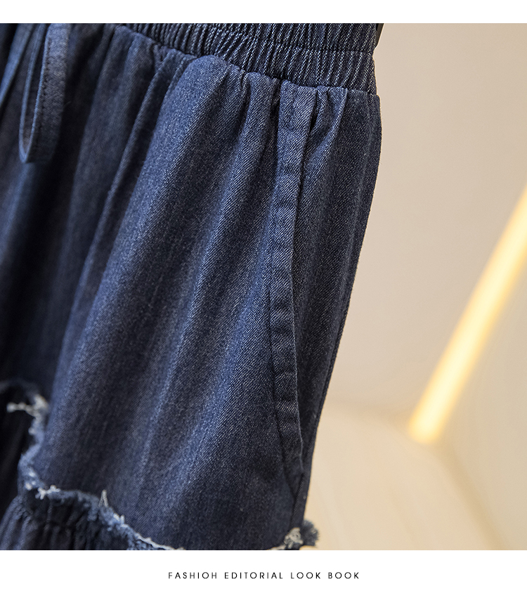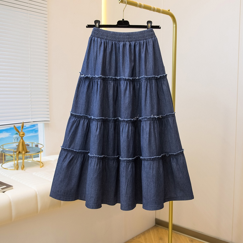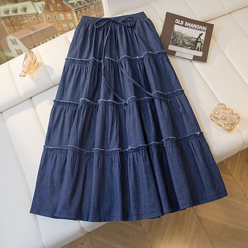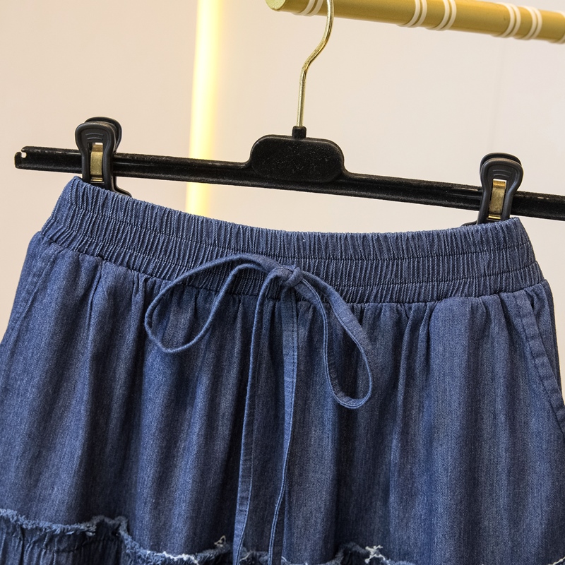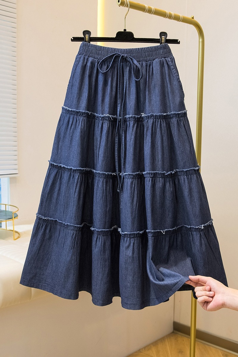 MY16907# 松紧腰宽松牛仔半身裙女抽绳胖mm显瘦A字裙中长款大码女装女裝貨源服裝批發