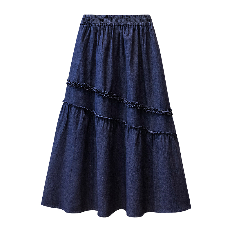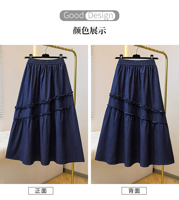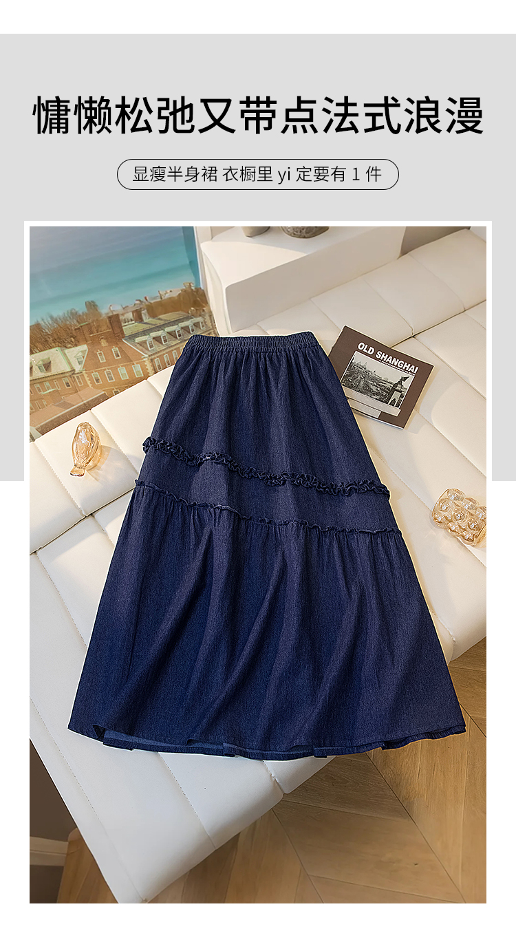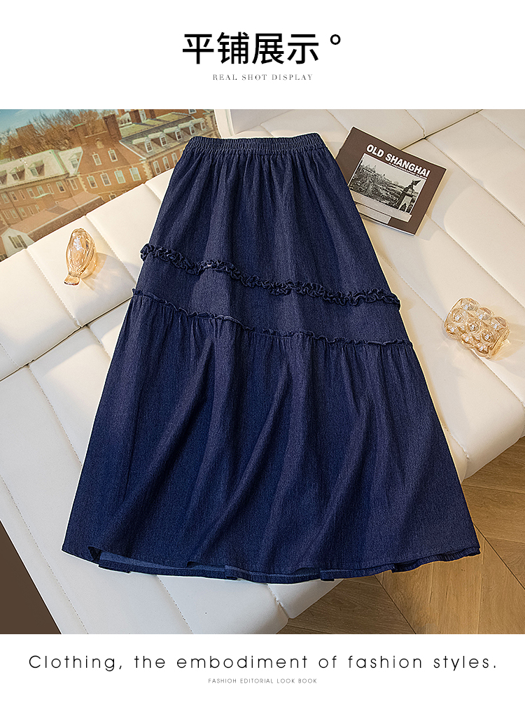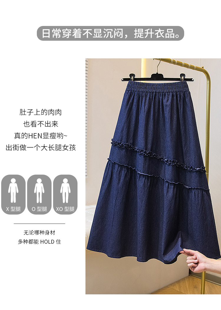 MY16910# 胖mm特大码200斤松紧腰牛仔女半身裙新款中长款高腰蛋糕A字裙女裝貨源服裝批發