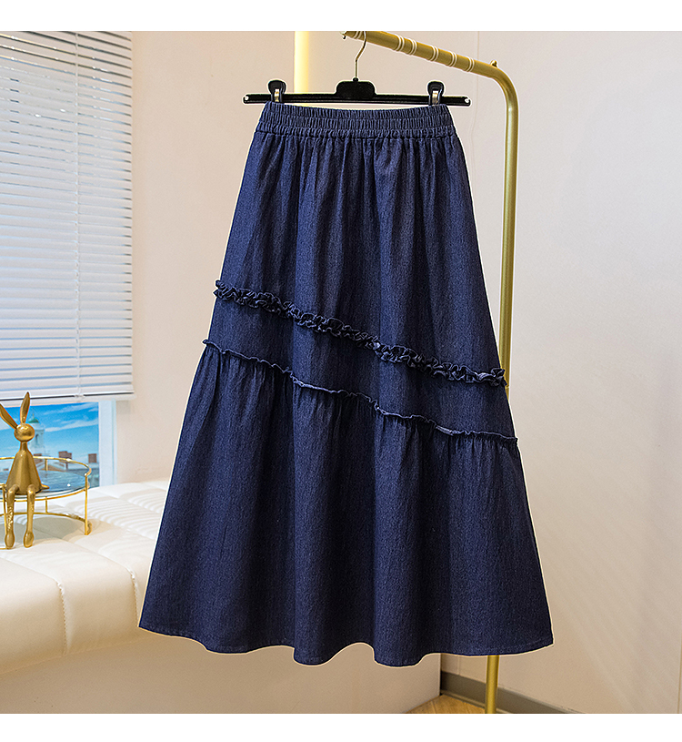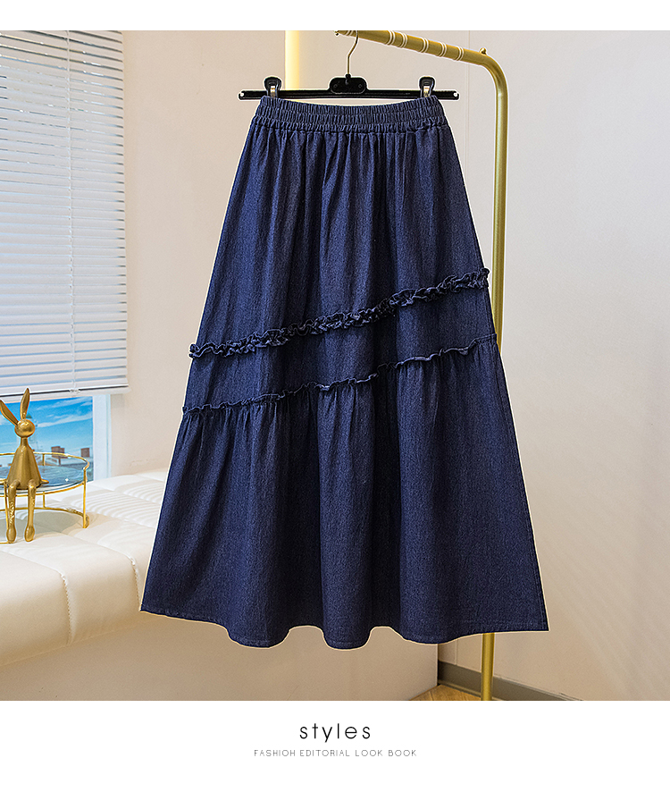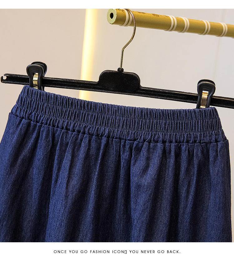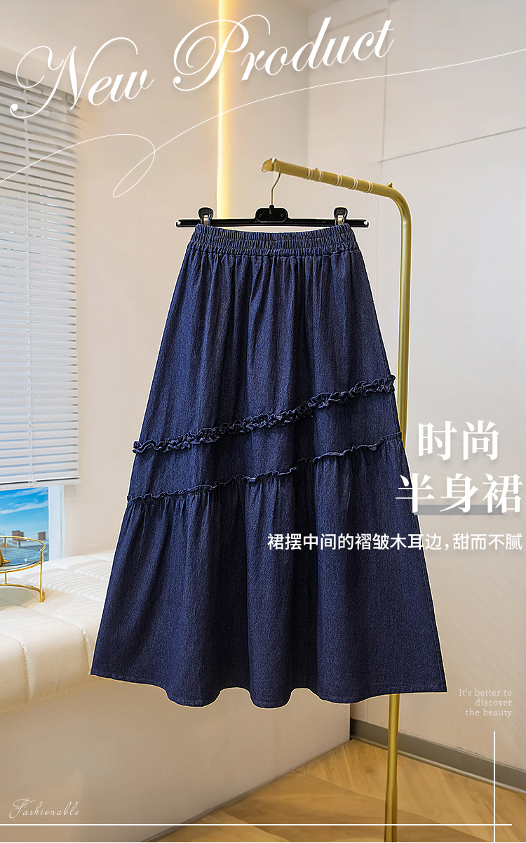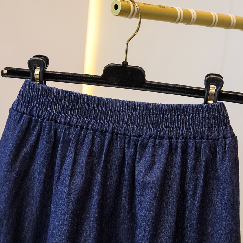 MY16910# 胖mm特大码200斤松紧腰牛仔女半身裙新款中长款高腰蛋糕A字裙女裝貨源服裝批發