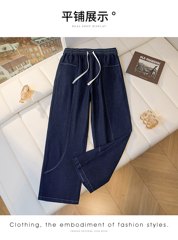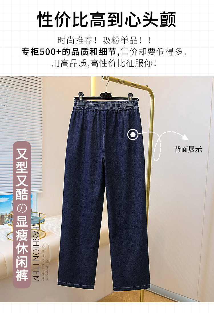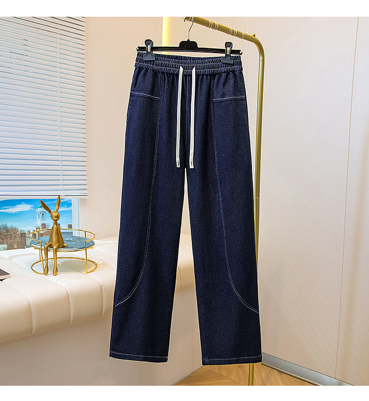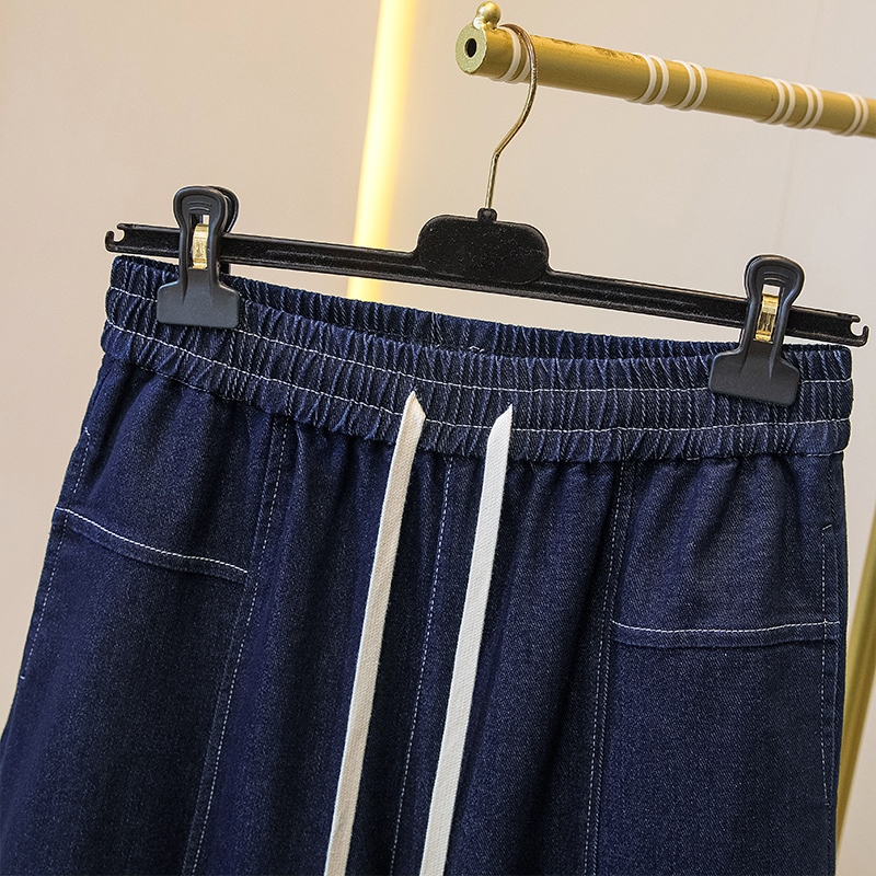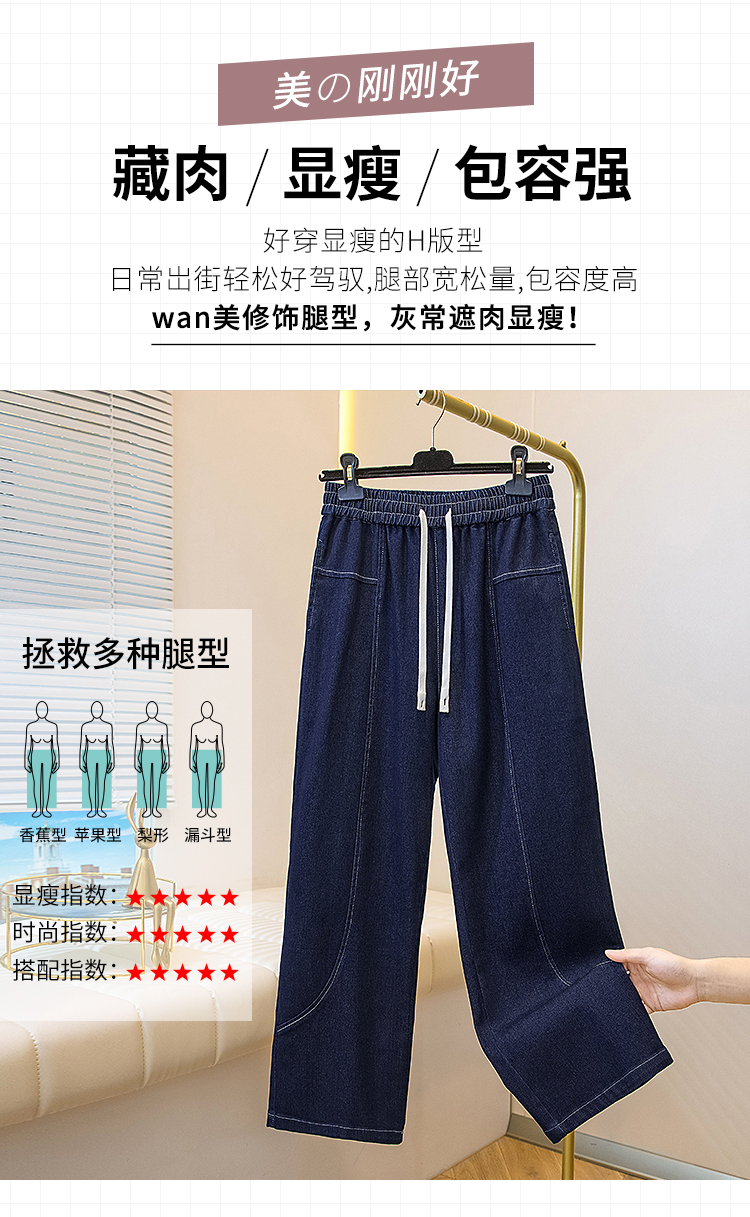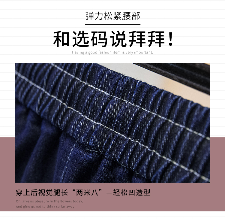 MY16913# 胖mm特大码200斤新款复古抽绳哈伦牛仔裤女宽松百搭直筒长裤女裝貨源服裝批發