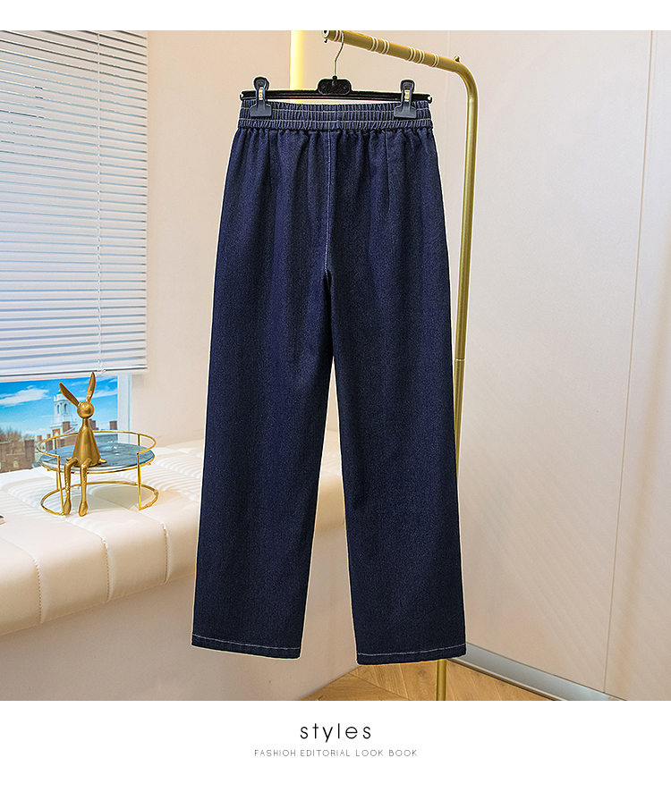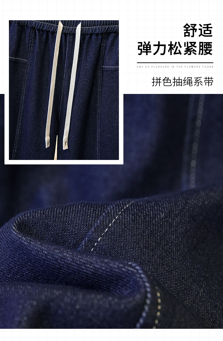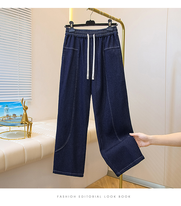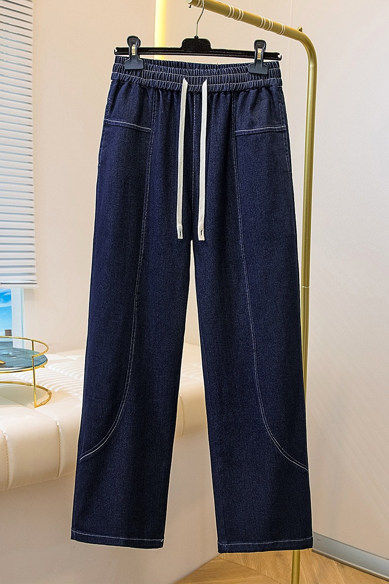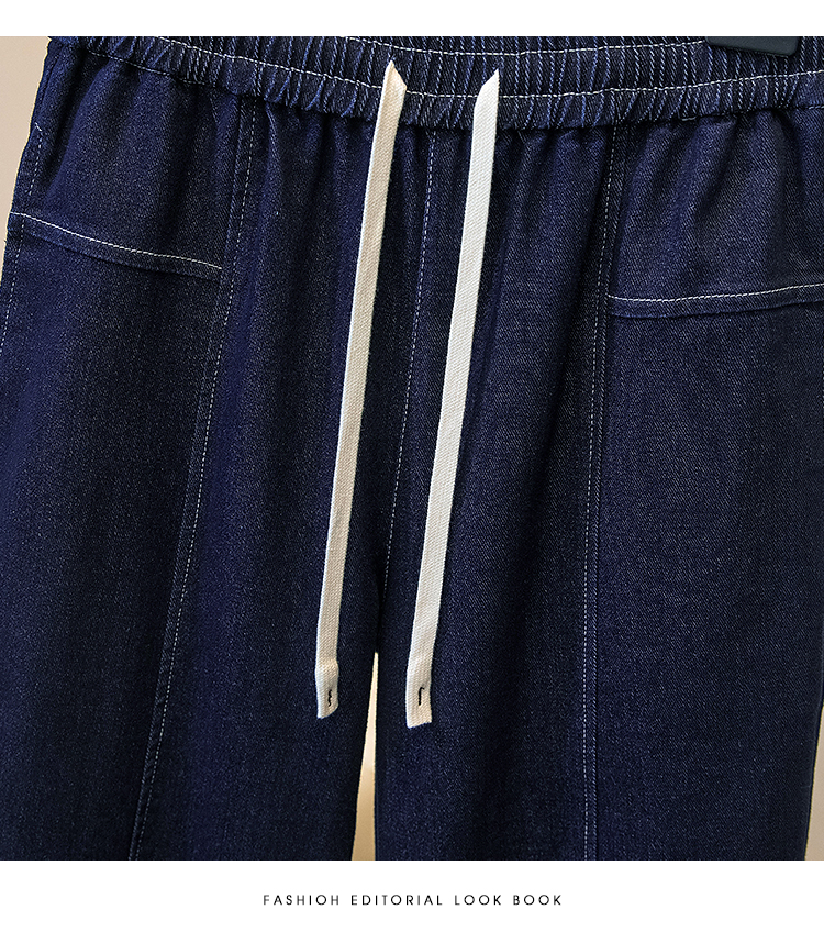 MY16913# 胖mm特大码200斤新款复古抽绳哈伦牛仔裤女宽松百搭直筒长裤女裝貨源服裝批發