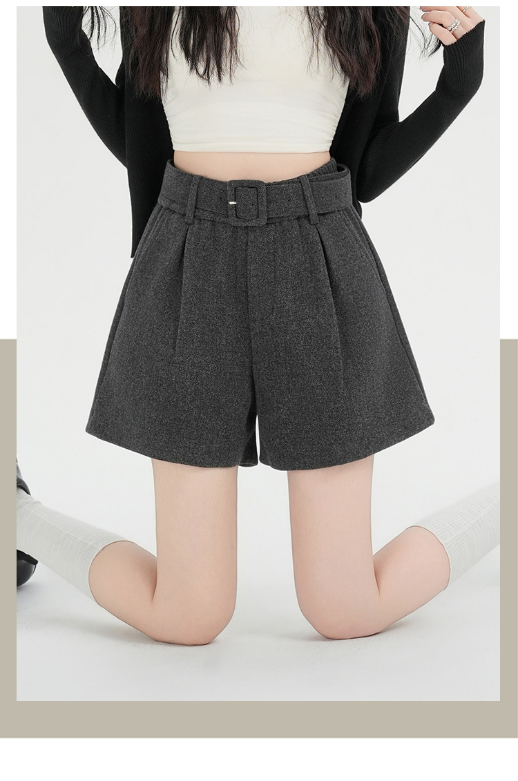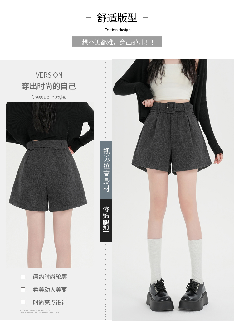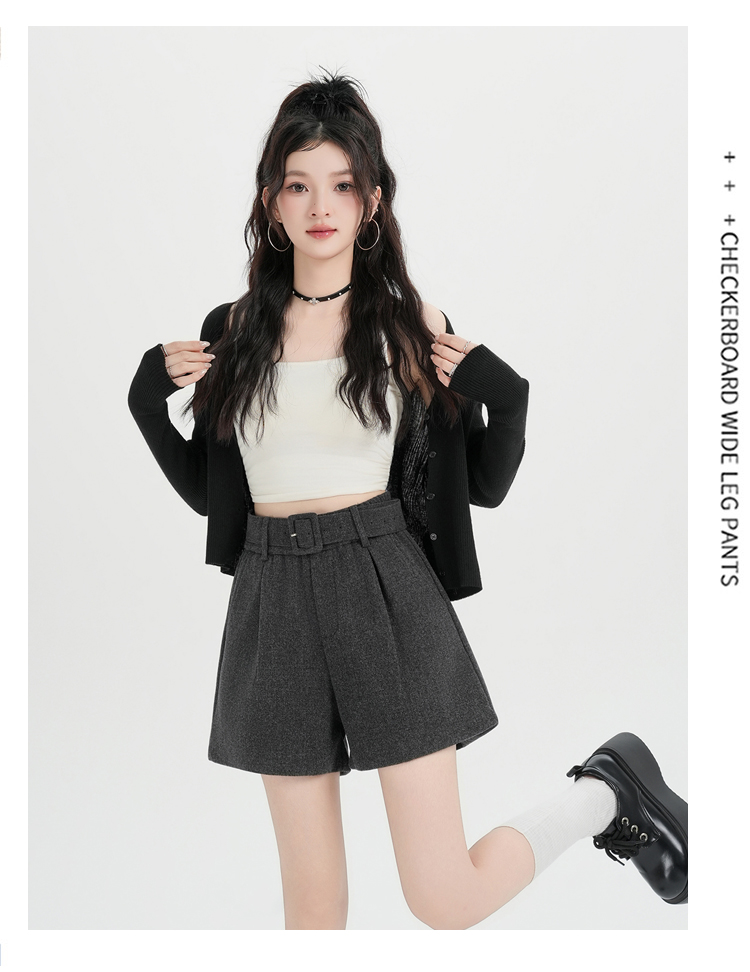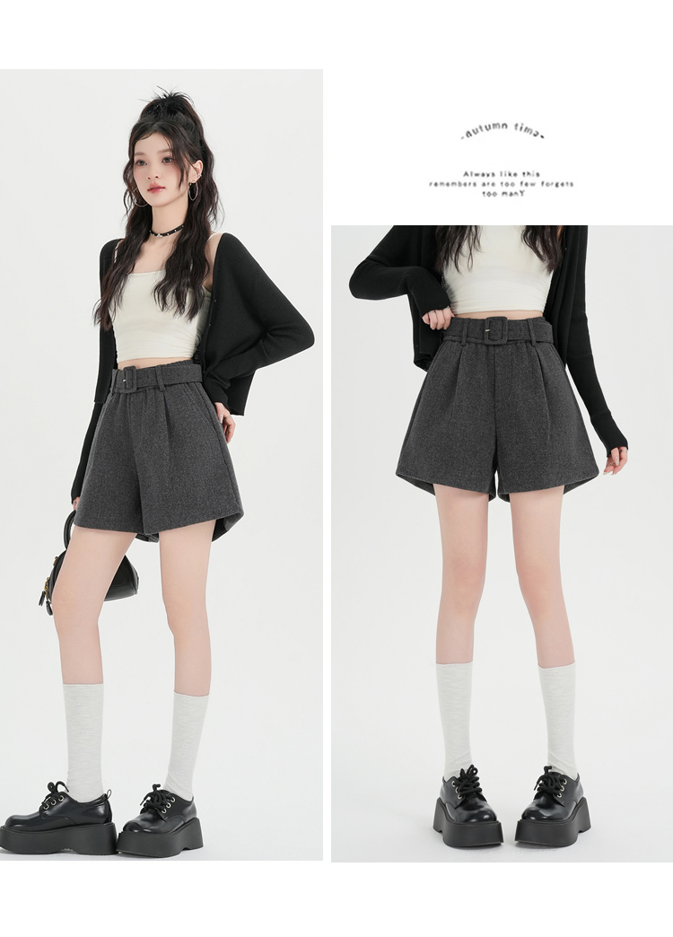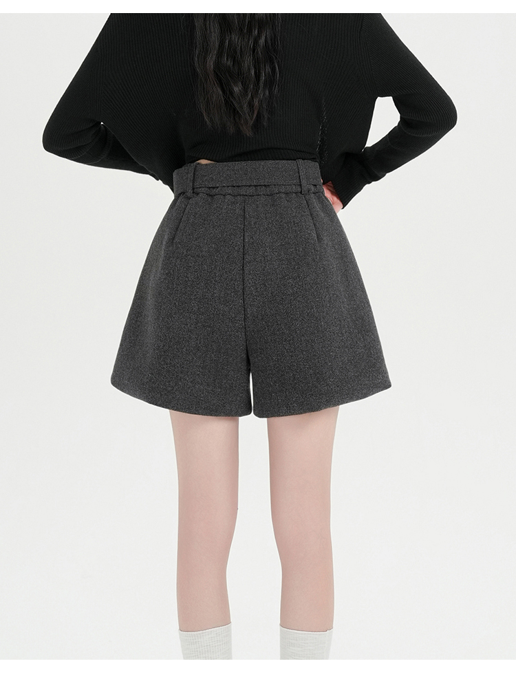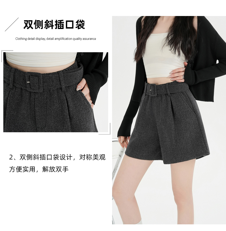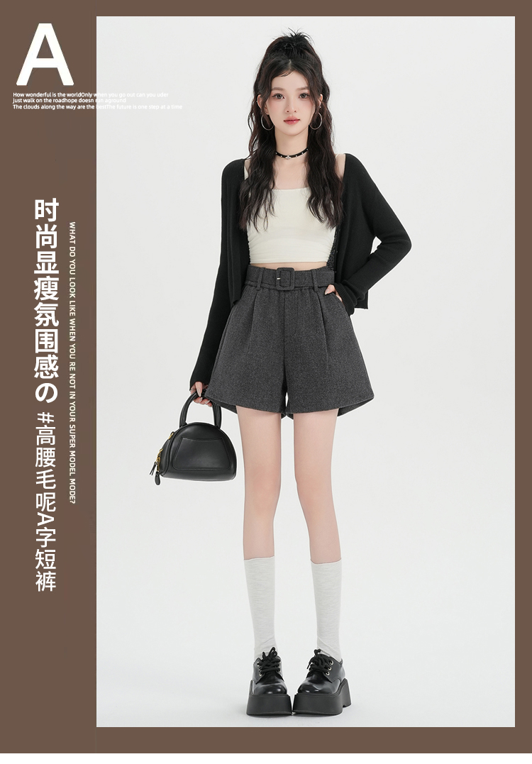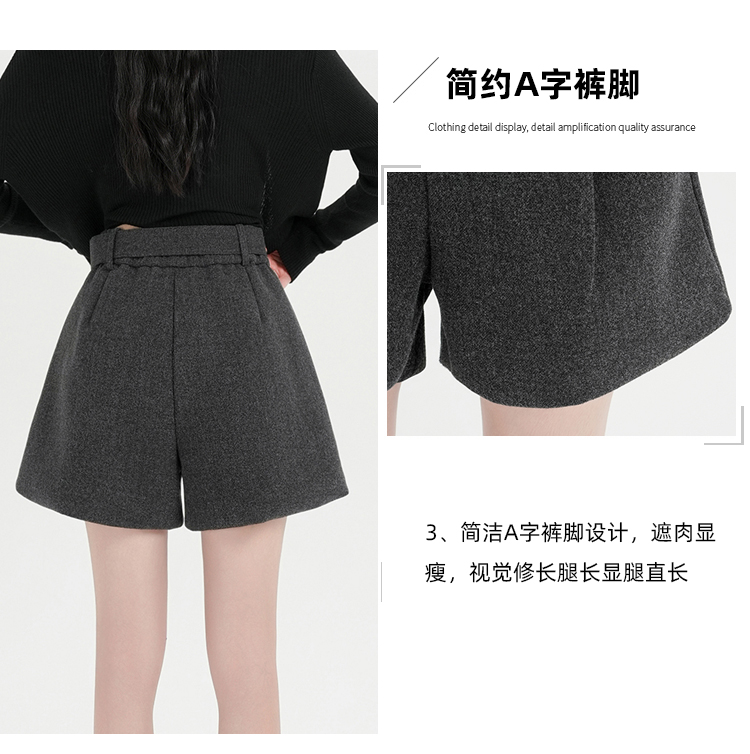 MY16922# 毛呢阔腿短裤女高级感灰色高腰显瘦a字外穿靴裤女裝貨源服裝批發