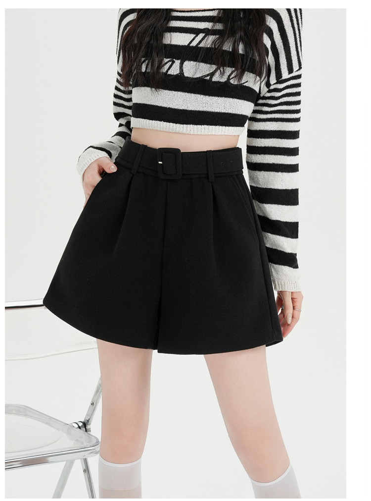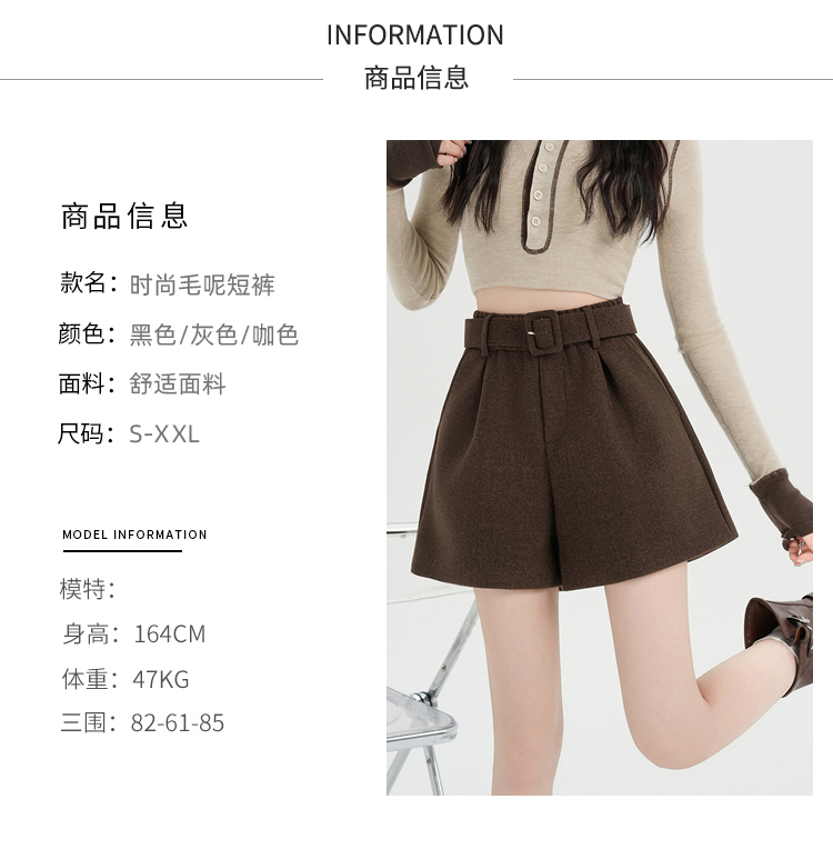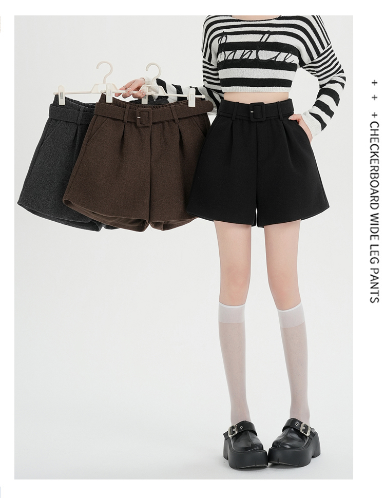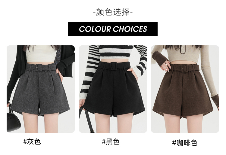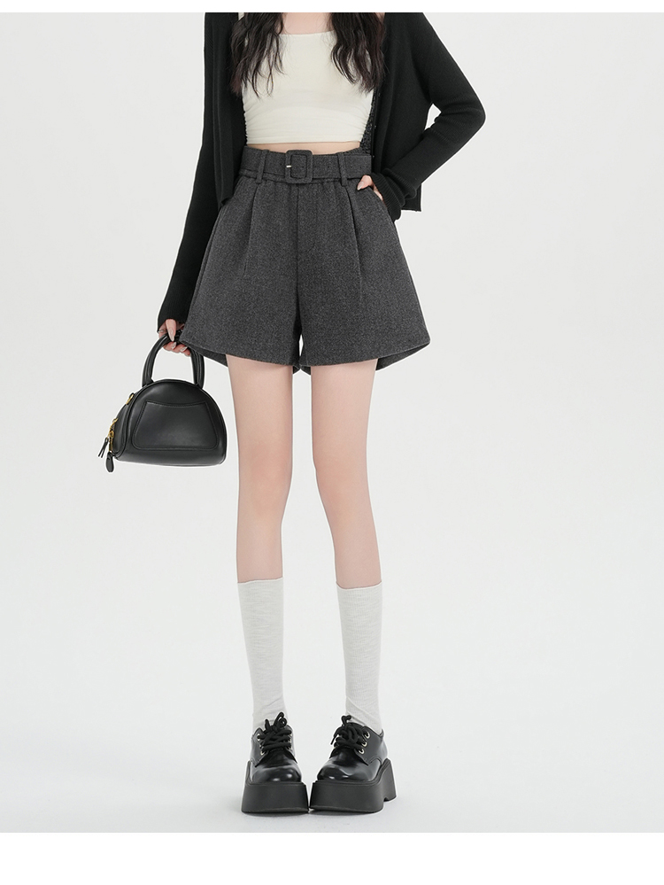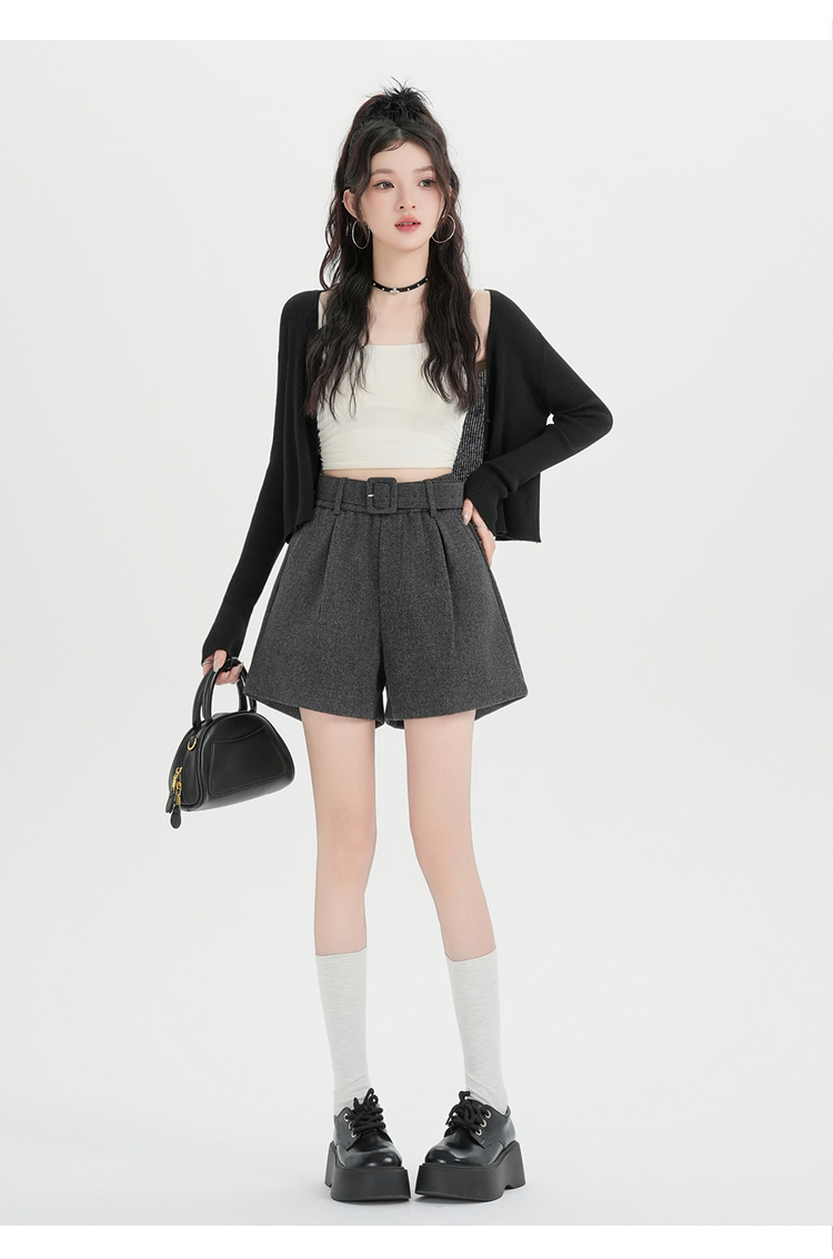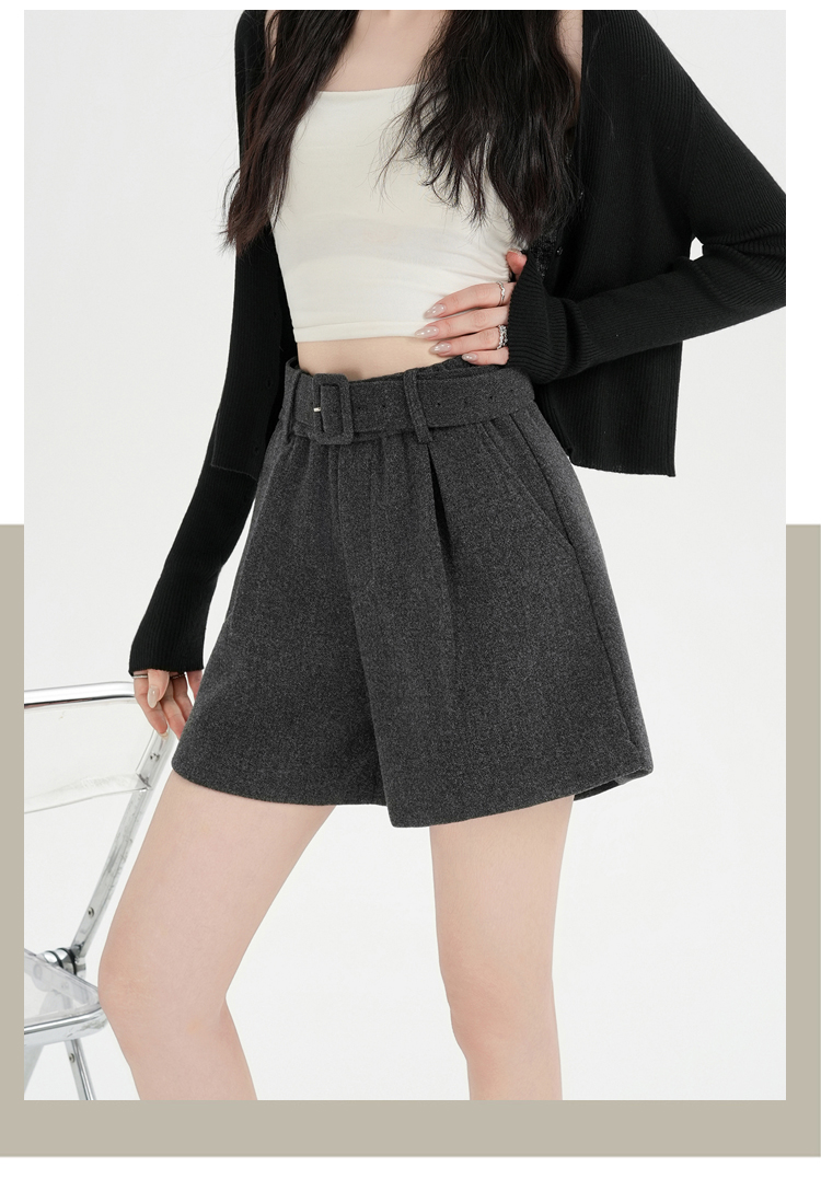 MY16922# 毛呢阔腿短裤女高级感灰色高腰显瘦a字外穿靴裤女裝貨源服裝批發