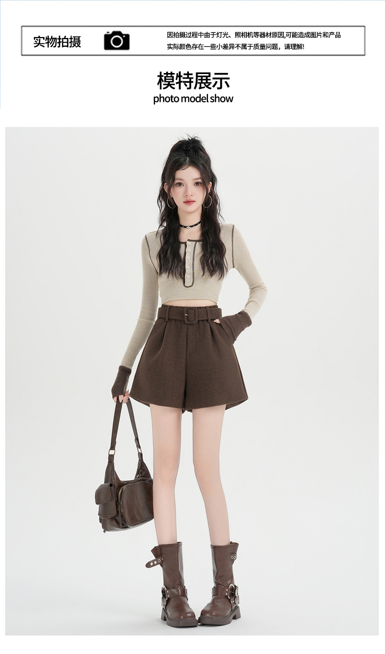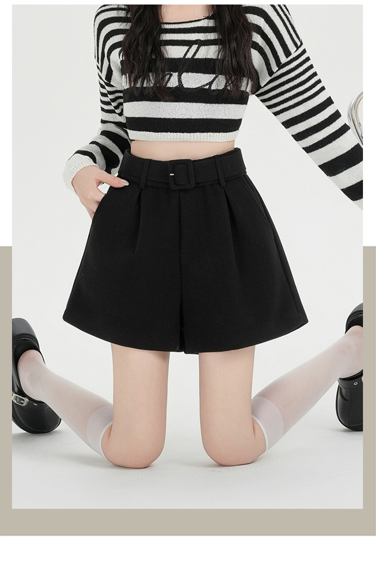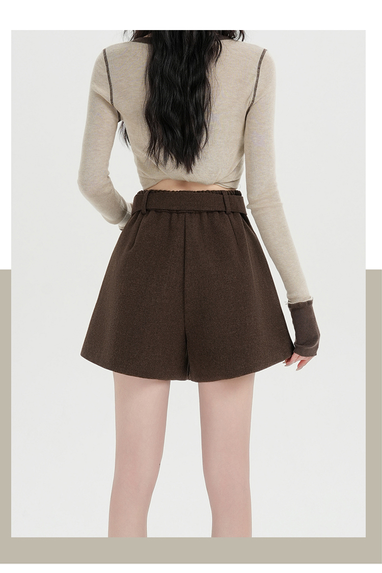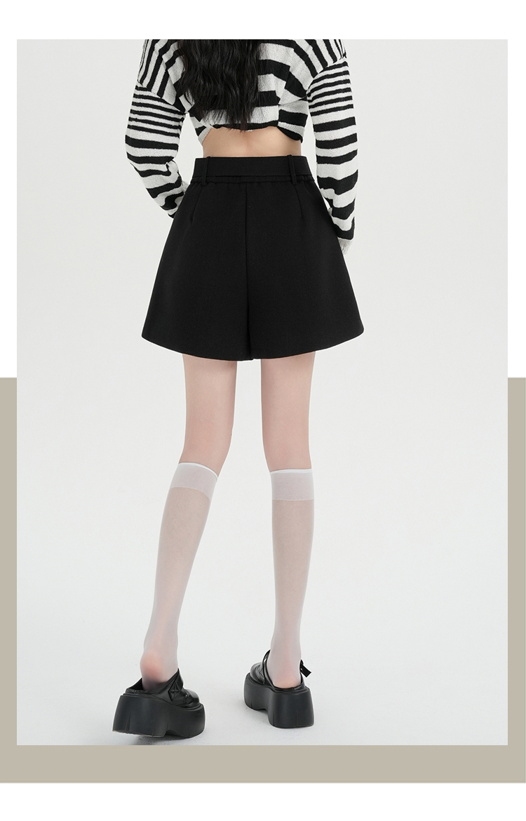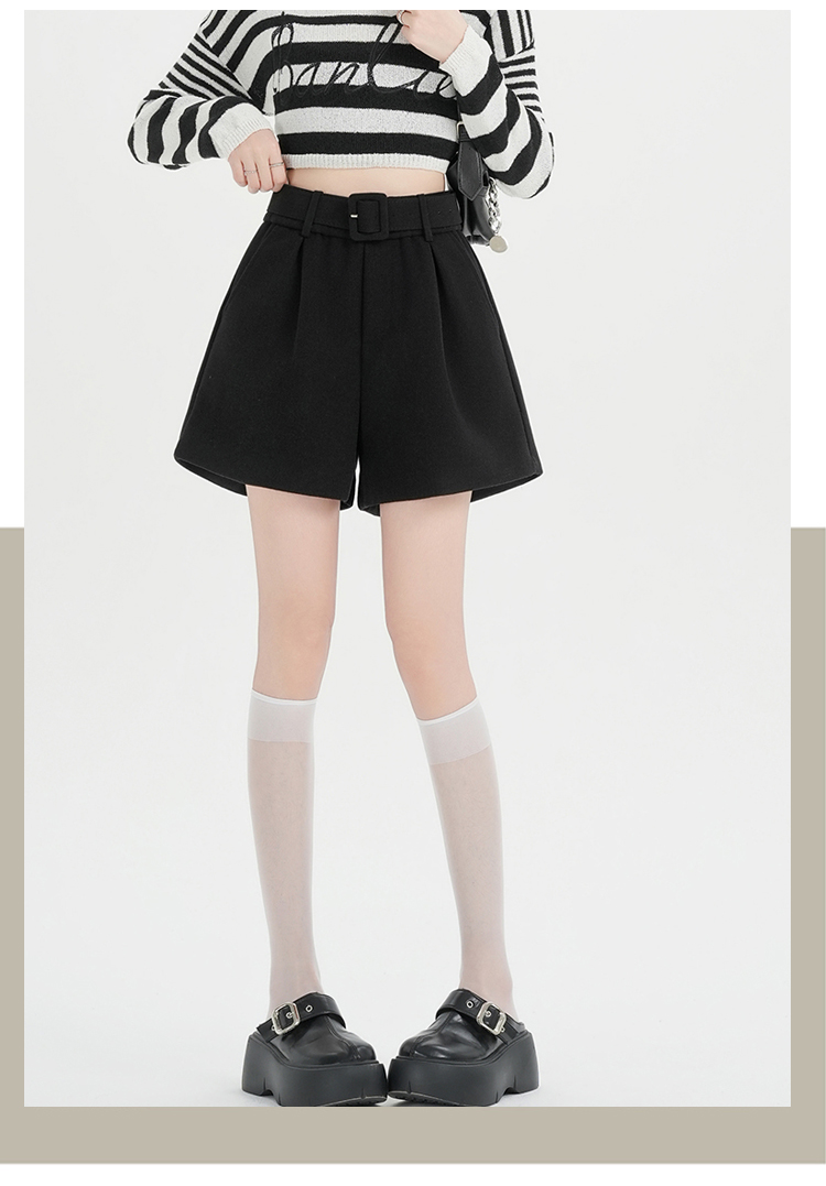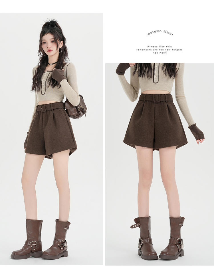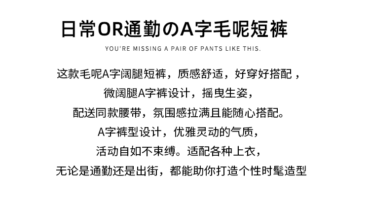 MY16922# 毛呢阔腿短裤女高级感灰色高腰显瘦a字外穿靴裤女裝貨源服裝批發