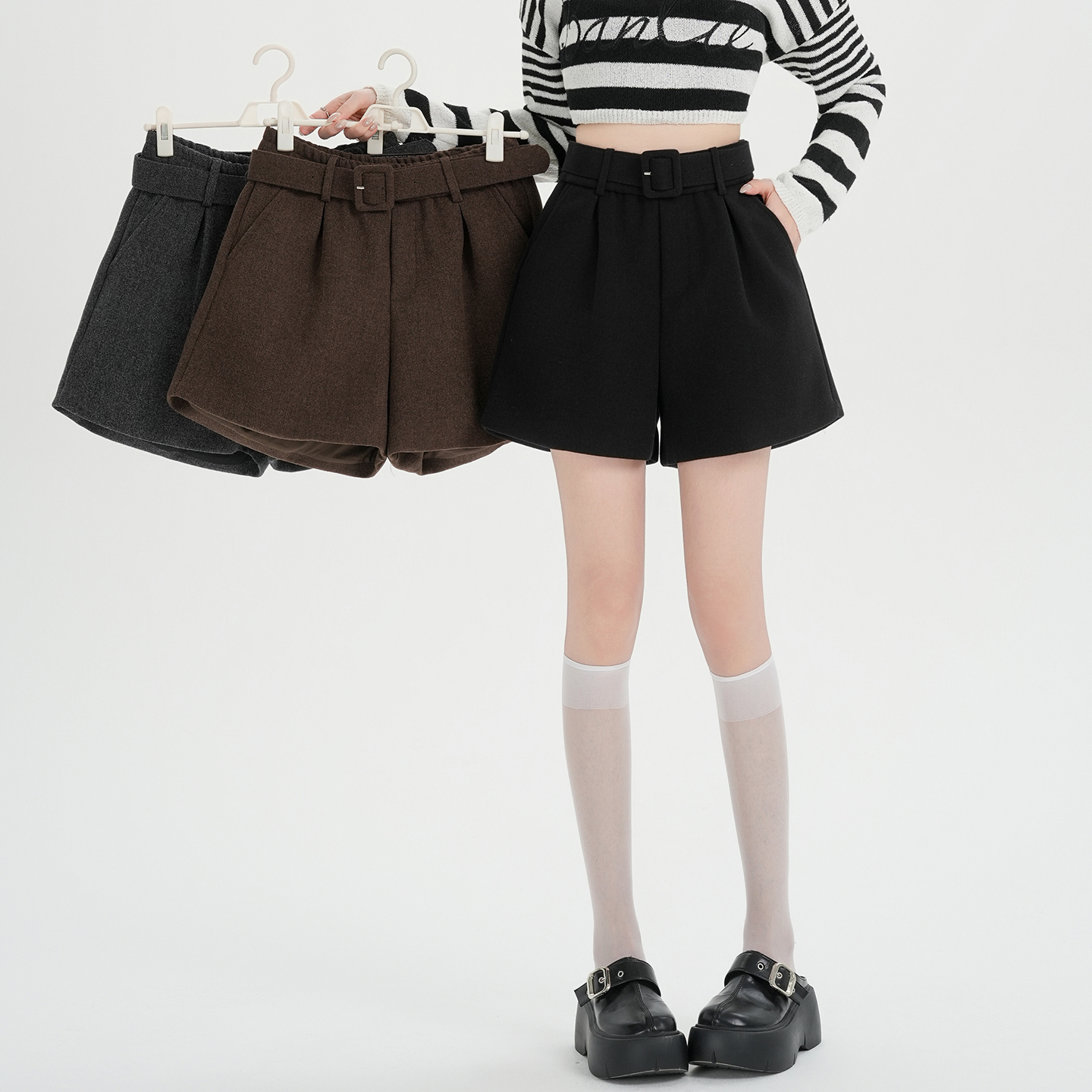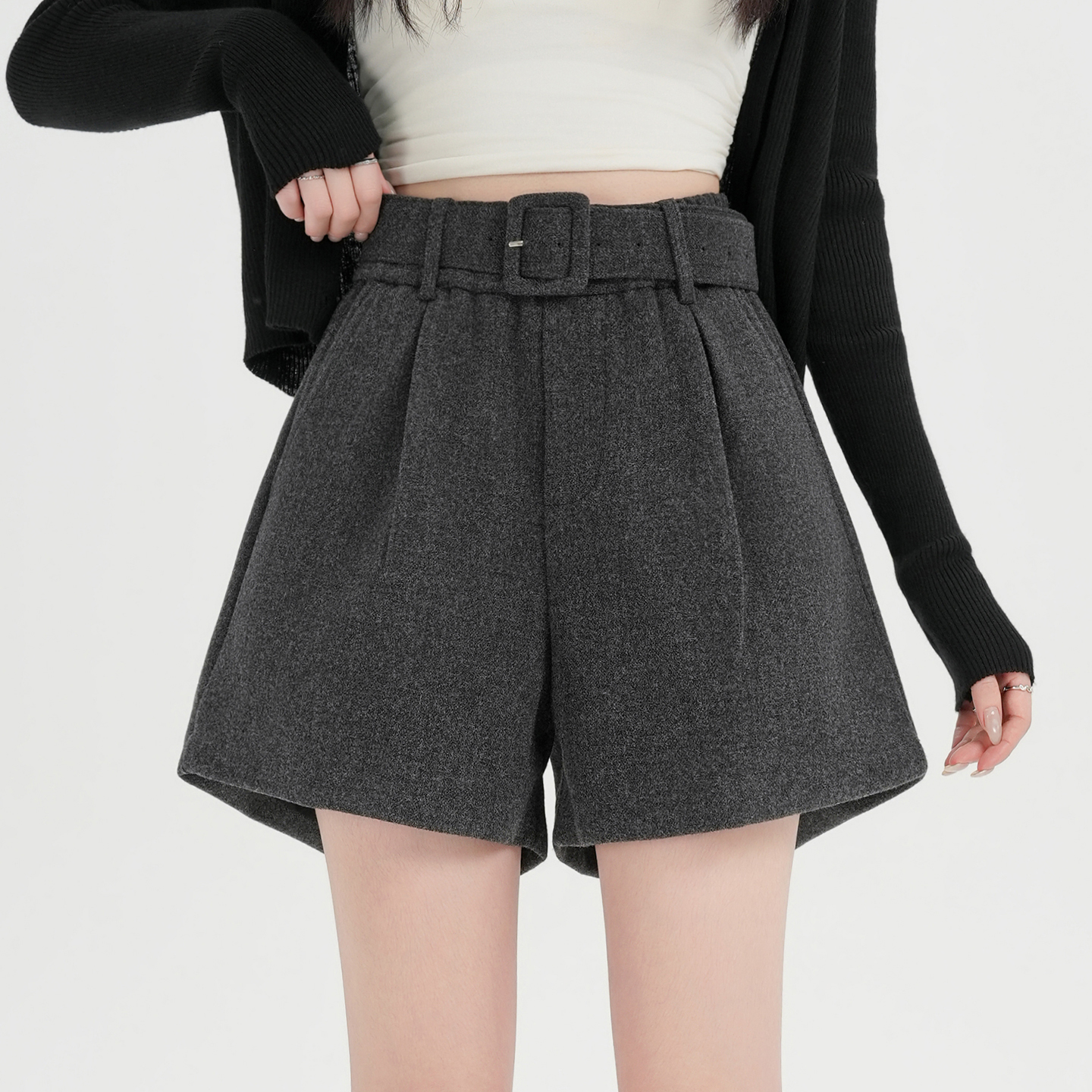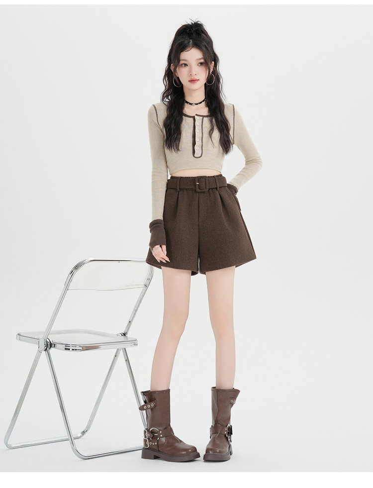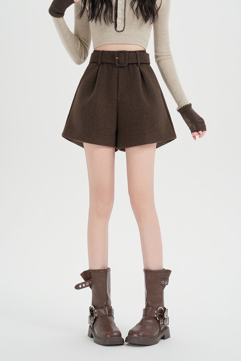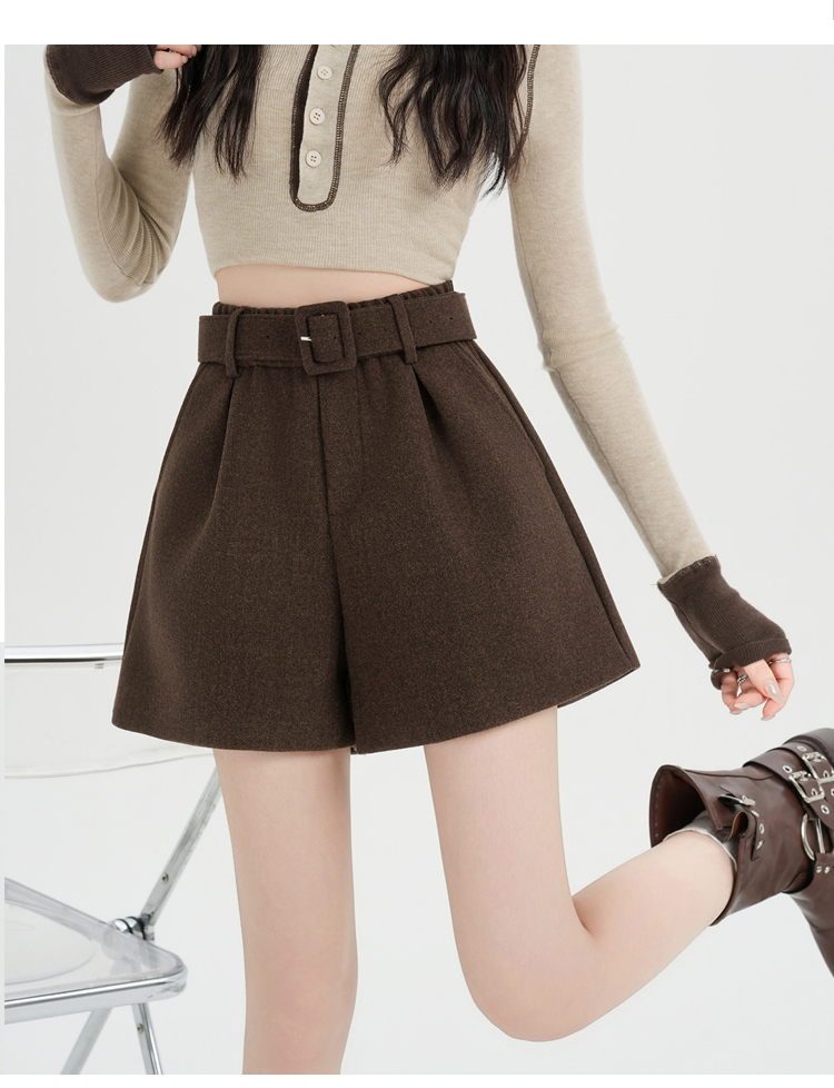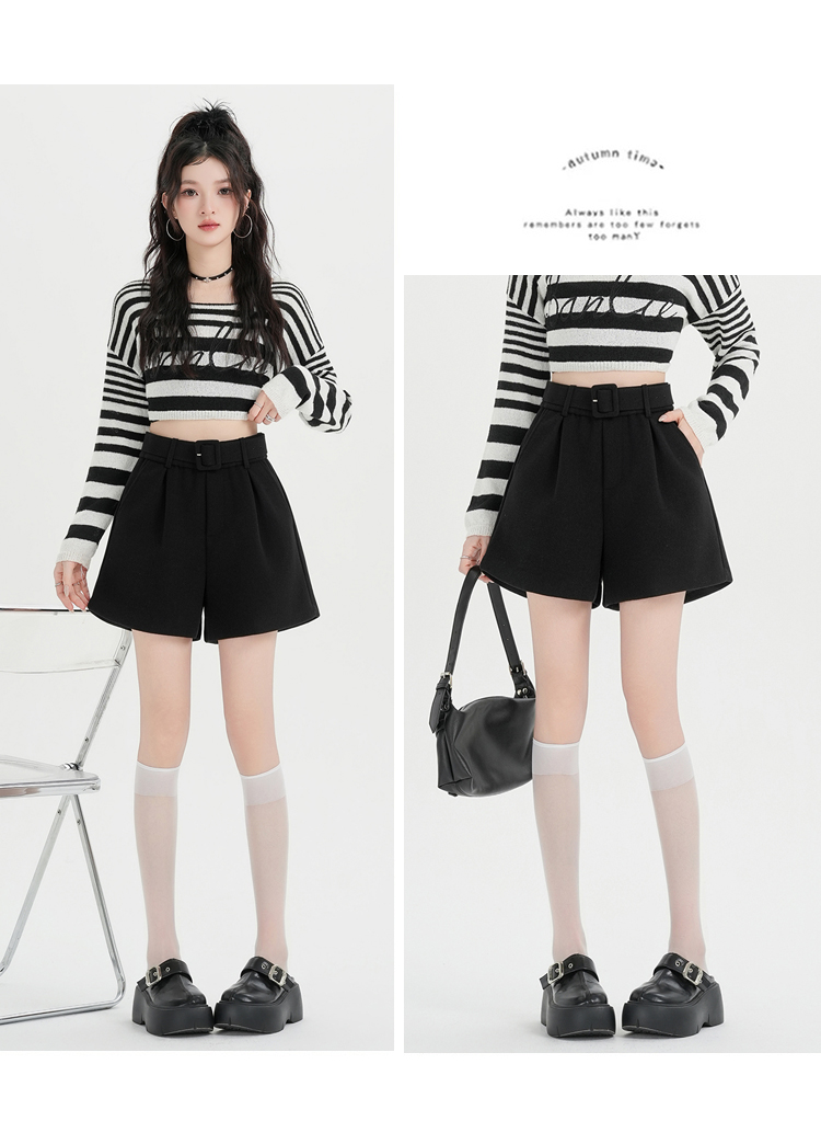 MY16922# 毛呢阔腿短裤女高级感灰色高腰显瘦a字外穿靴裤女裝貨源服裝批發