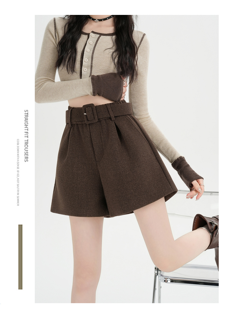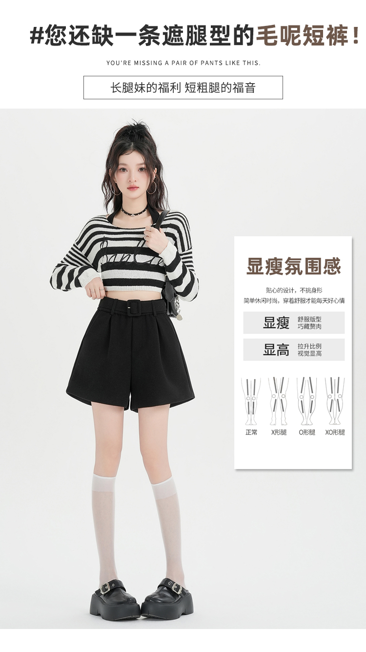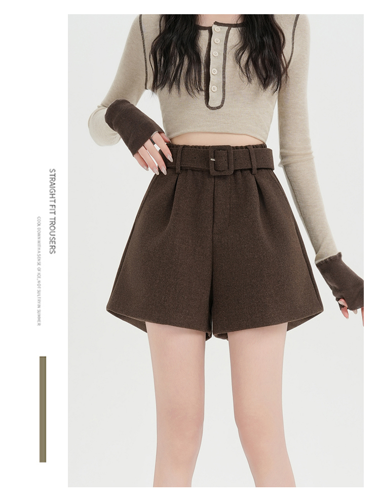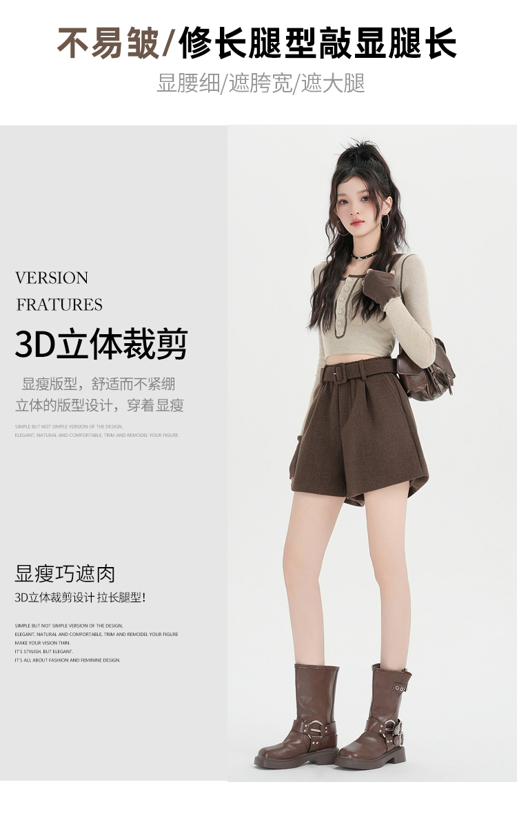 MY17148# 高级毛呢短裤新款韩版高腰百搭直筒靴裤外穿休闲裤女裝貨源服...