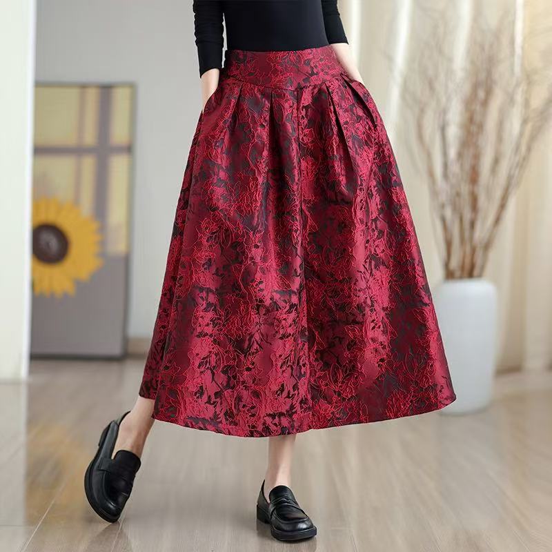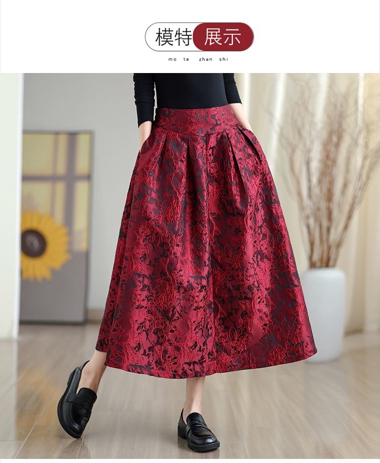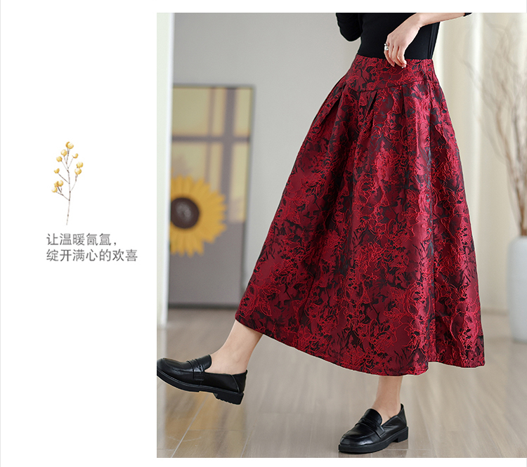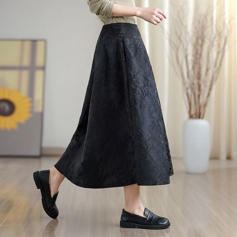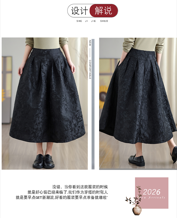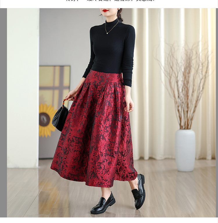 MY16939# 复古提花高腰显瘦半身裙新款时尚百搭A字裙中长裙女裝貨源服裝批發