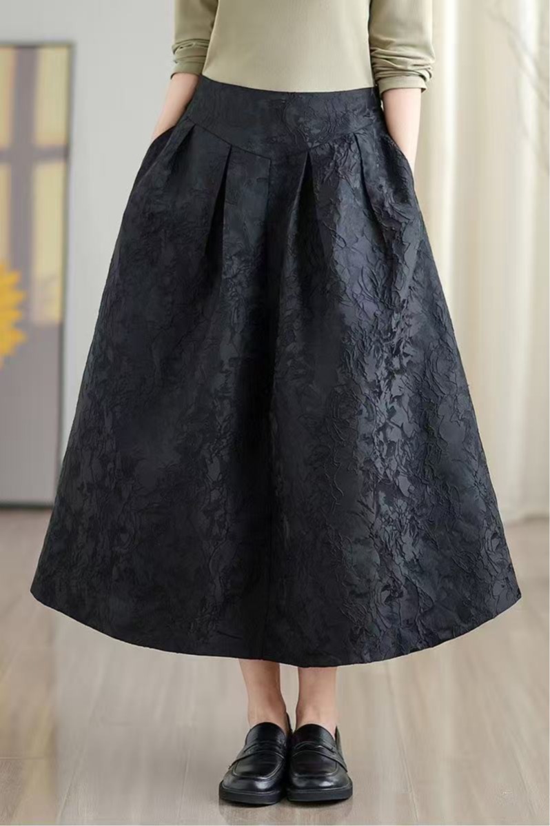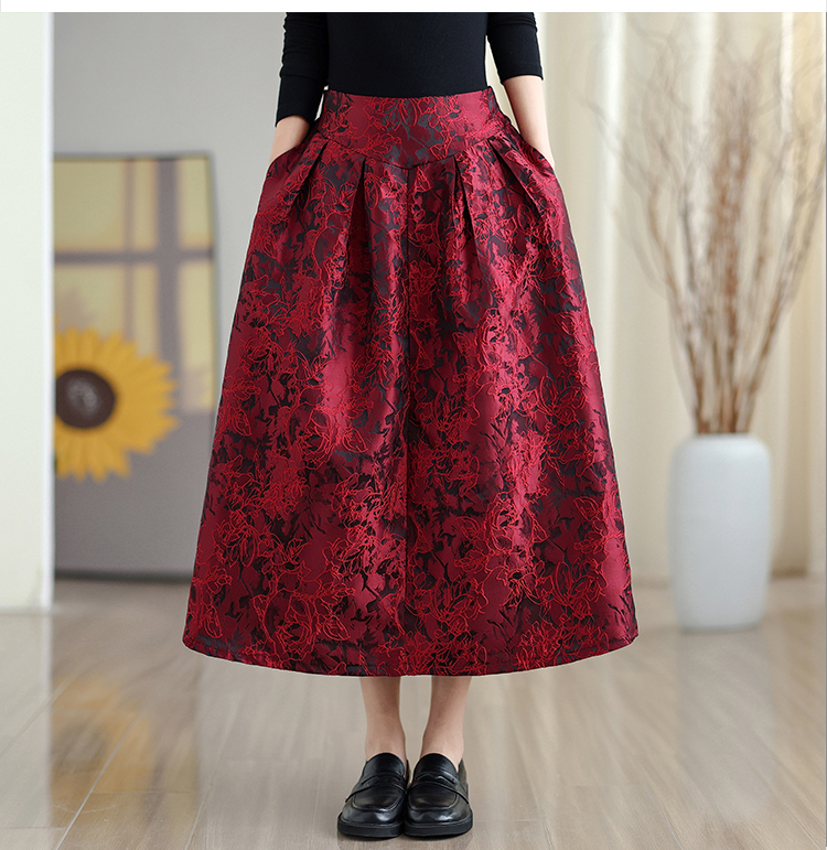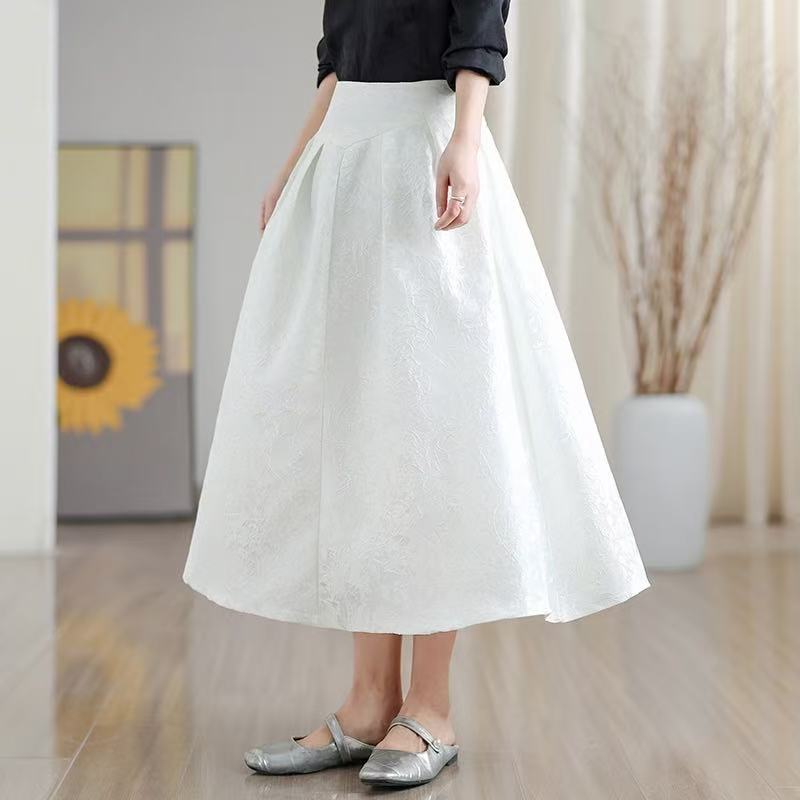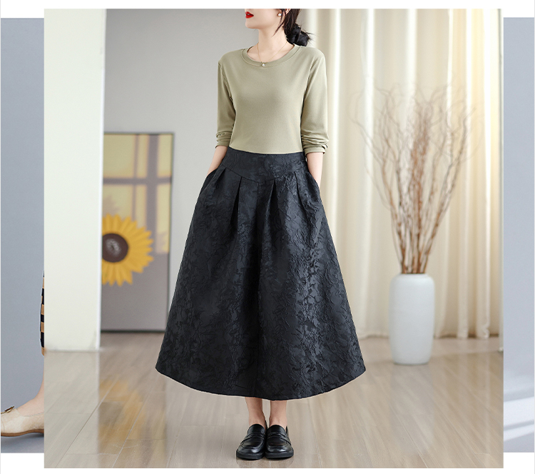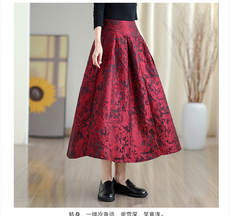 MY16939# 复古提花高腰显瘦半身裙新款时尚百搭A字裙中长裙女裝貨源服裝批發