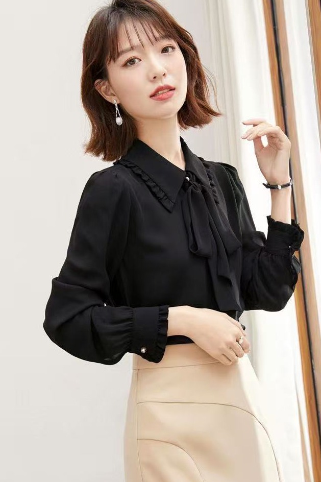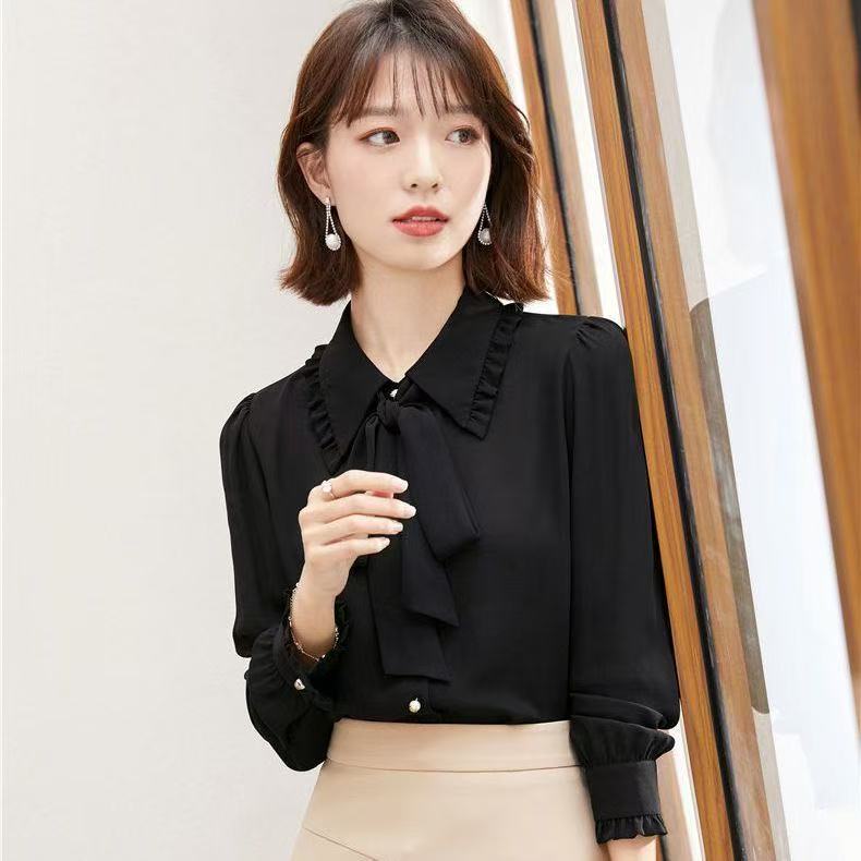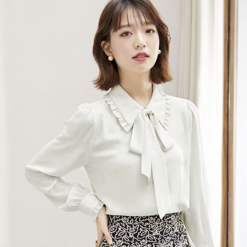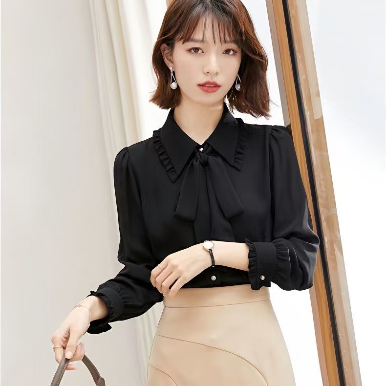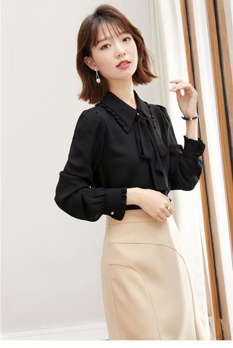MY16984# 新款女装韩版洋气时尚显瘦减龄春秋百搭小众薄款长款衬衫衬衣女裝貨源服裝批發
