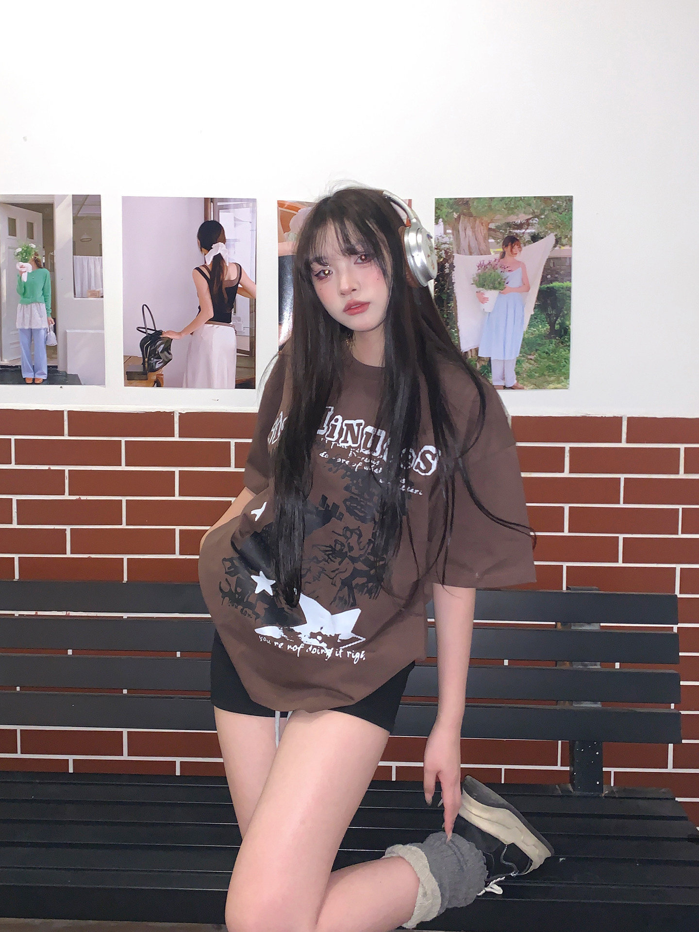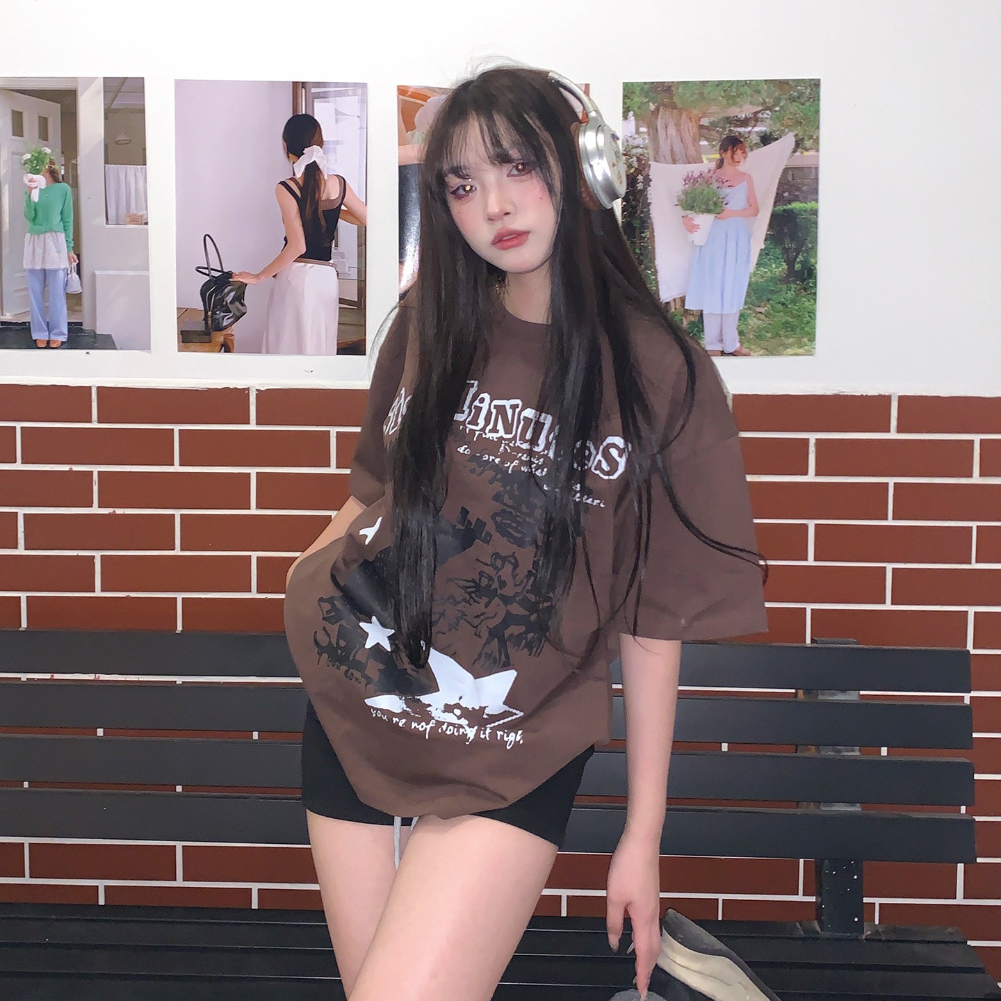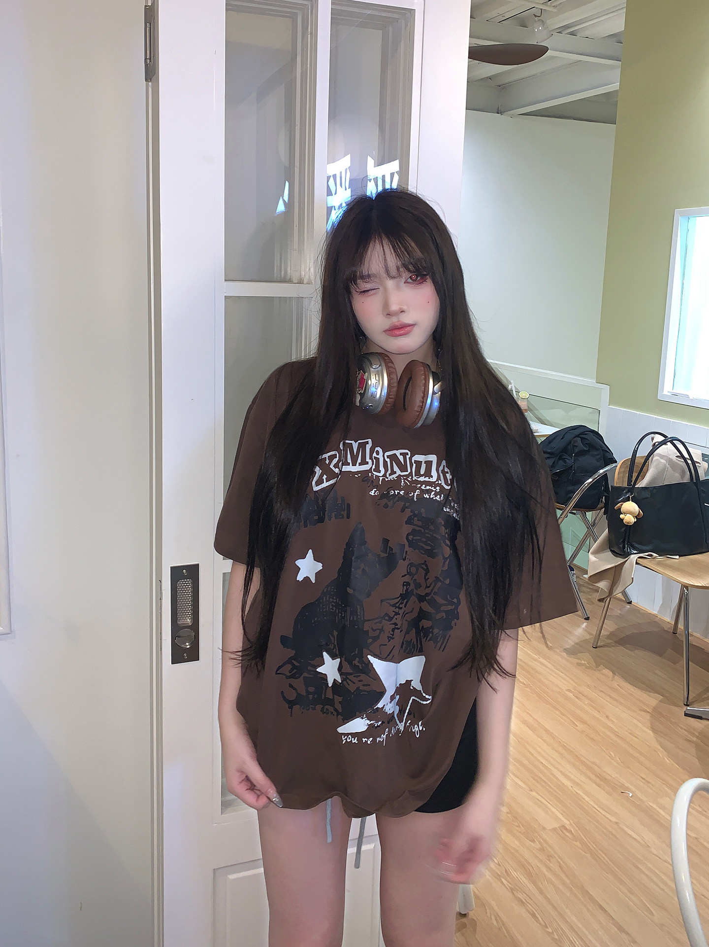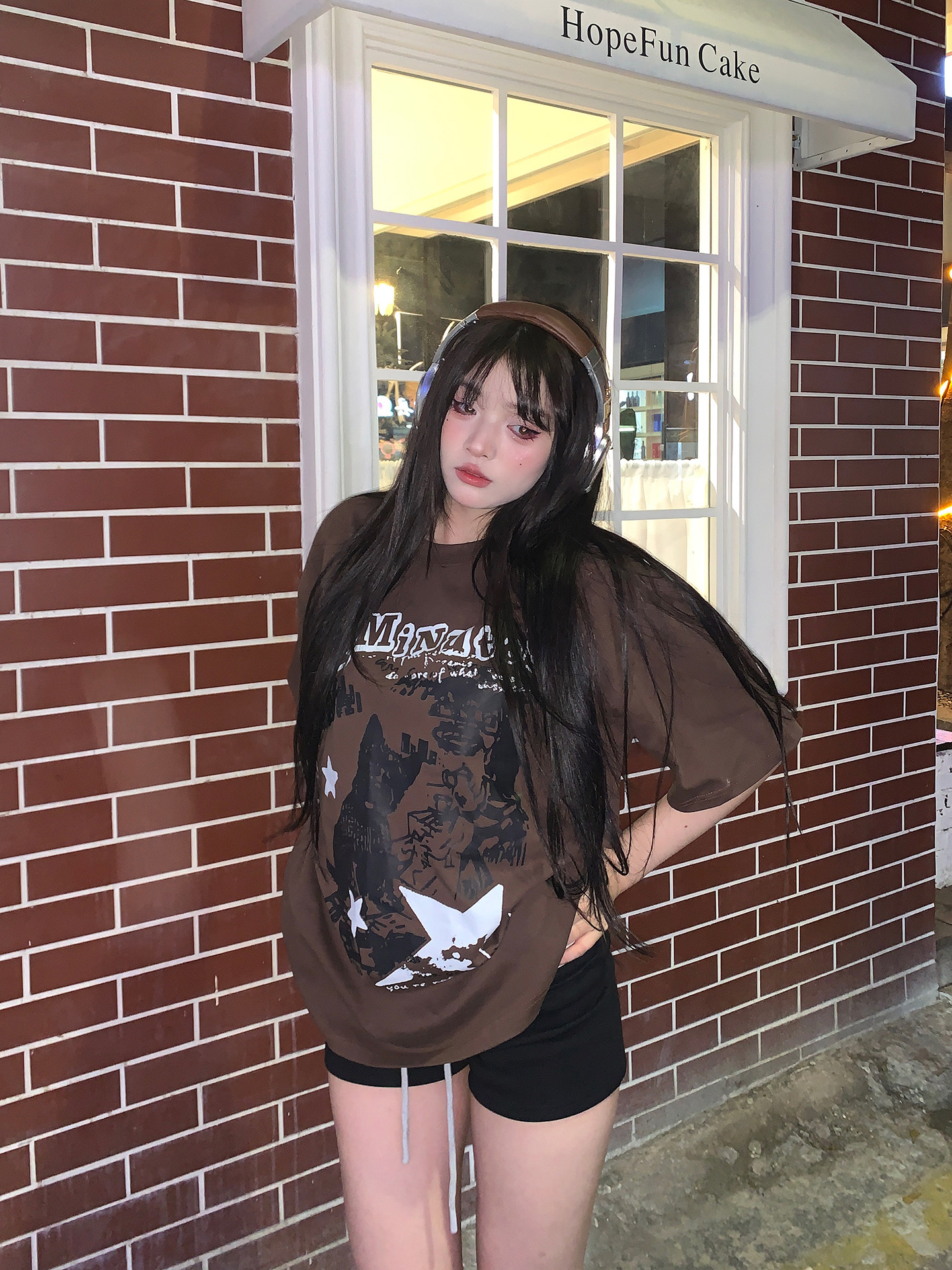 MY17005# 美式趣味狗狗印花短袖情侣oversizeT恤男女纯棉上衣t恤潮女裝貨源服裝批發