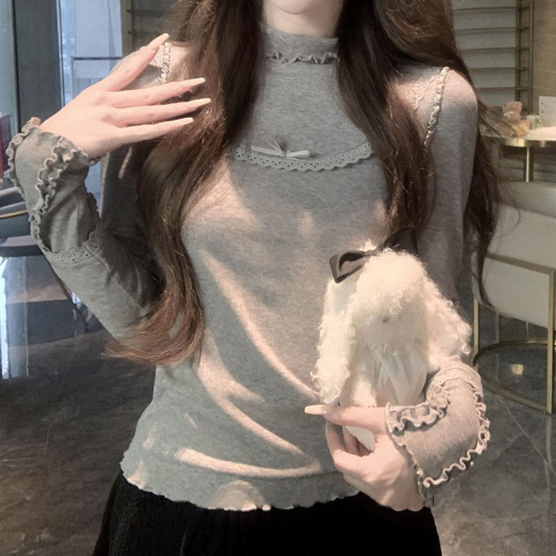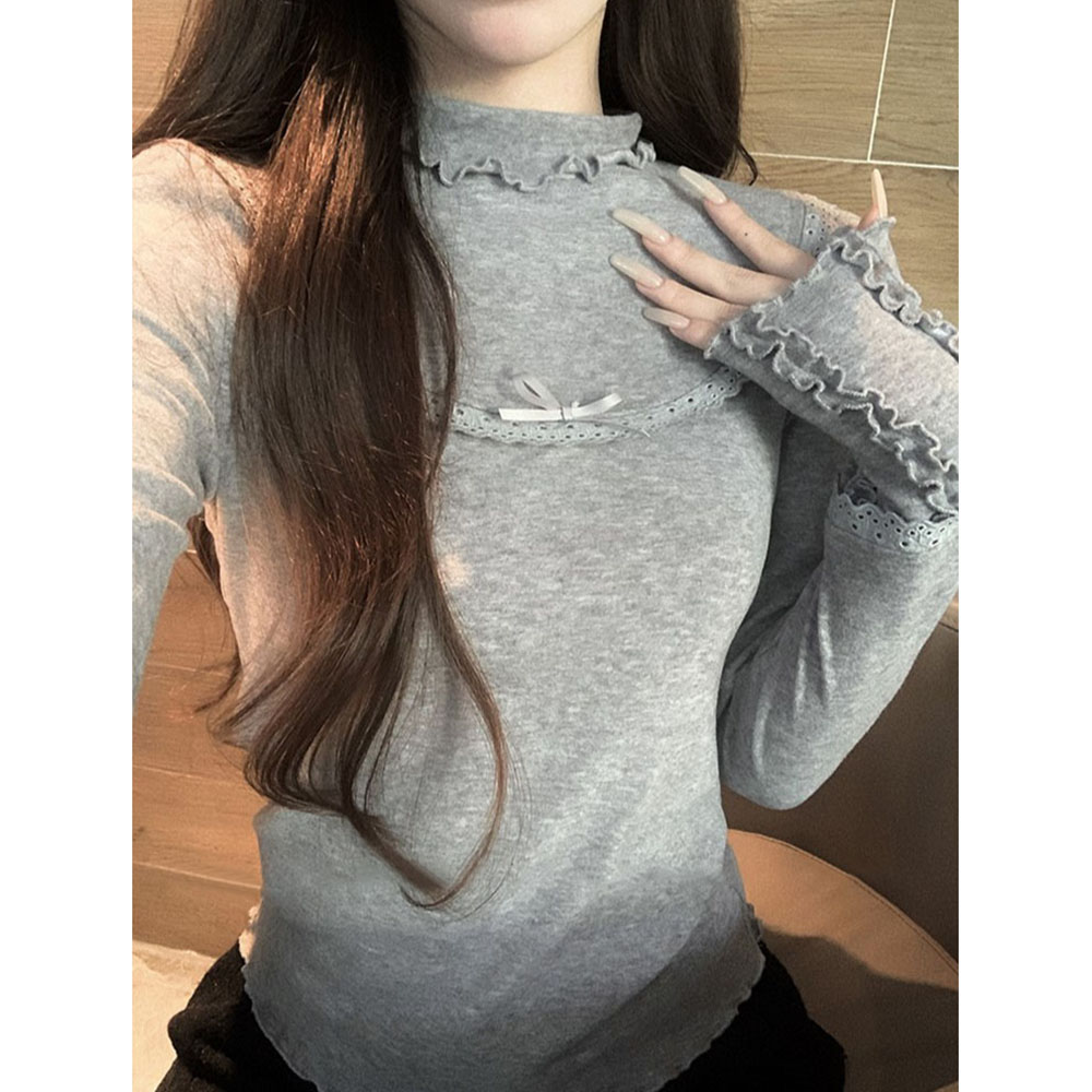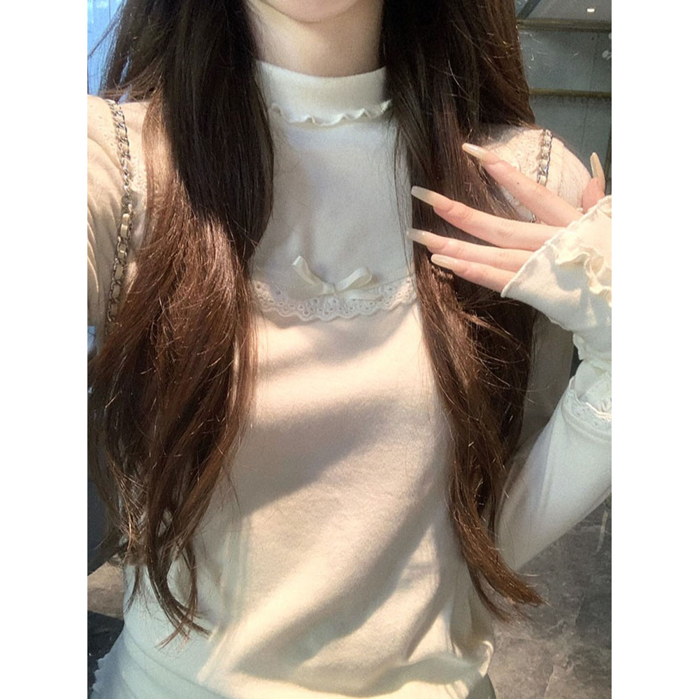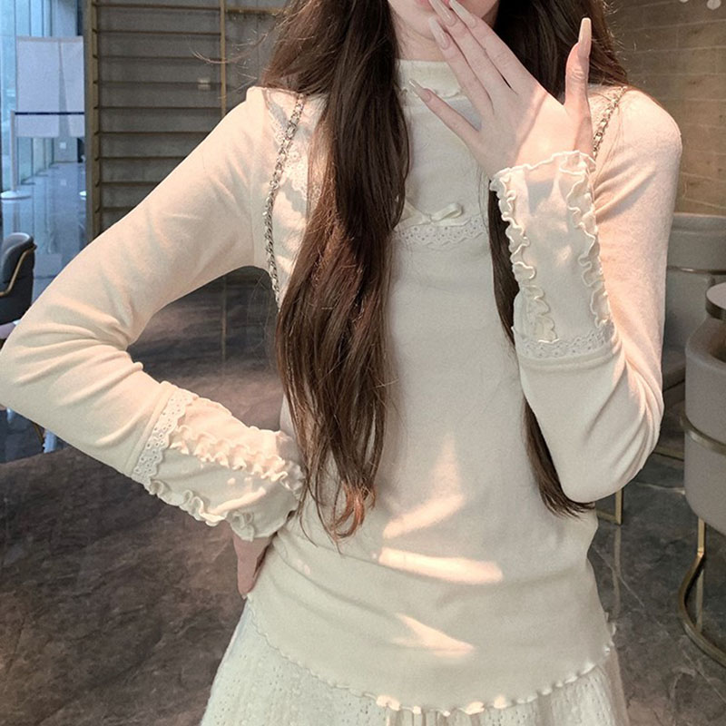 MY17011# 日系甜美蝴蝶结木耳边长袖打底衫女新冬款女裝貨源服裝批發