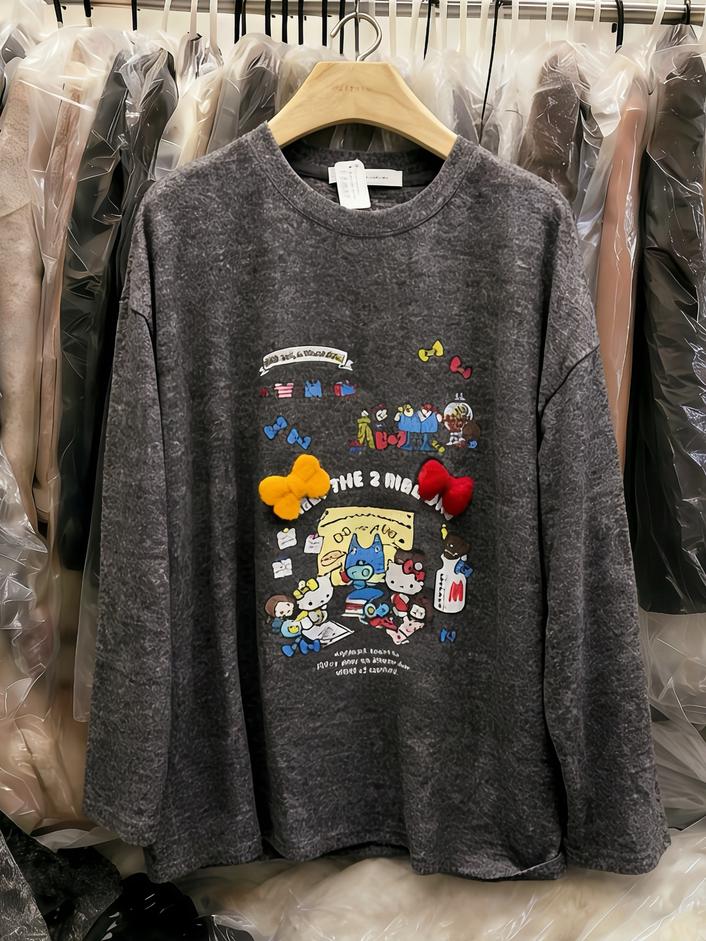 MY17016# 德绒加厚欧洲站圆领字母卡通图案宽松长袖T恤百搭上衣打底衫女裝貨源服裝批發