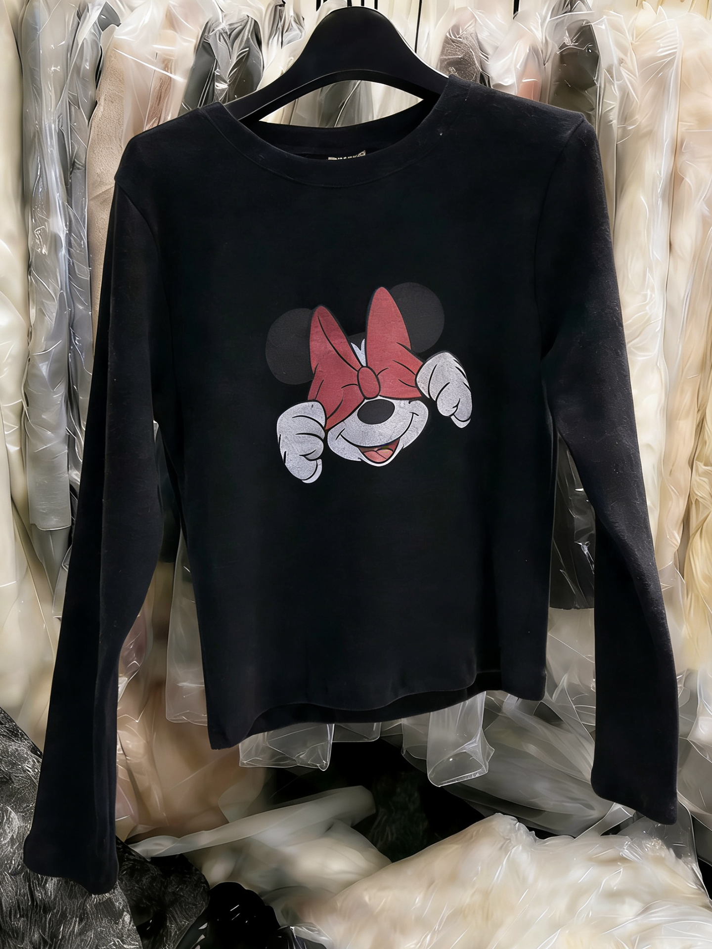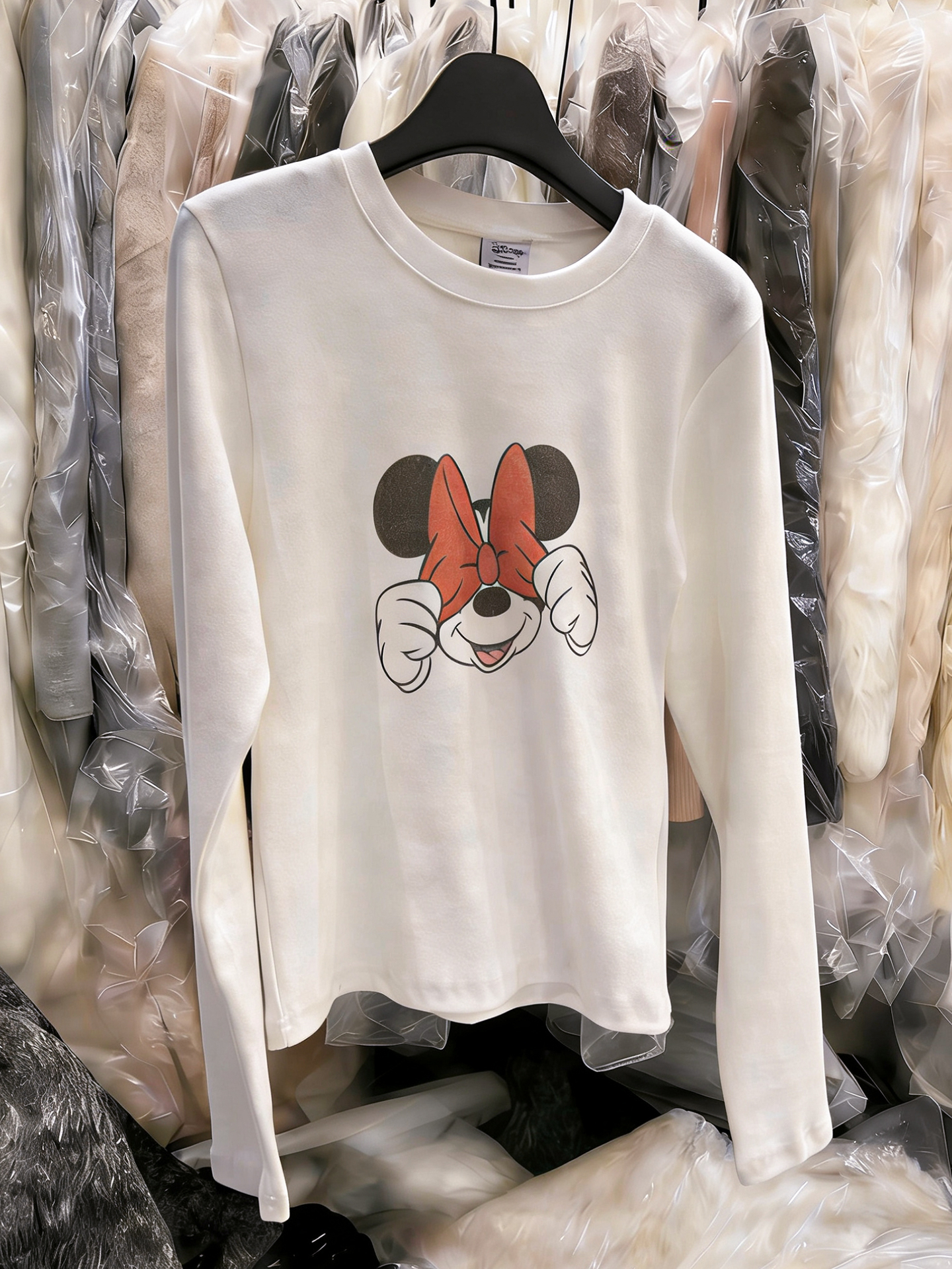 MY17017# 现韩国东大门代购女CREDITO百搭洋气蝴蝶结印花长袖T恤女裝貨源服裝批發