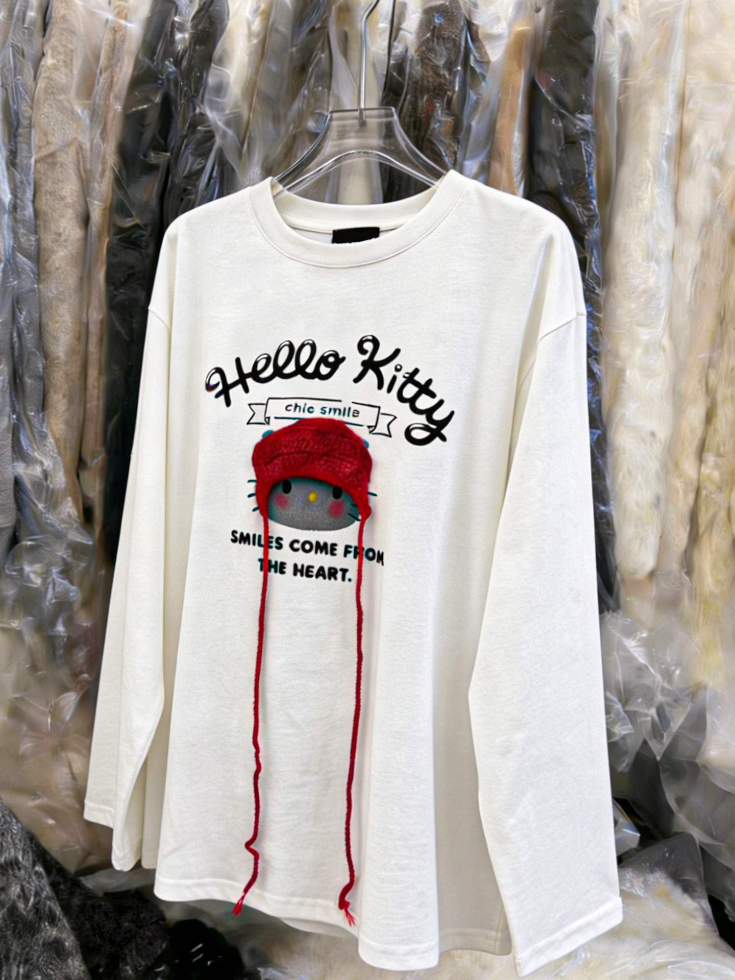 MY17018# 趣味可爱 针织小红帽猫咪图案长袖T恤女 秋季新品长袖宽松上衣女裝貨源服裝批發