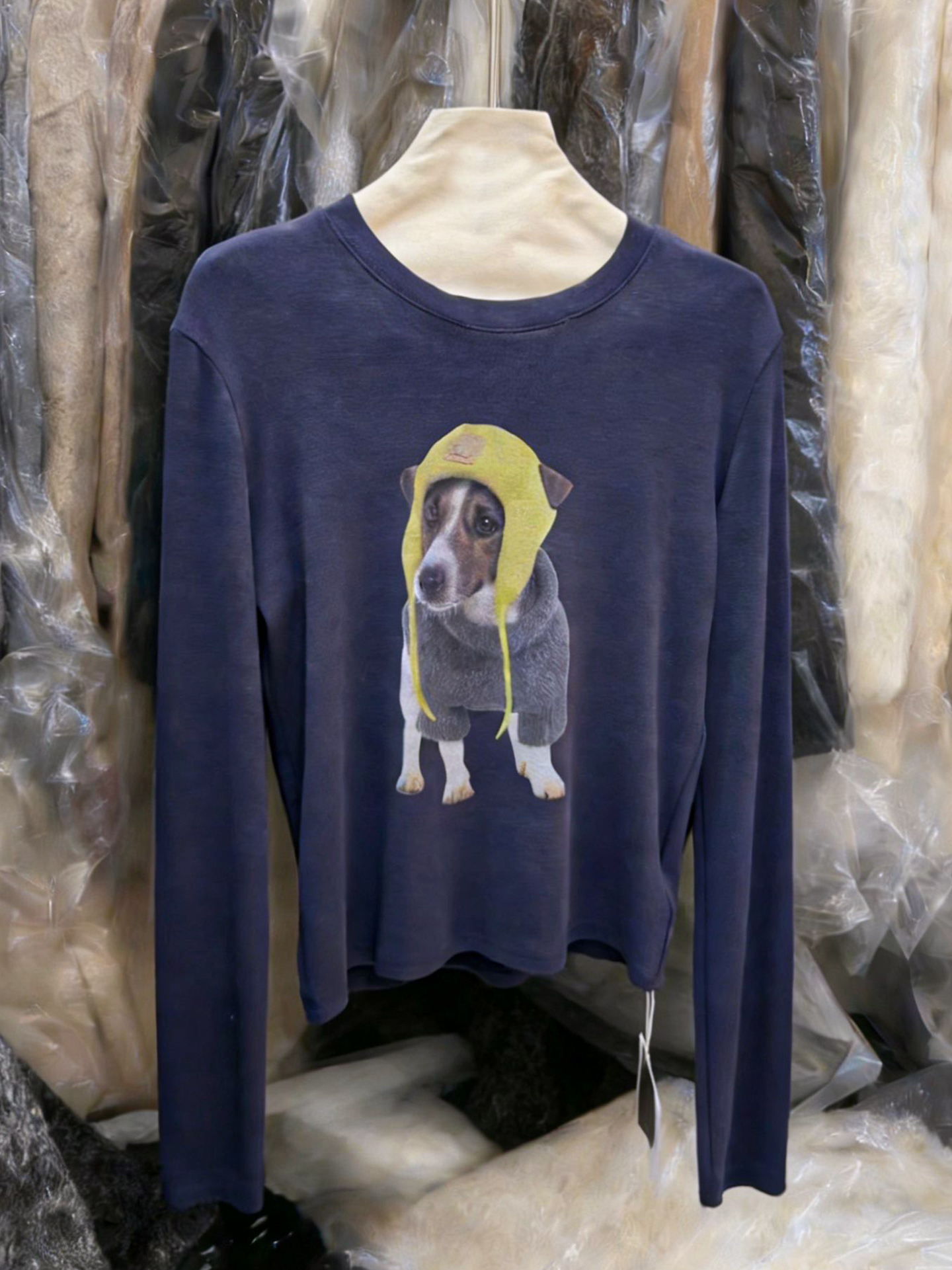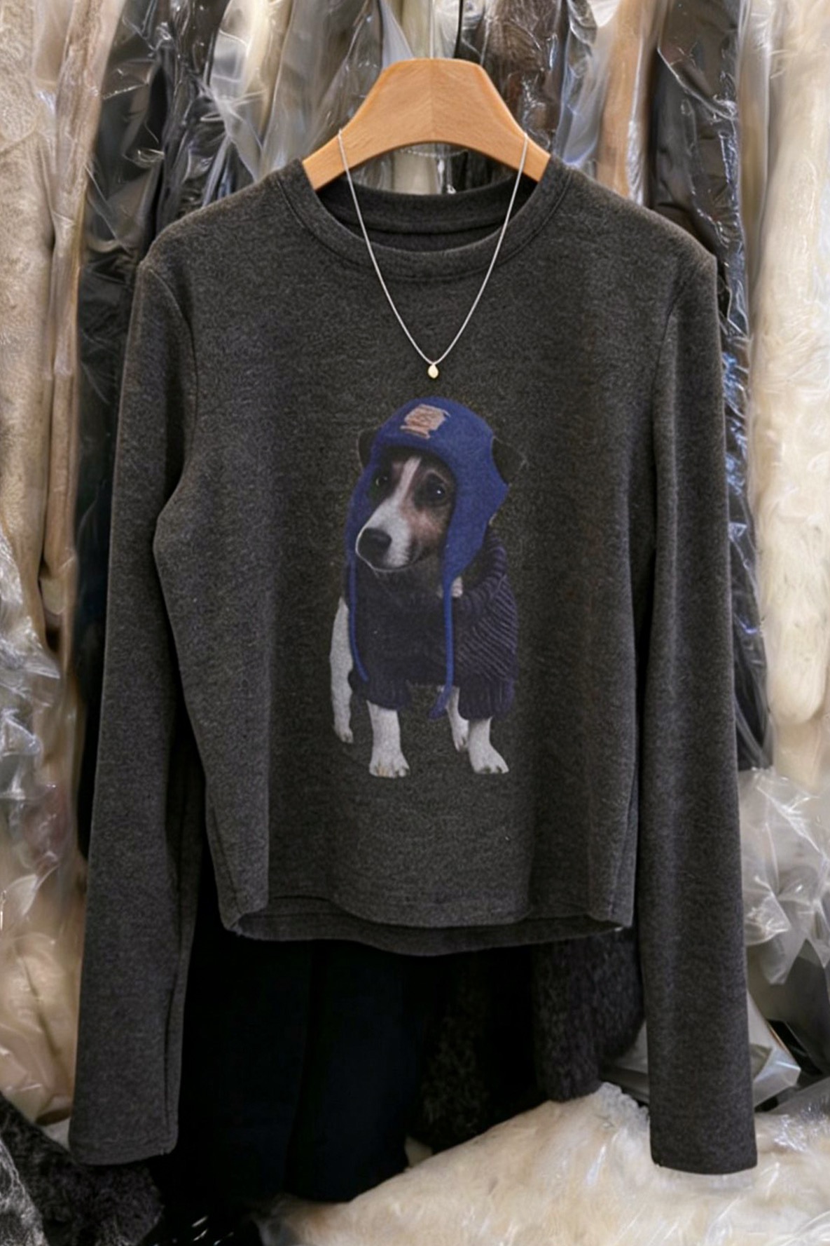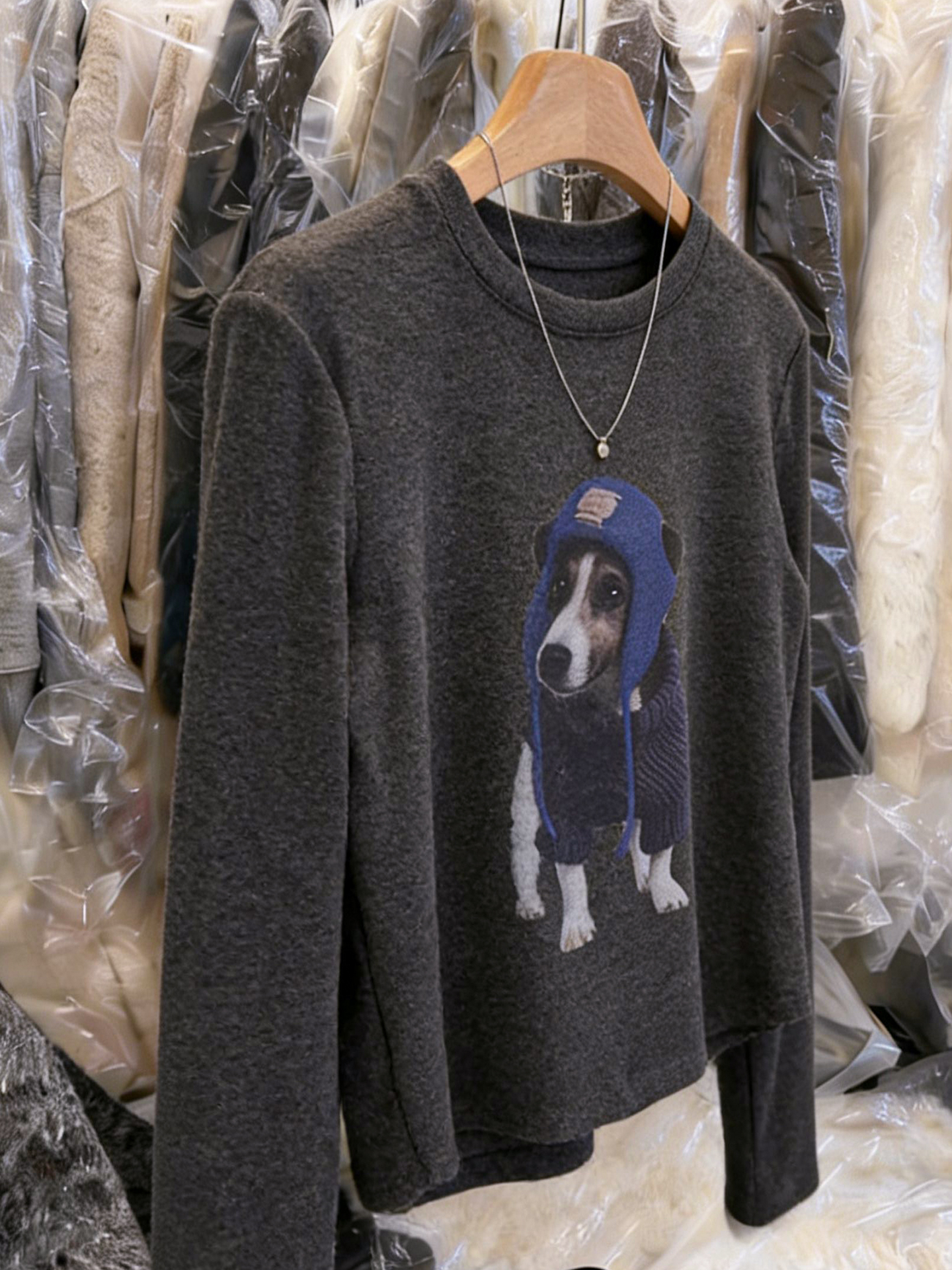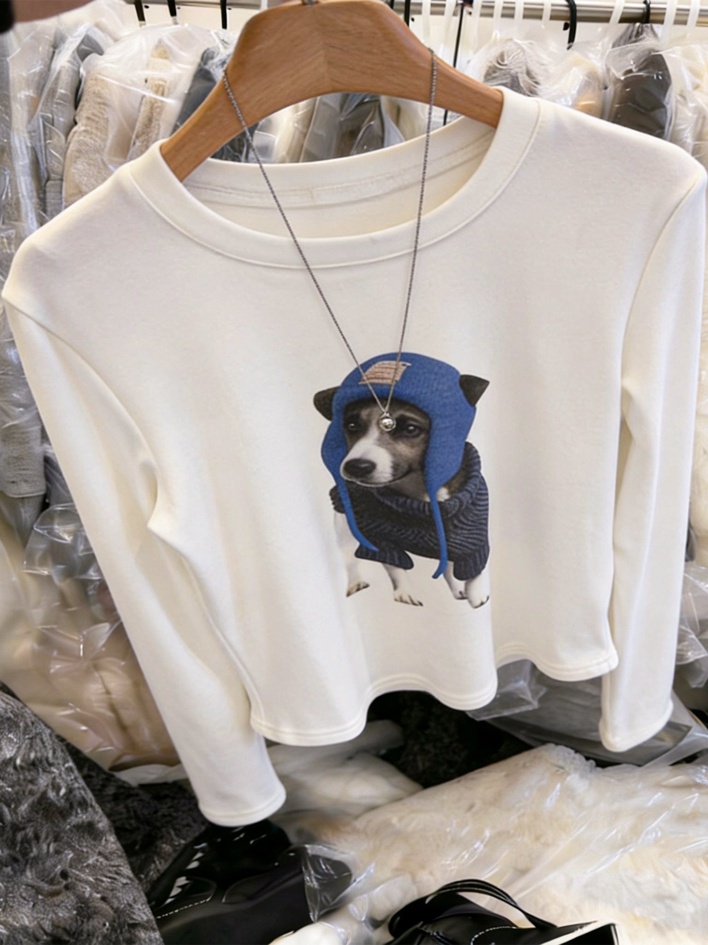 MY17020# 磨毛加绒印花卡通小狗显瘦小众长袖T恤女秋季新款软糯百搭打底衫女裝貨源服裝批發