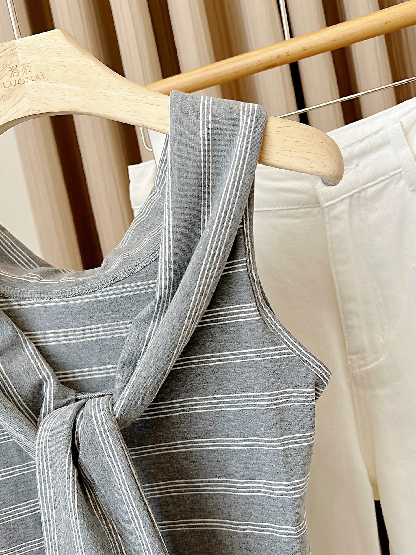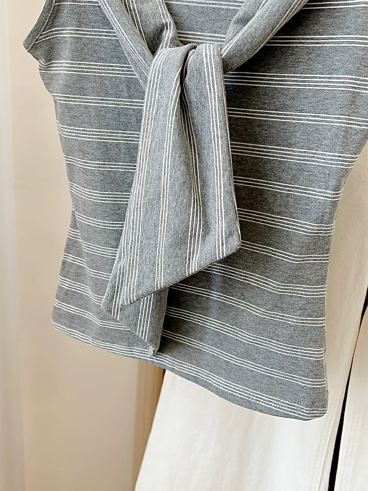 MY17022# 灰条纹背心假两件披肩无袖t恤6新款夏季修身显瘦短款上衣女裝貨源服裝批發