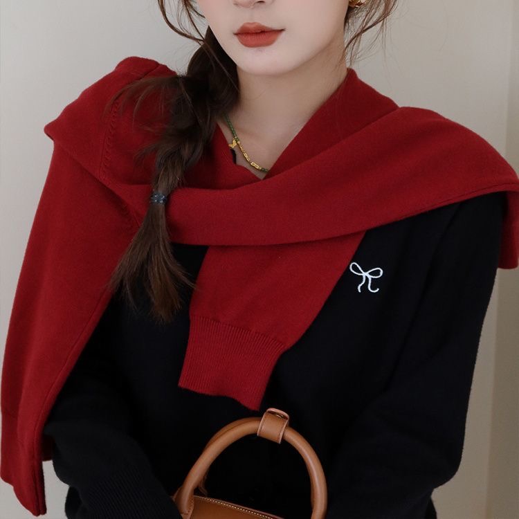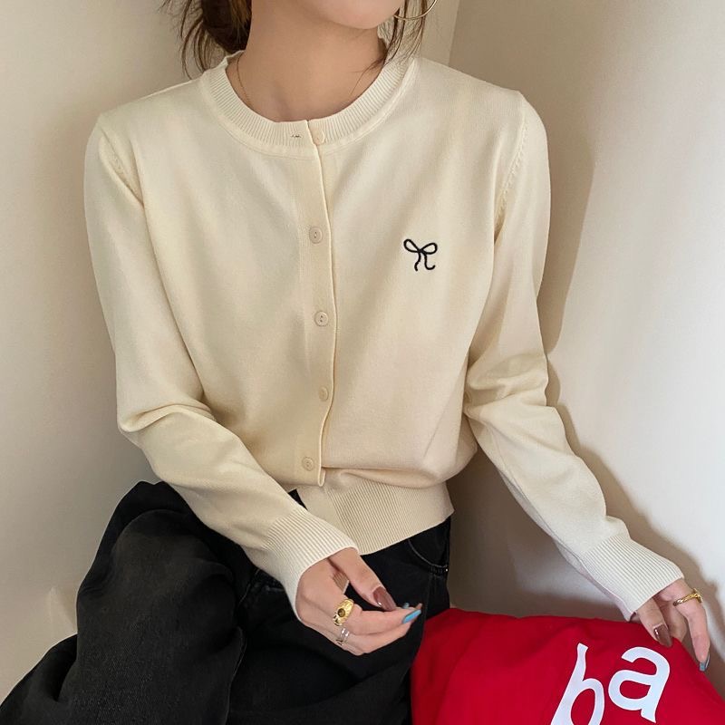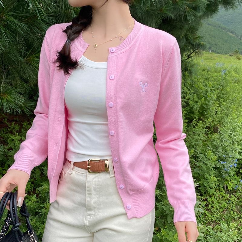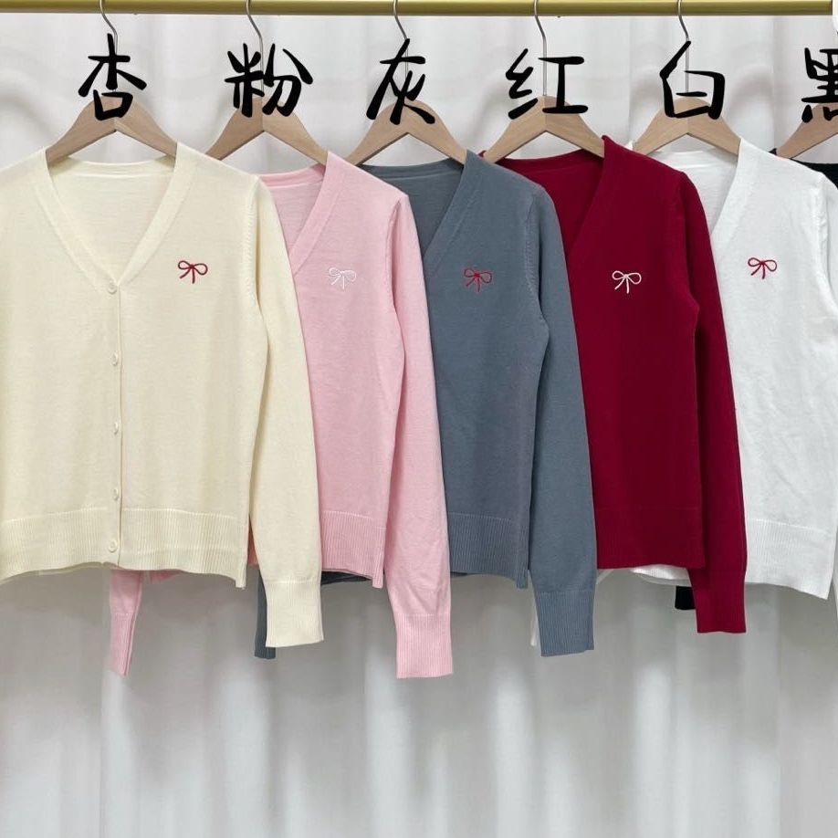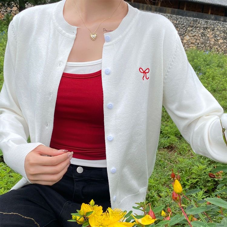 MY17039# 红色刺绣针织开衫女外搭新款薄毛衣修身长袖内搭打底上衣女裝貨源服裝批發