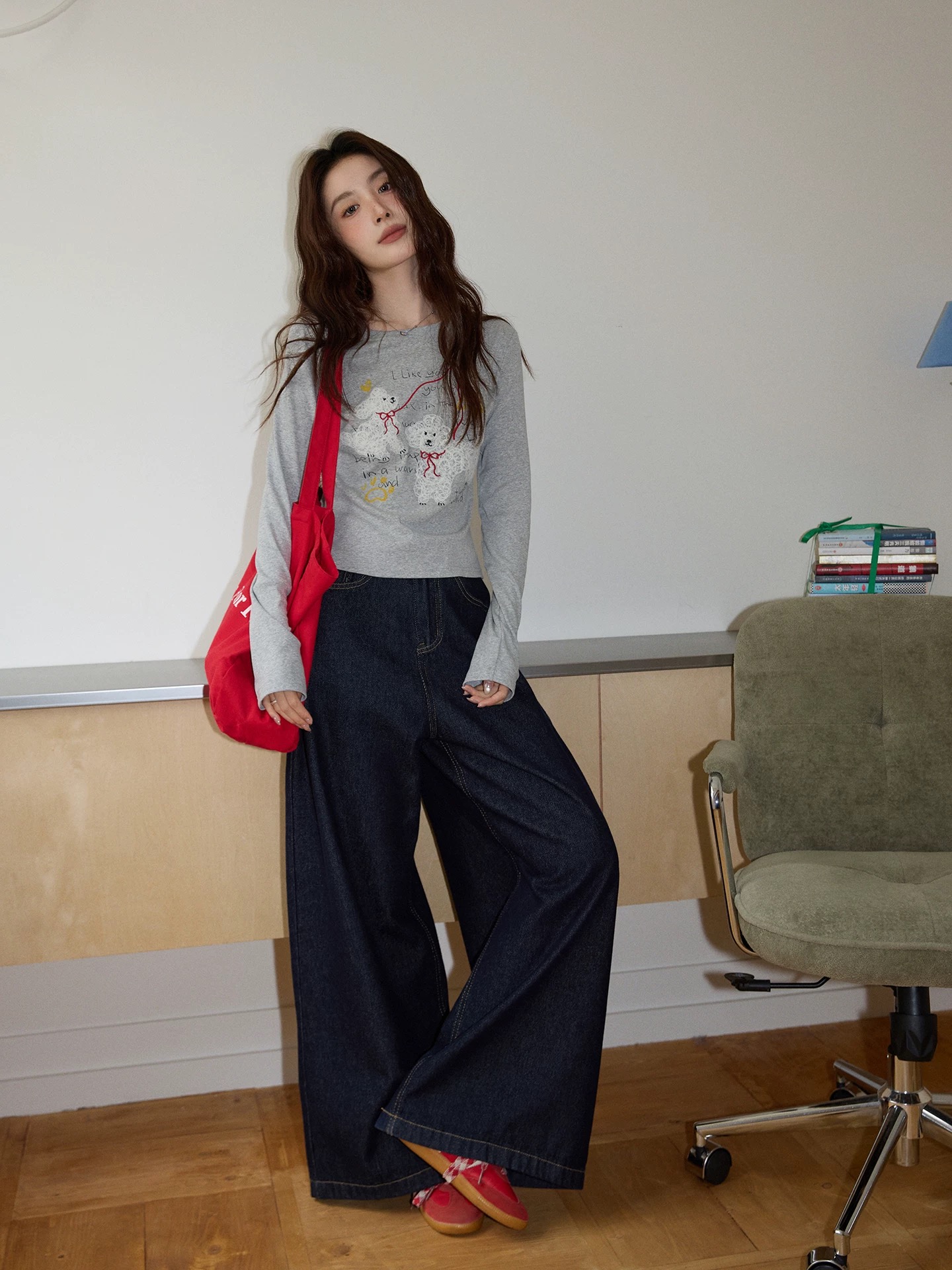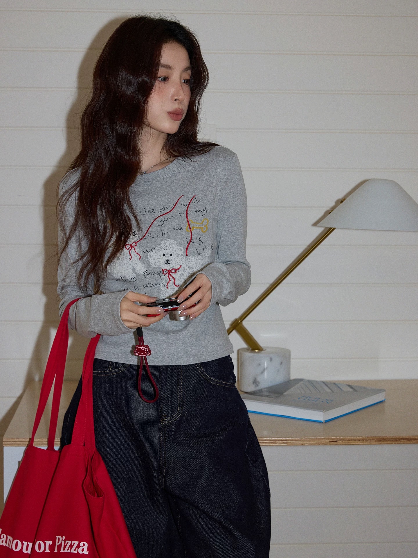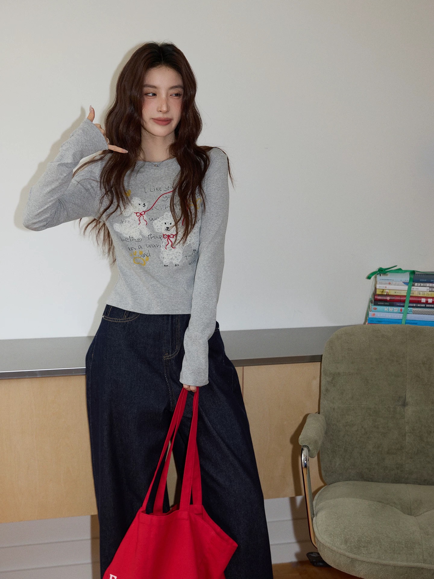 MY17055# 新款内搭长袖T恤女灰色短款上衣正肩修身打底衫可外穿女裝貨源服裝批發