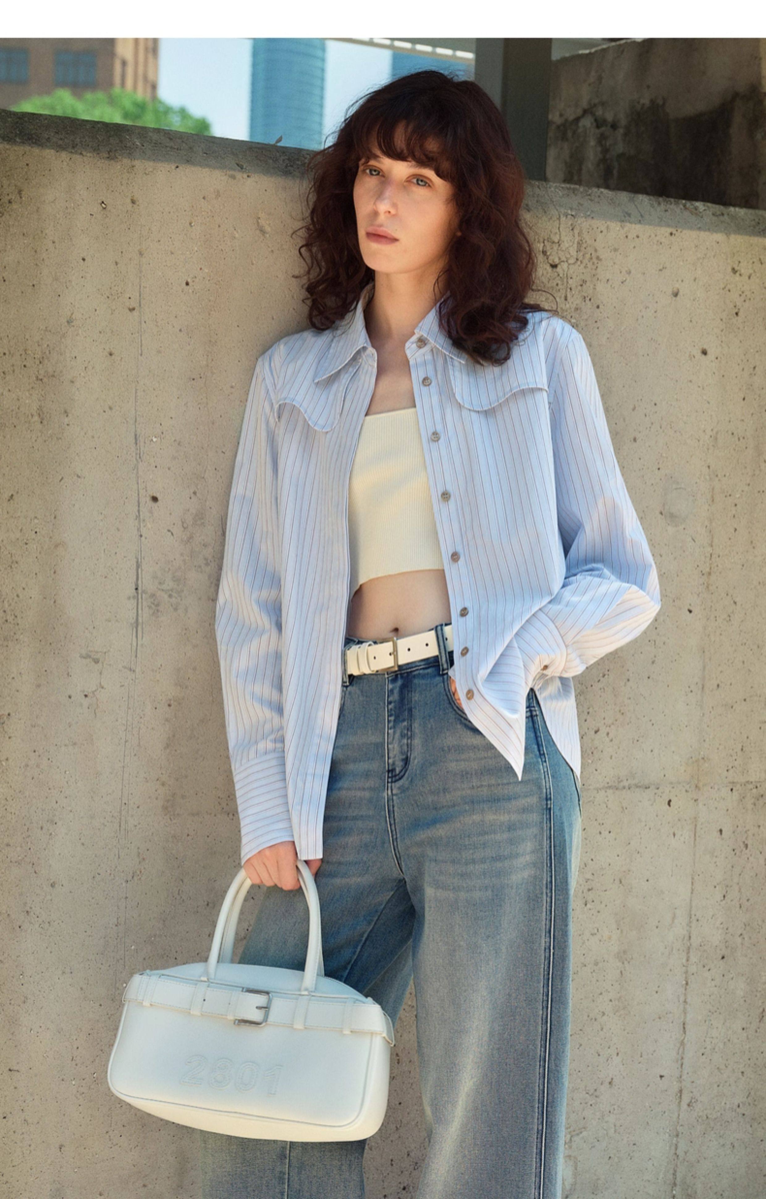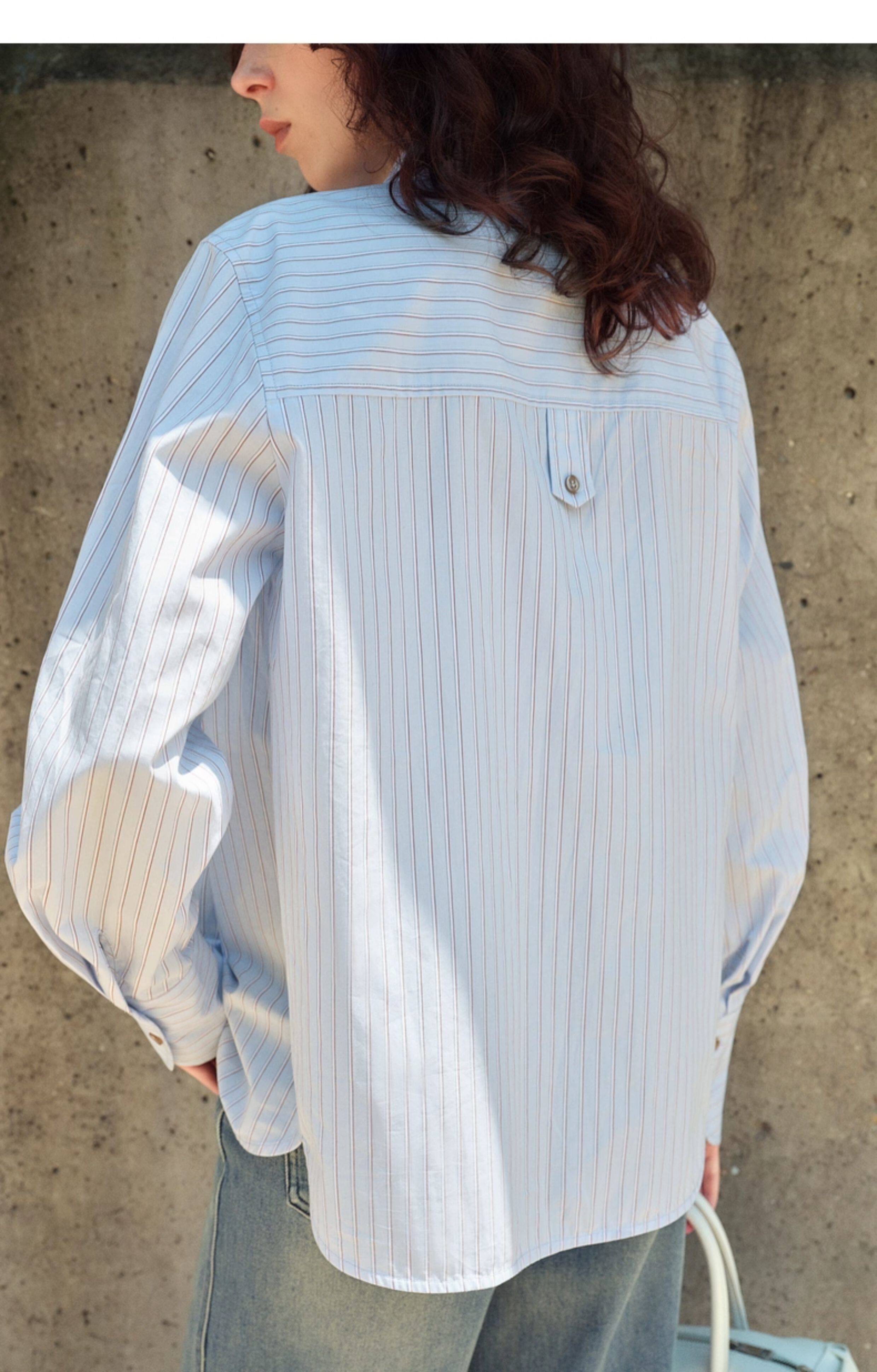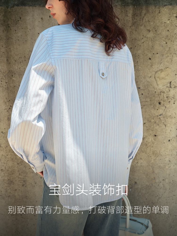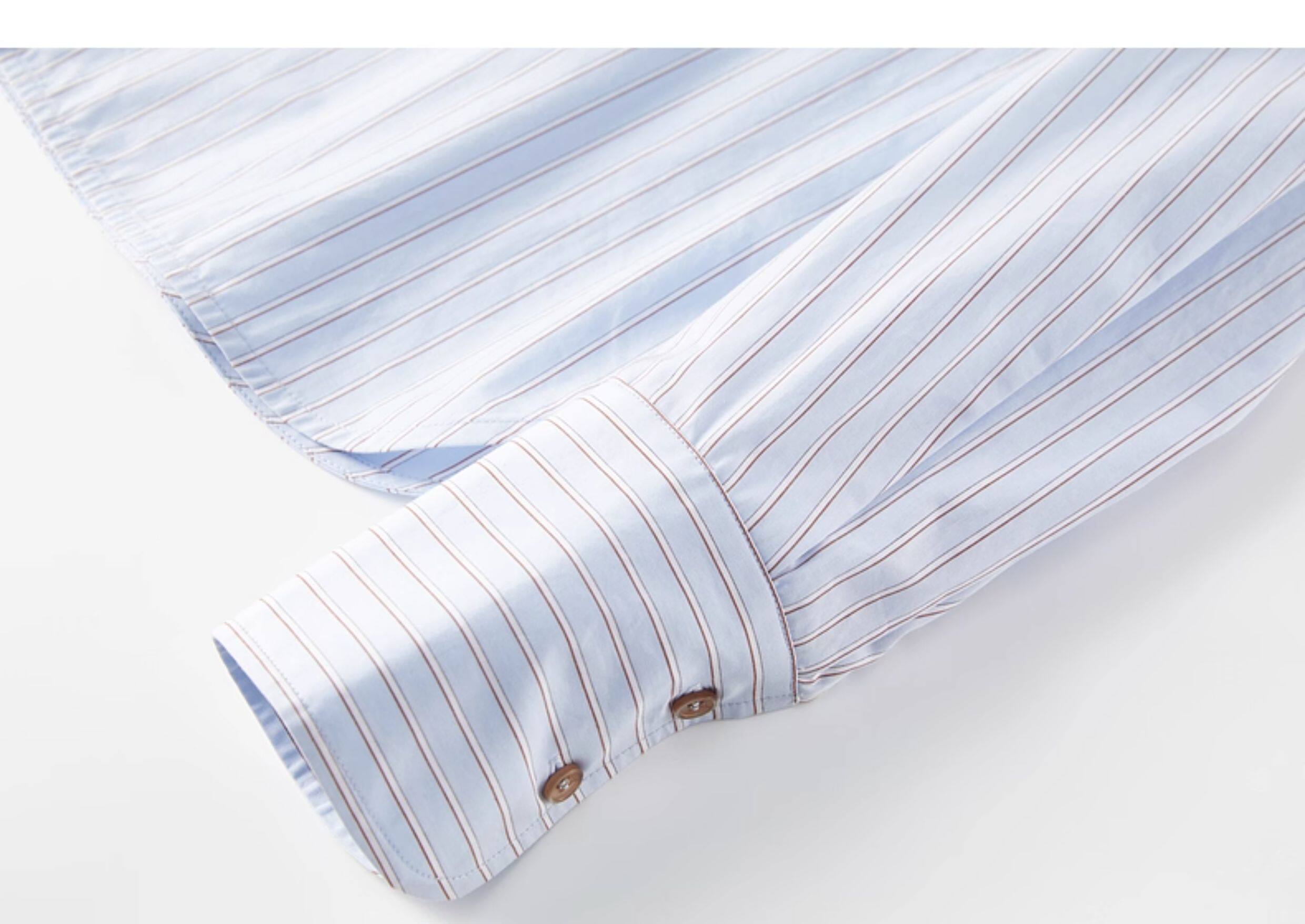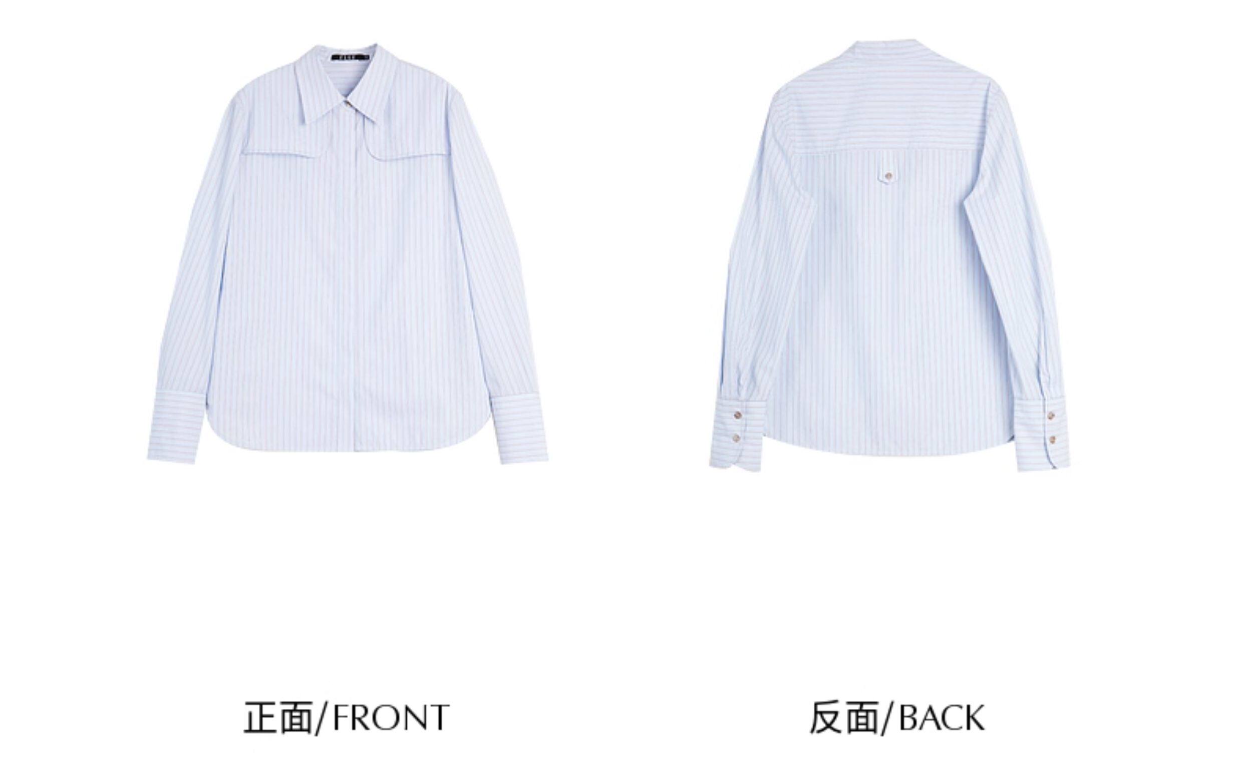 MY17056# 法式纯棉条纹衬衫新款设计感通勤休闲风时髦开衫衬衣女裝貨源服裝批發