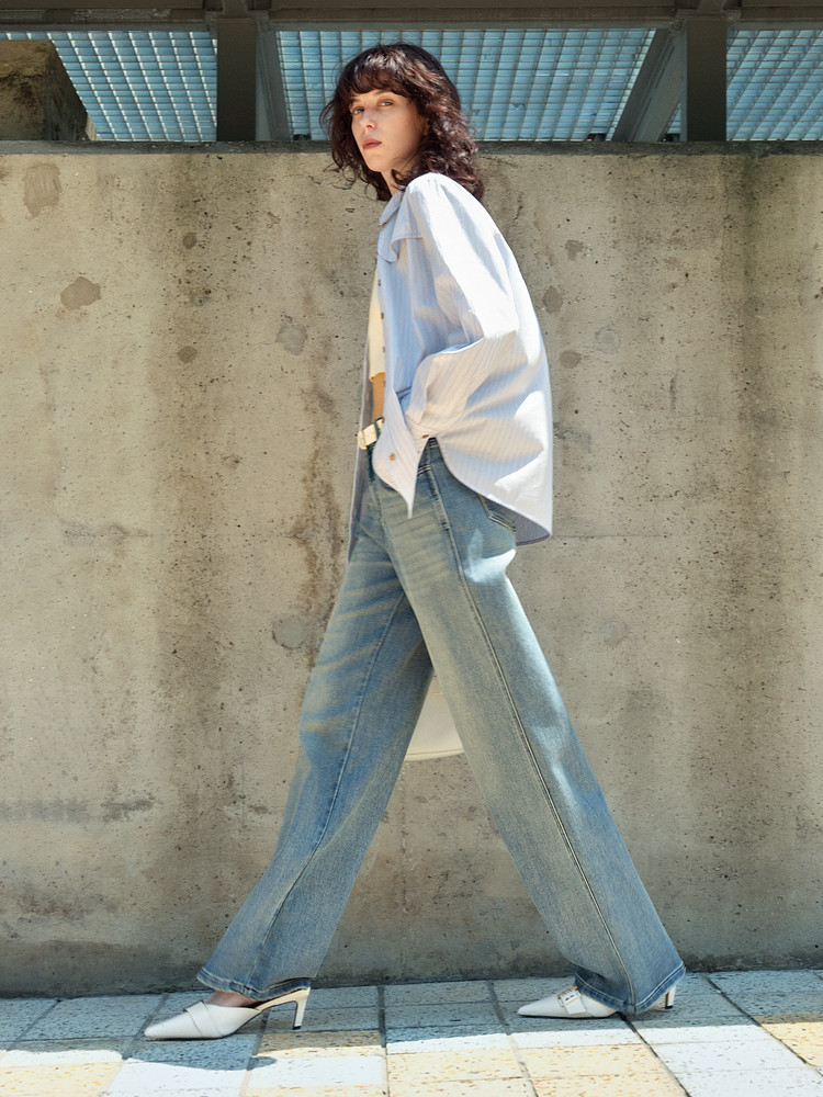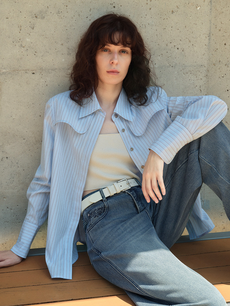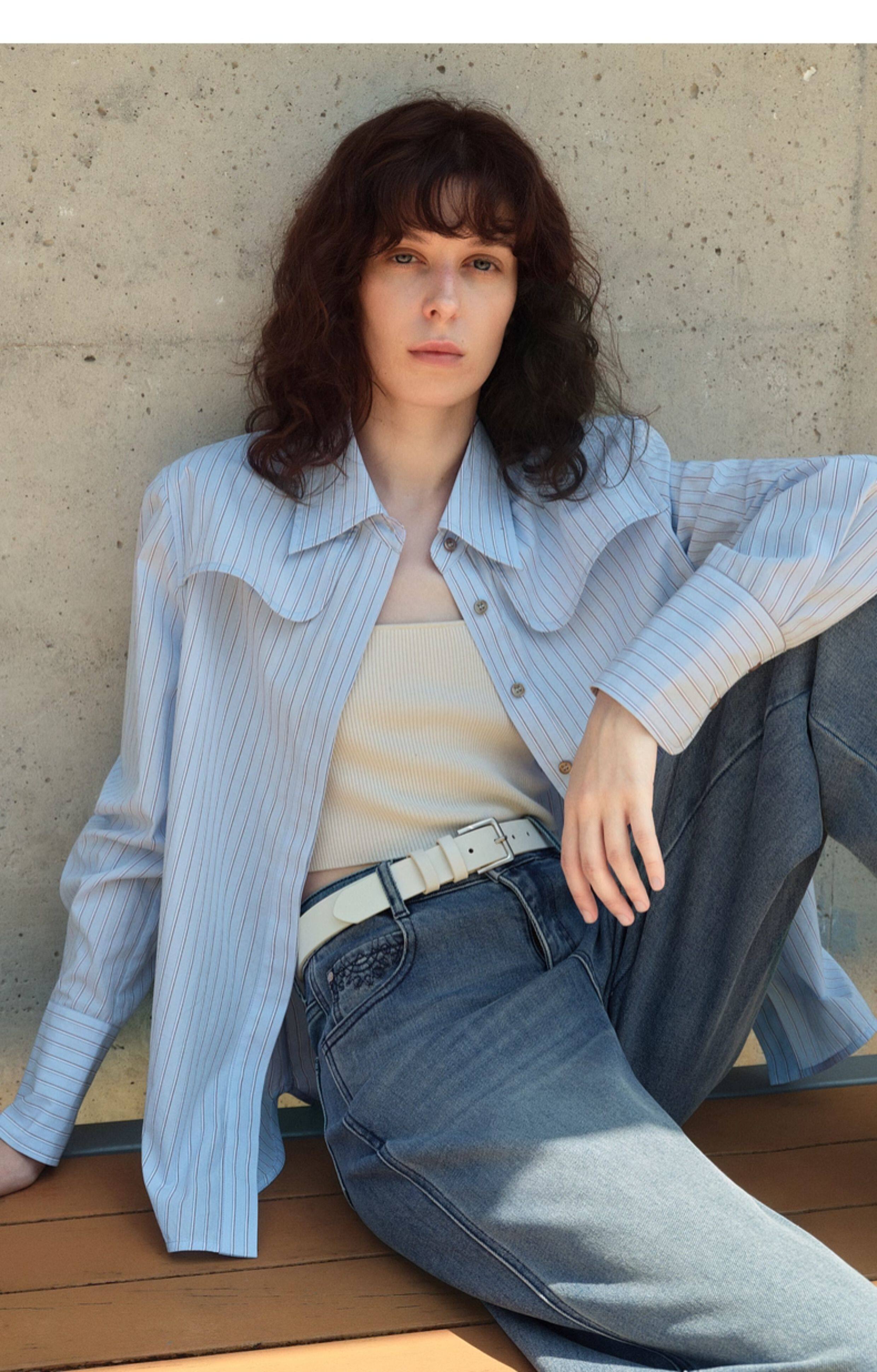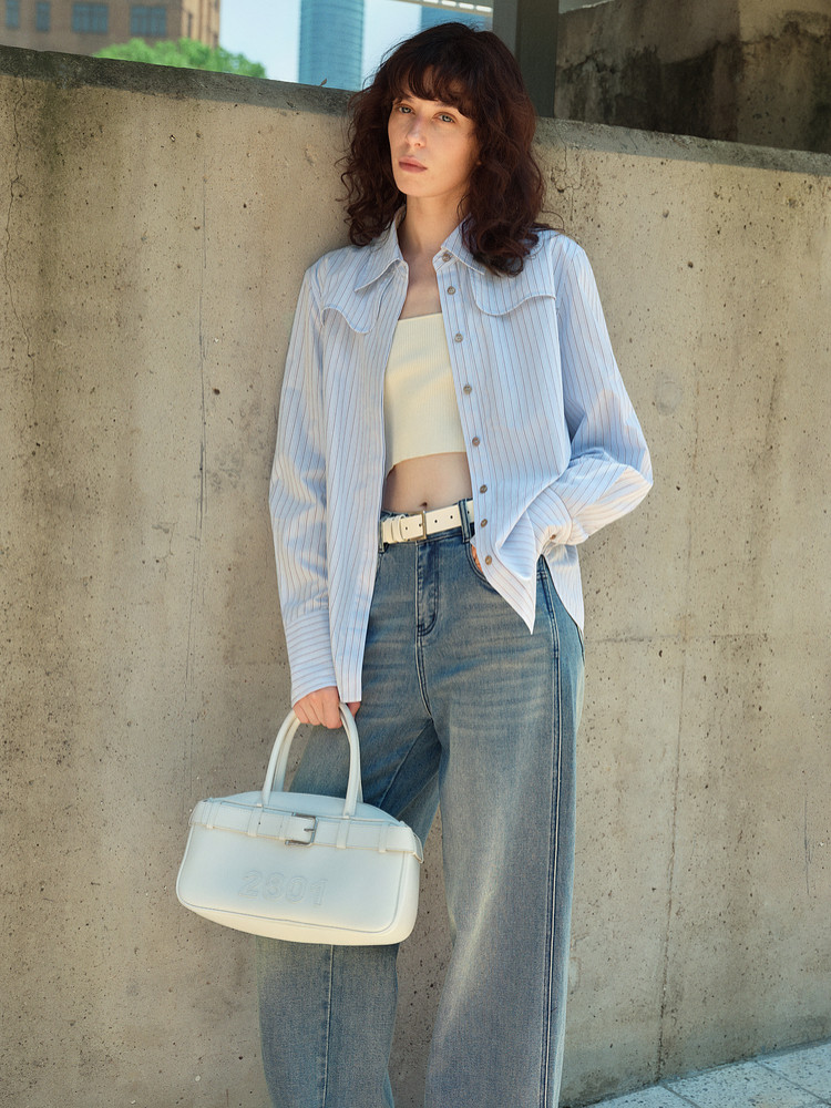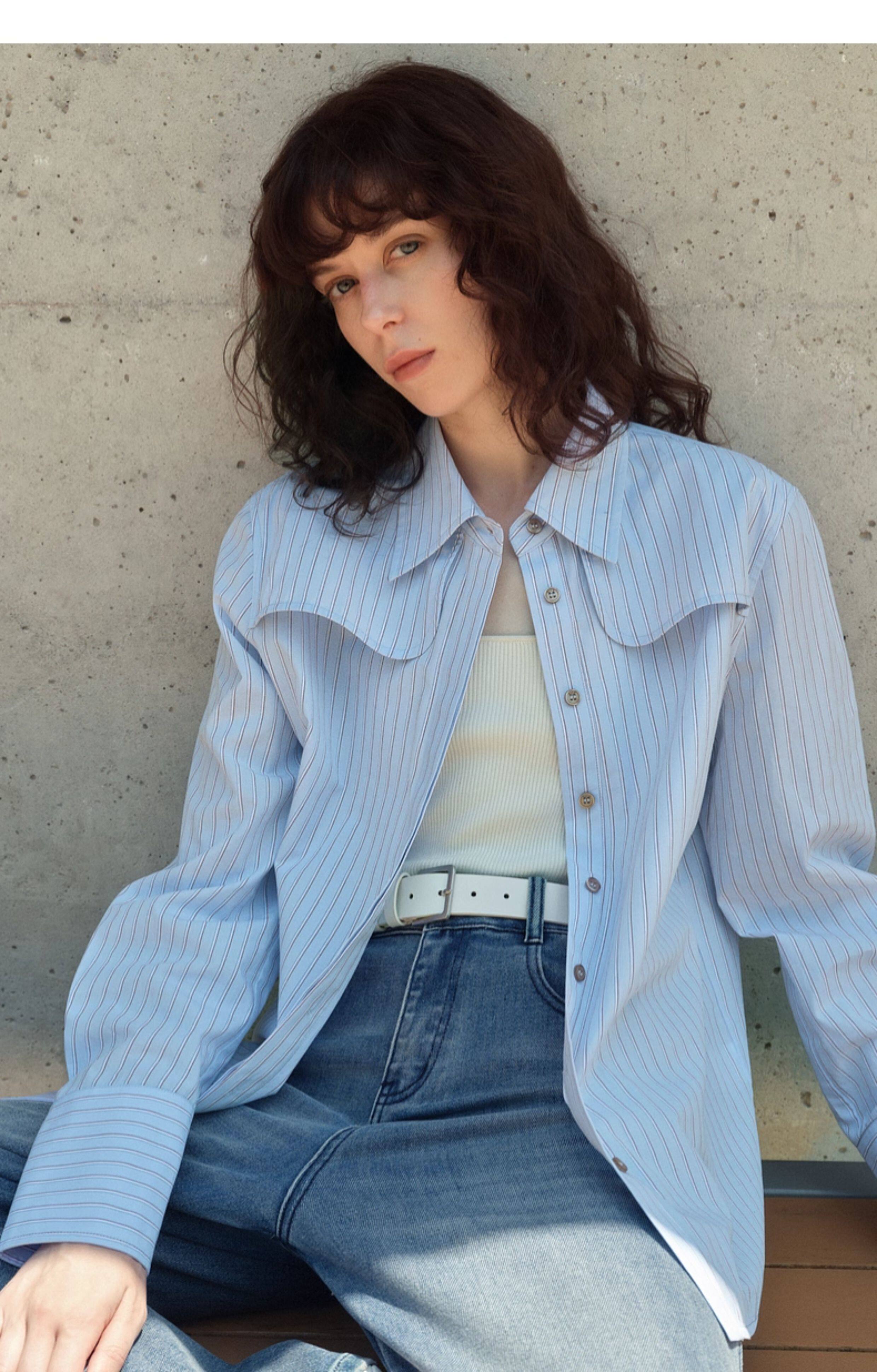 MY17056# 法式纯棉条纹衬衫新款设计感通勤休闲风时髦开衫衬衣女裝貨源服裝批發