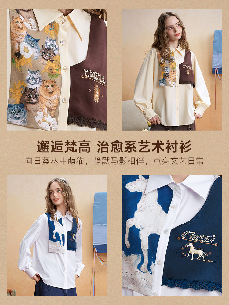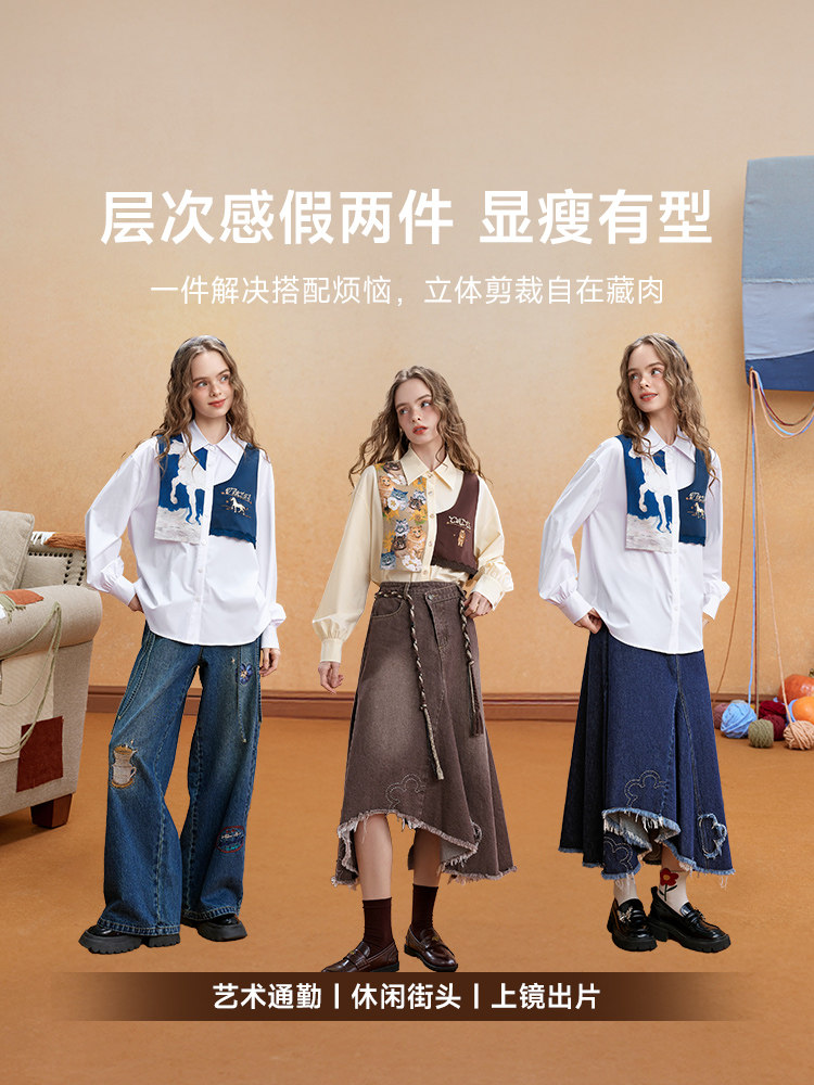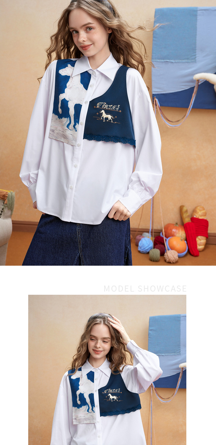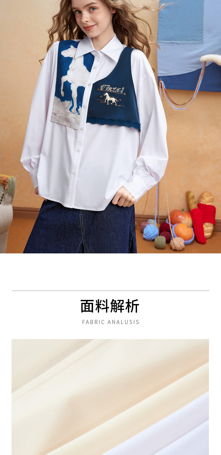 MY17057# 假两件衬衫设计感长袖衬衣穿搭款式上衣狩猎禁区女裝貨源服裝批發