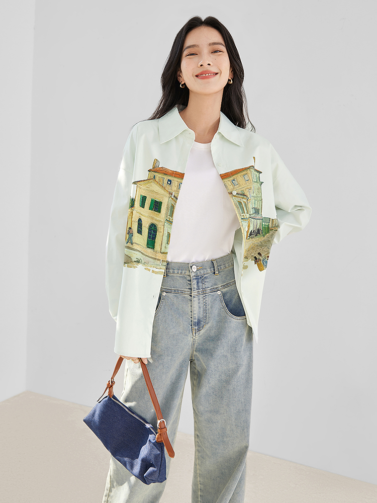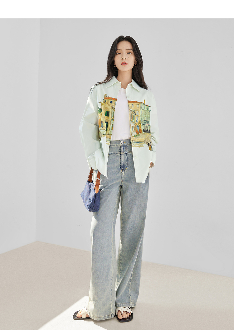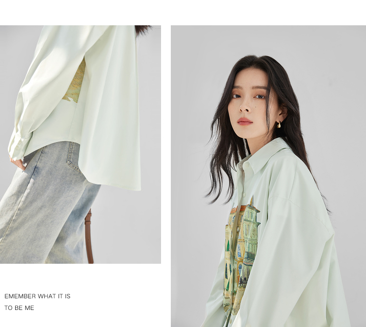 MY17061# 独特印花长袖衬衫新款气质宽松开衫外套上衣女裝貨源服裝批發