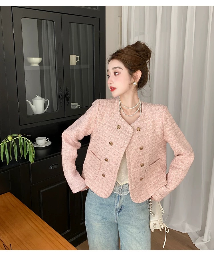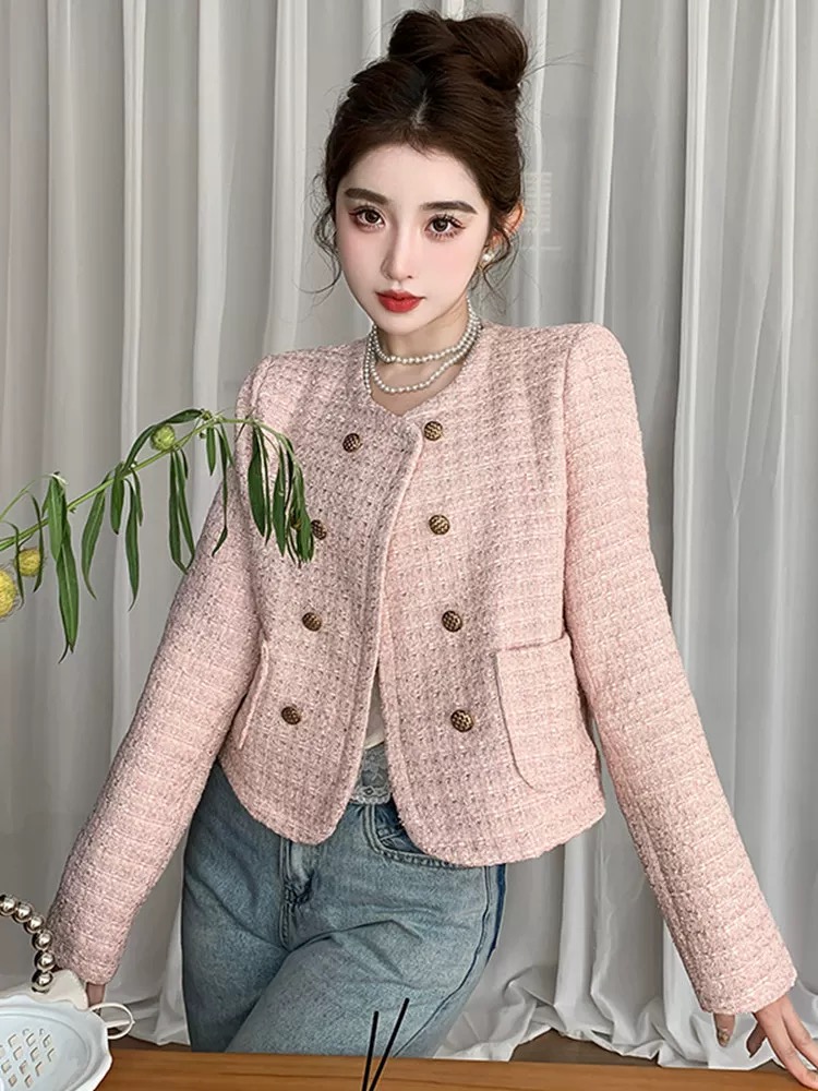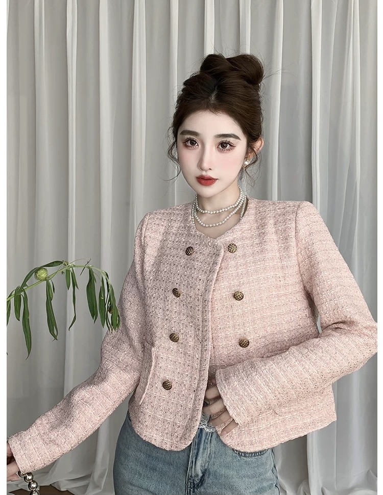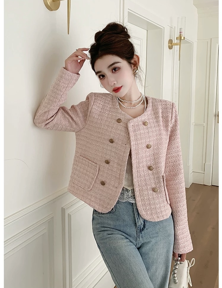 MY17066# 小香风短外套女装新款设计感短款粗花呢长袖百搭上衣潮女裝貨源服裝批發