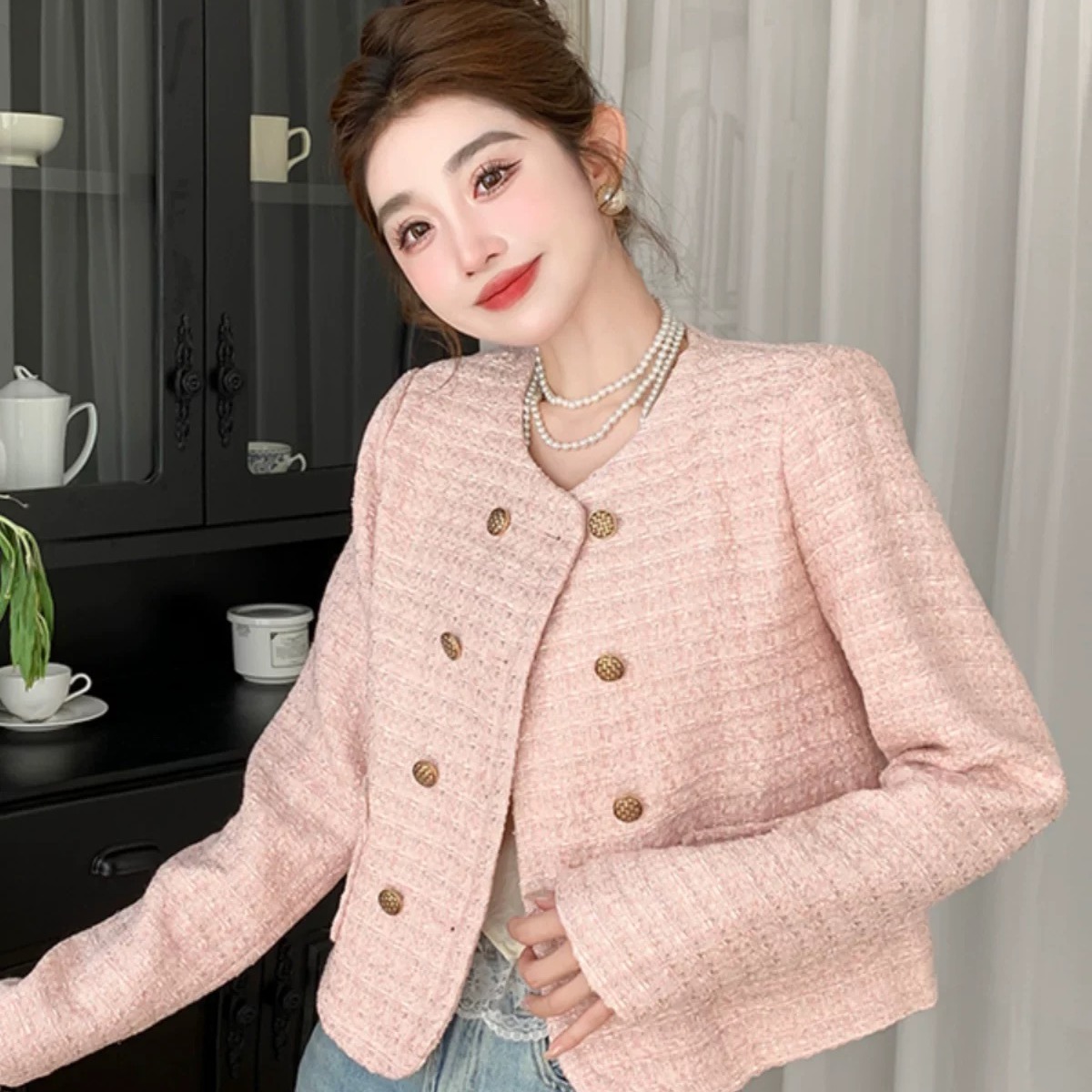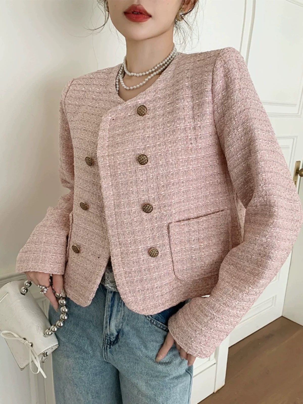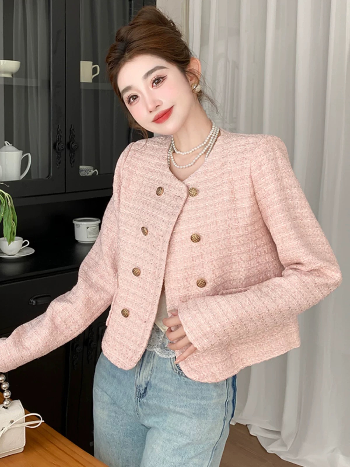 MY17066# 小香风短外套女装新款设计感短款粗花呢长袖百搭上衣潮女裝貨源服裝批發