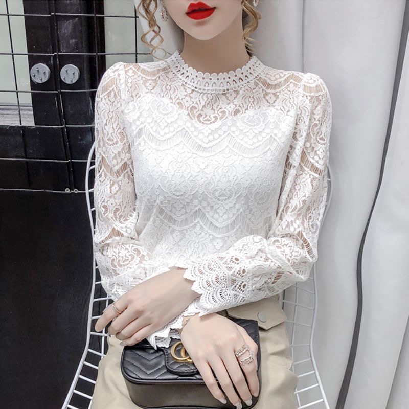 MY17069# 欧货蕾丝打底衫新款韩版内搭网纱上衣洋气女裝貨源服裝批發