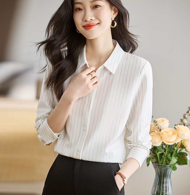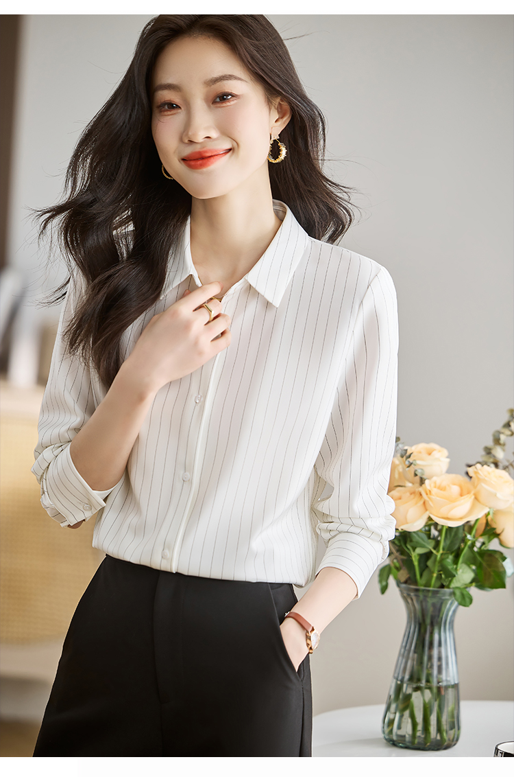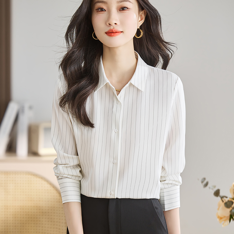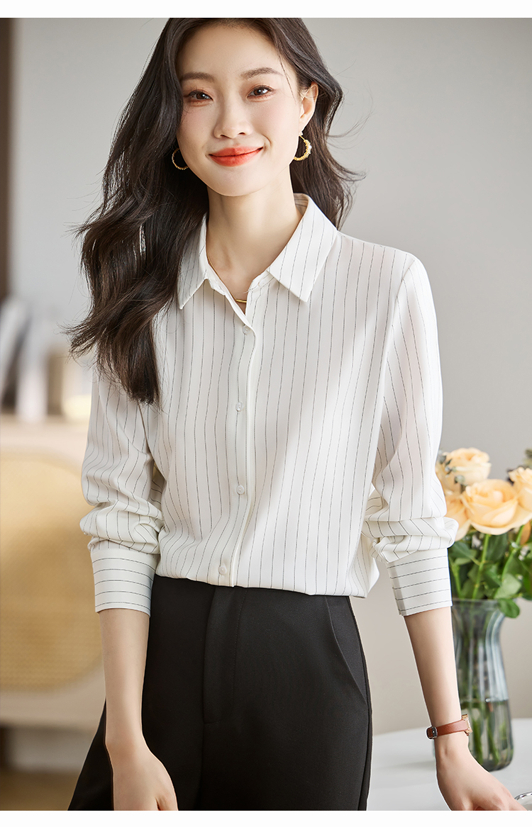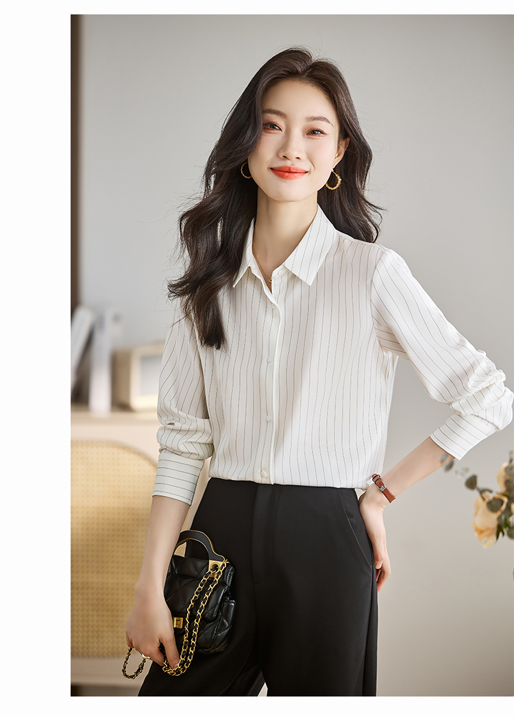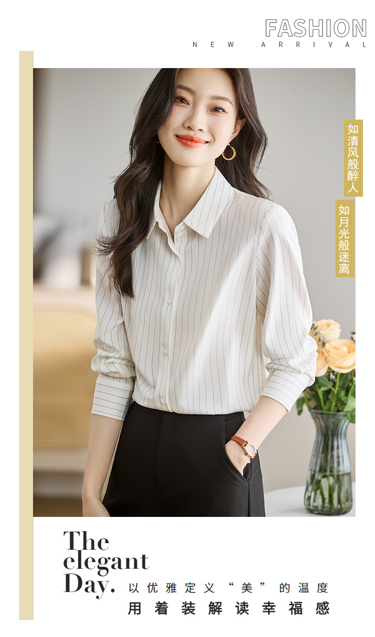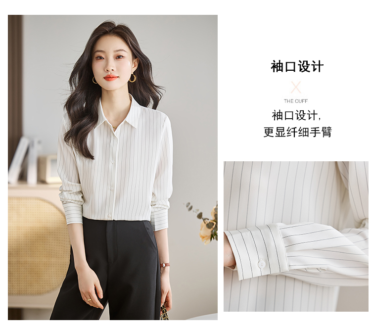 MY17073# 通勤职业白色条纹衬衫时髦洋气面试长袖衬衣垂感上衣女裝貨源服裝批發