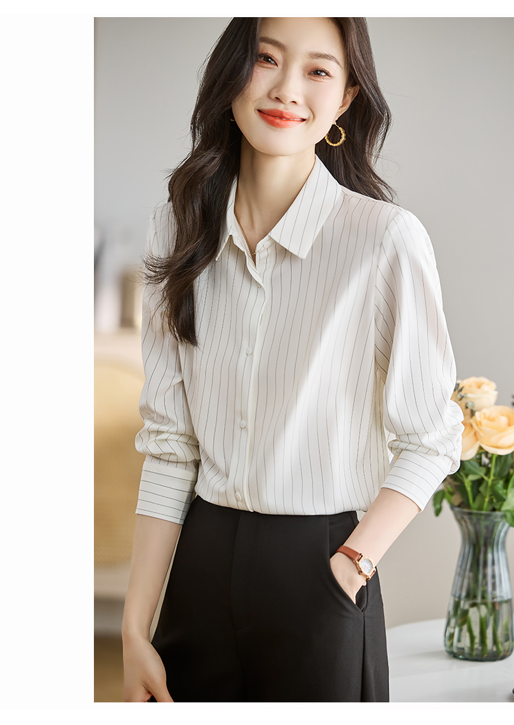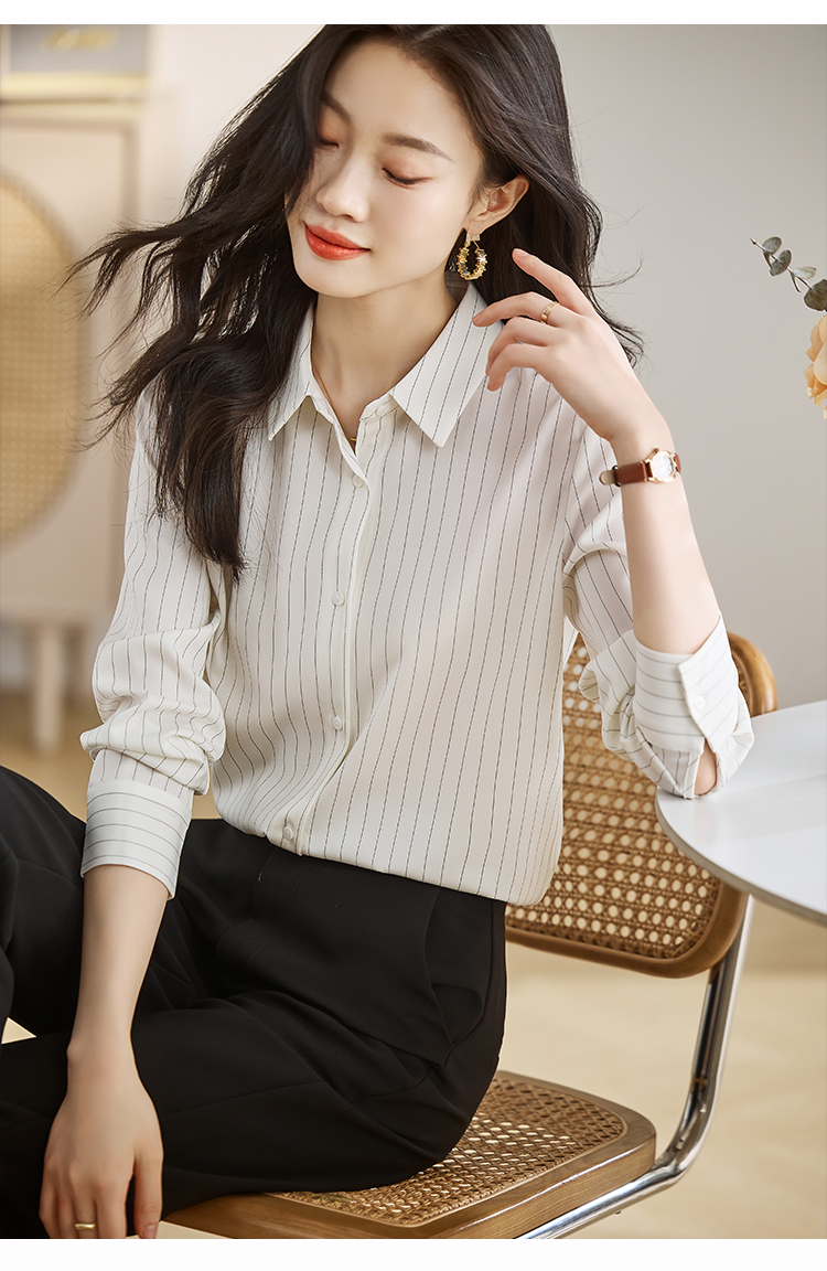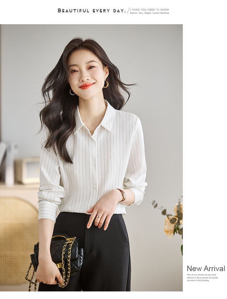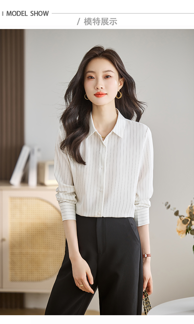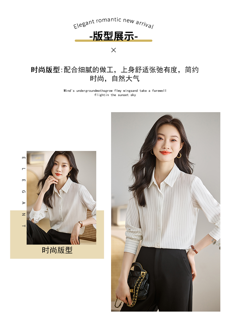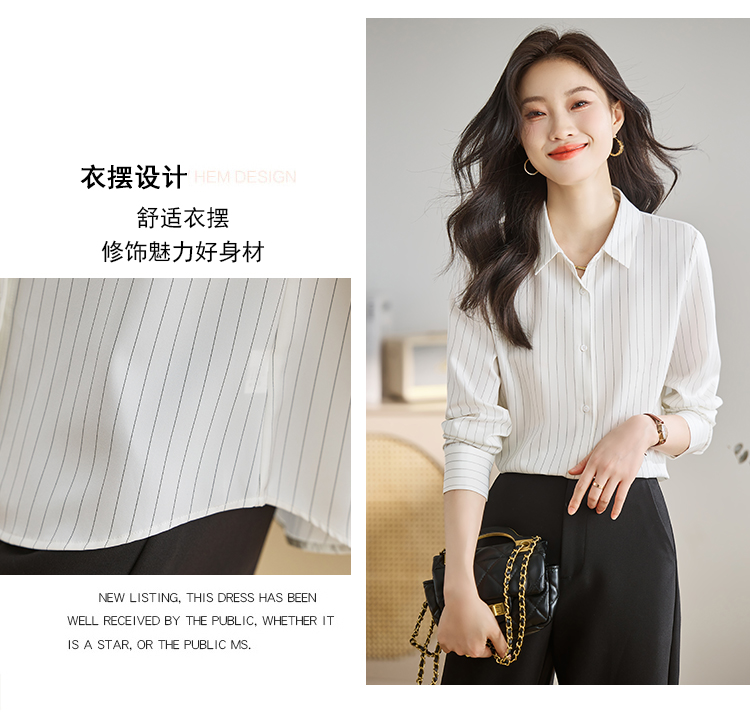 MY17073# 通勤职业白色条纹衬衫时髦洋气面试长袖衬衣垂感上衣女裝貨源服裝批發