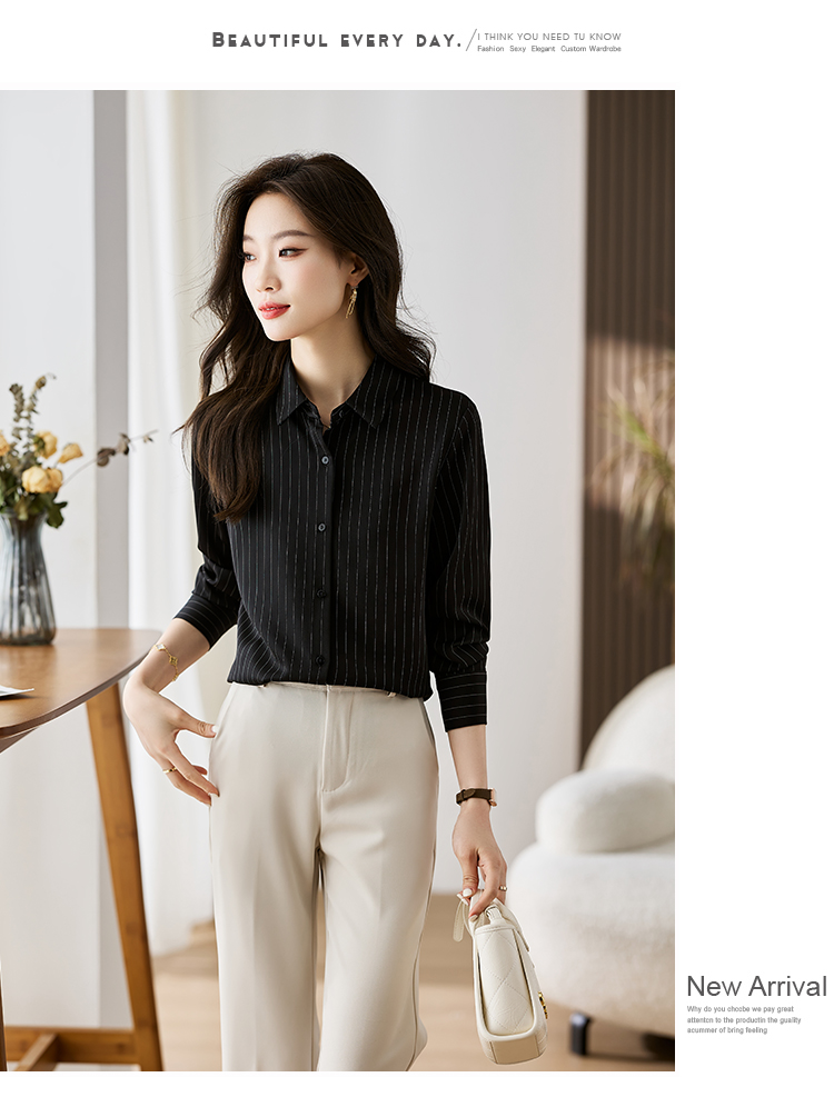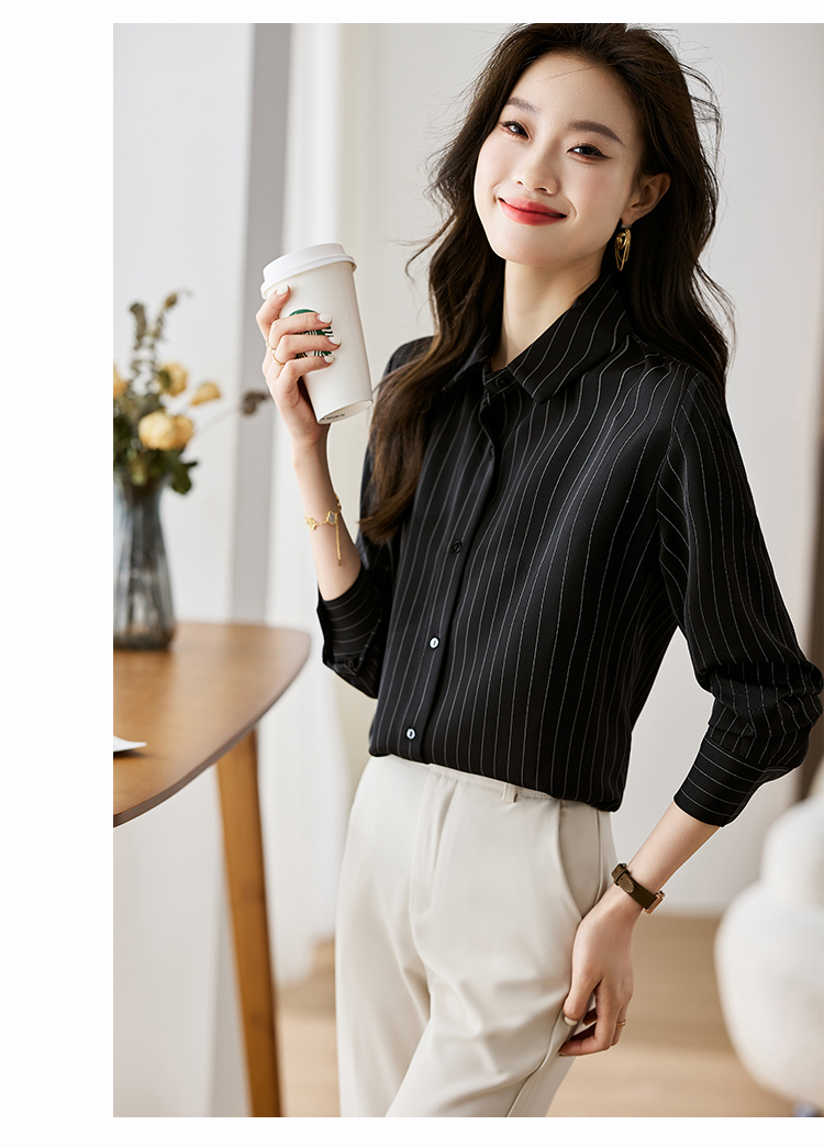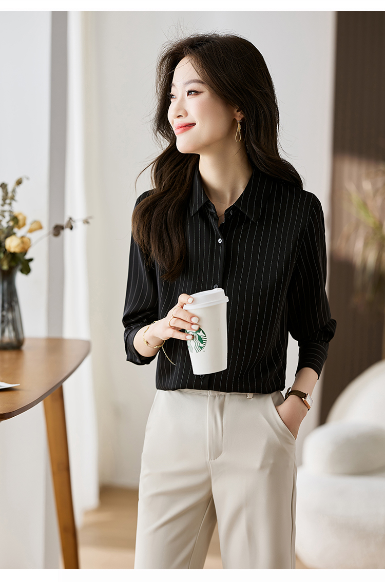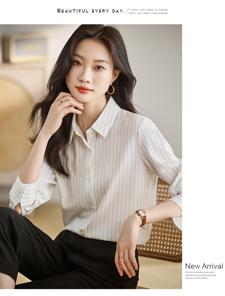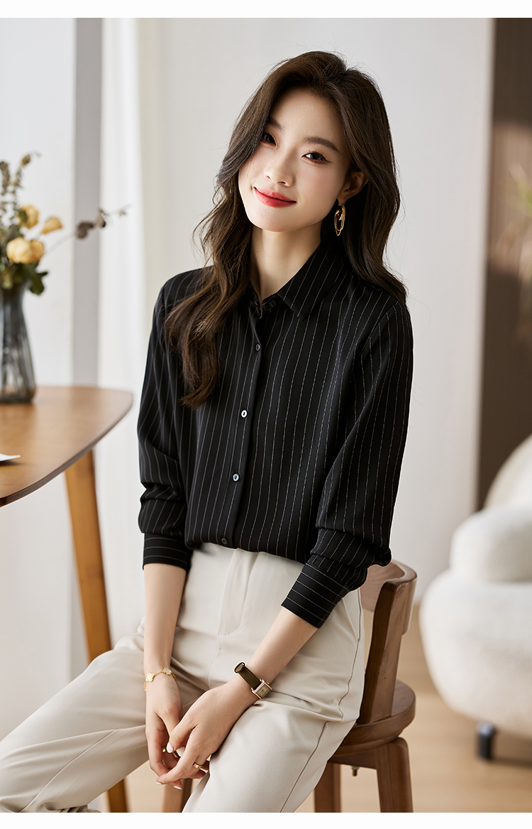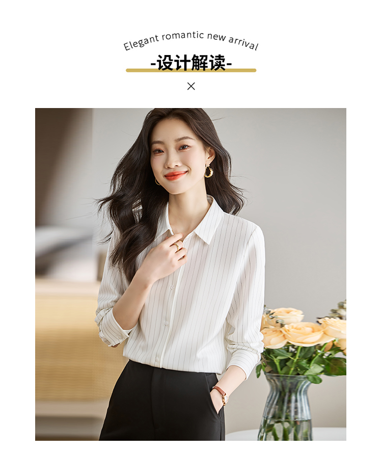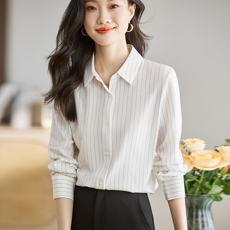 MY17073# 通勤职业白色条纹衬衫时髦洋气面试长袖衬衣垂感上衣女裝貨源服裝批發