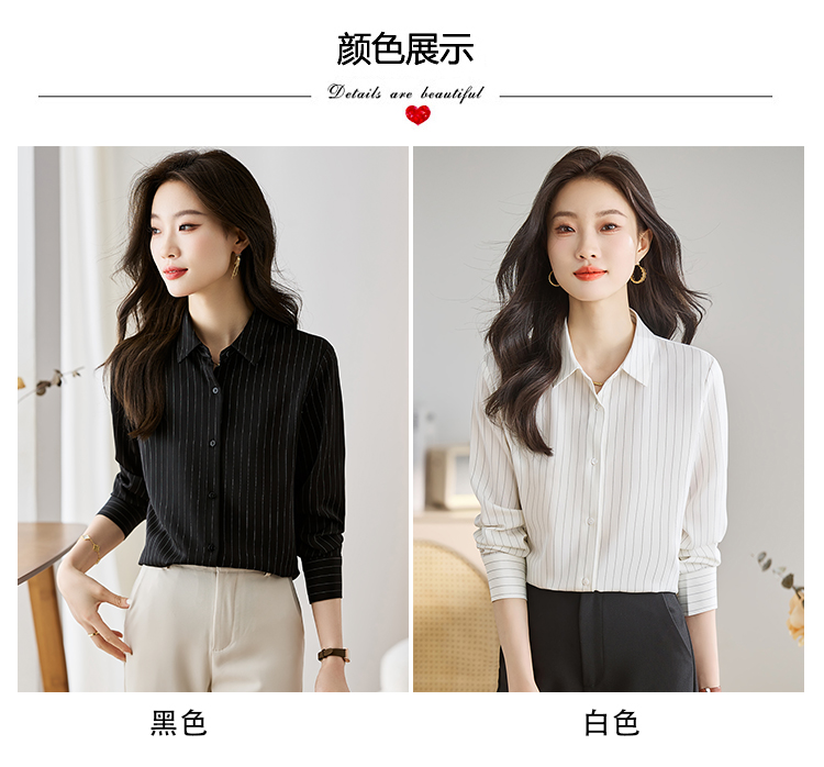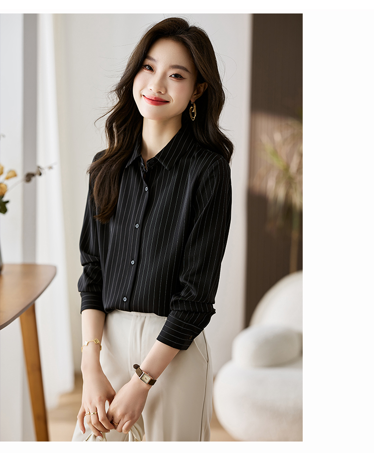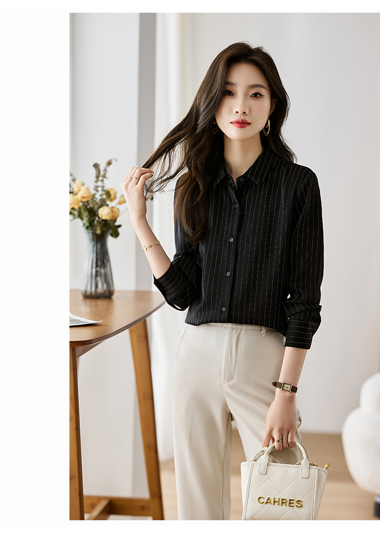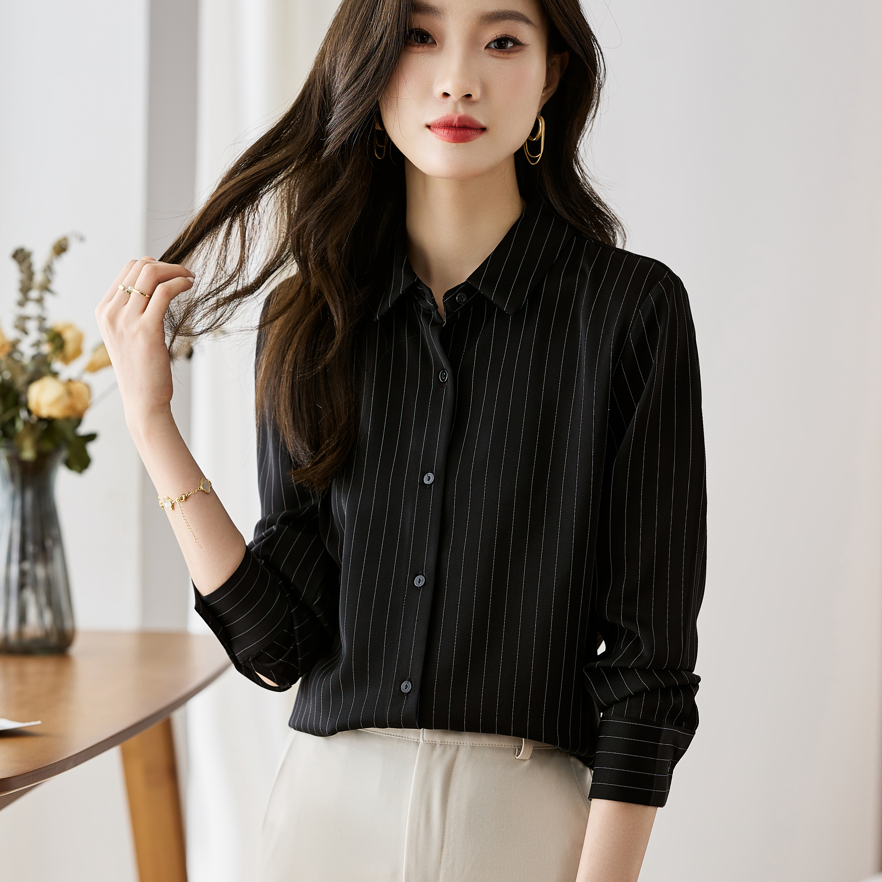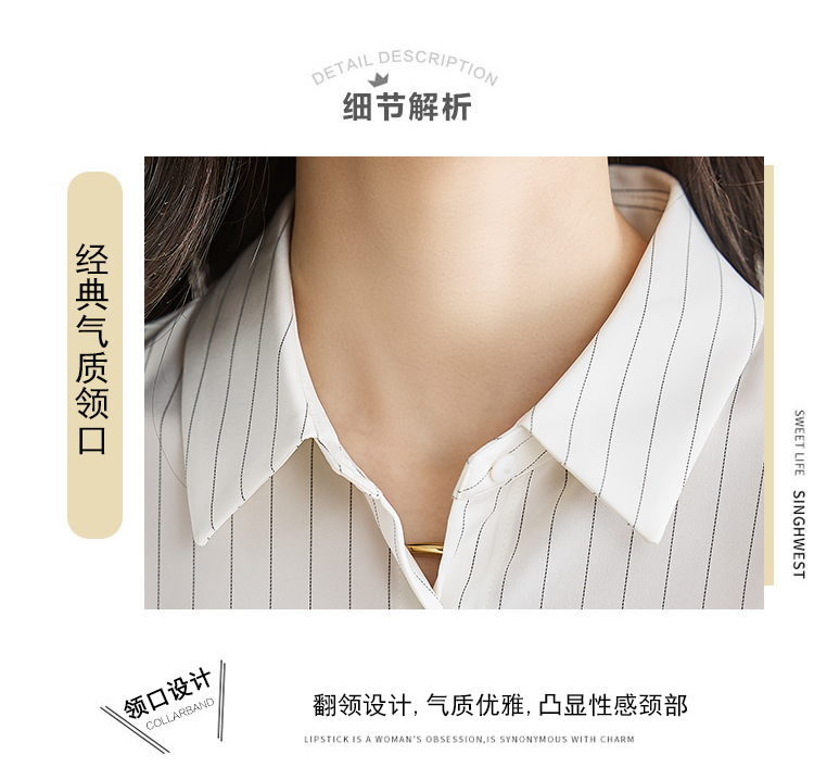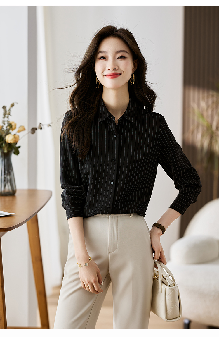 MY17073# 通勤职业白色条纹衬衫时髦洋气面试长袖衬衣垂感上衣女裝貨源服裝批發