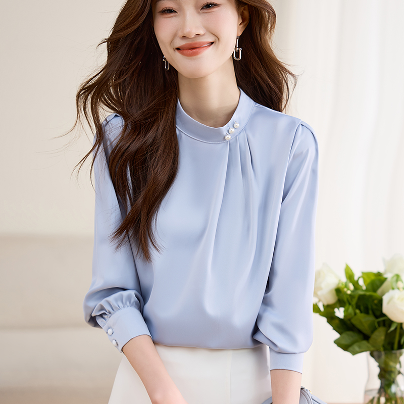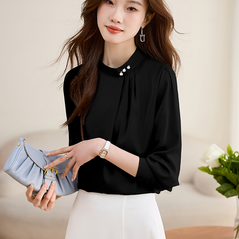 MY17075# 衬衫新款高级感打底内搭小衫气质法式上衣立领衬衣女裝貨源服裝批發