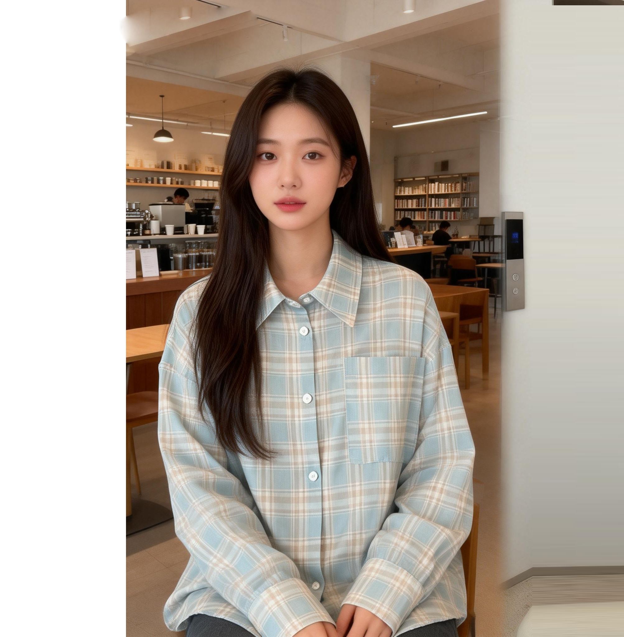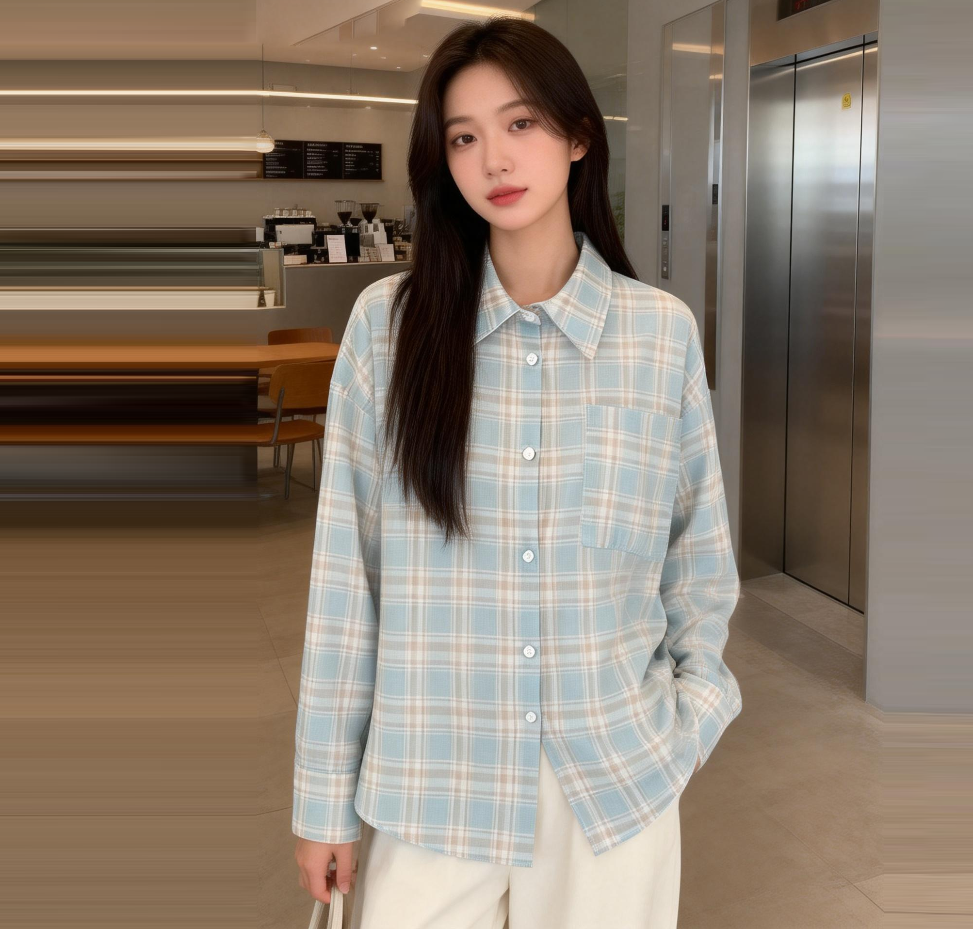 MY17085# 新款美式复古薄款格子长袖衬衫外套夏季设计防晒开衫宽松衬衣女裝貨源服裝批發