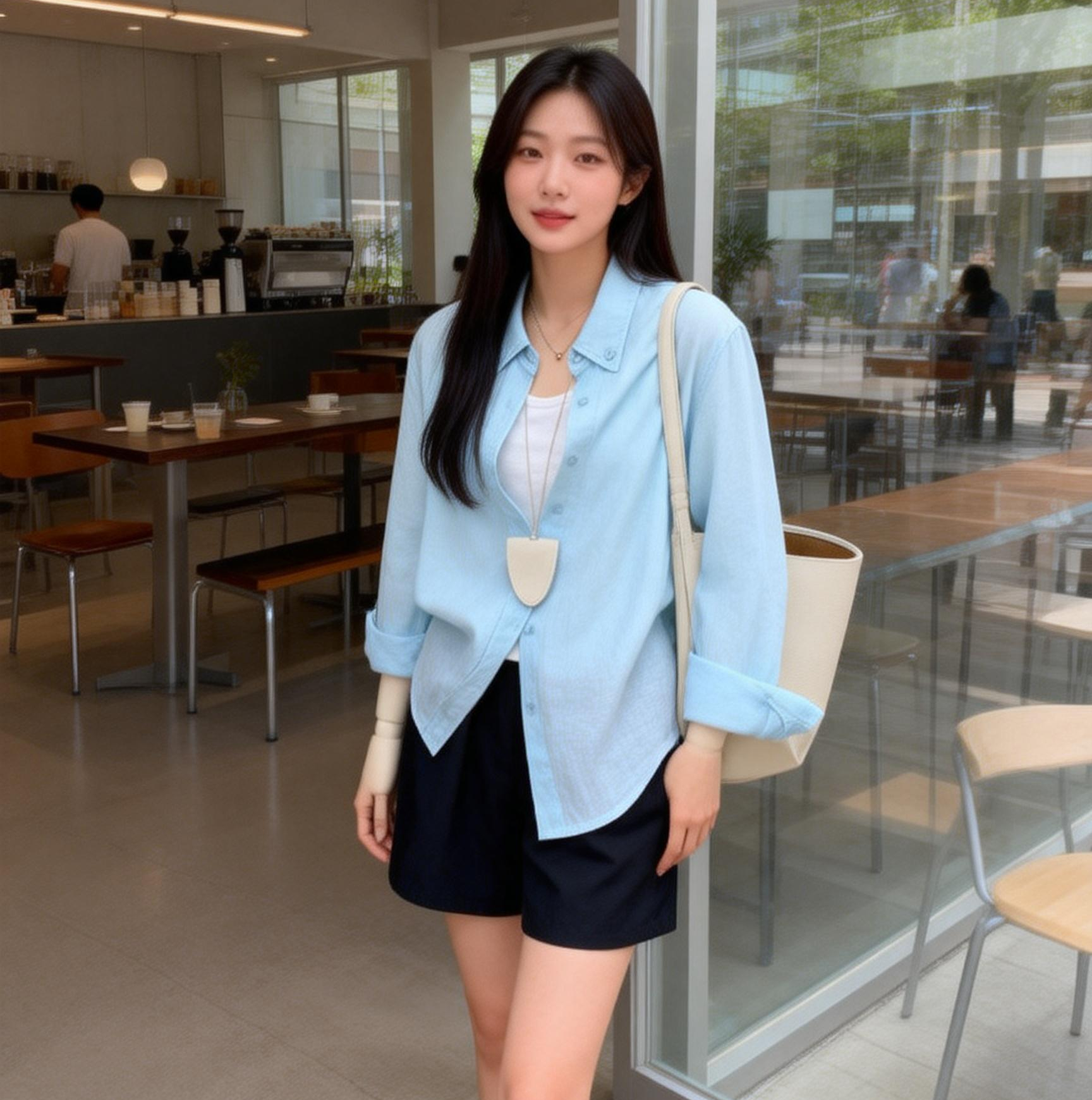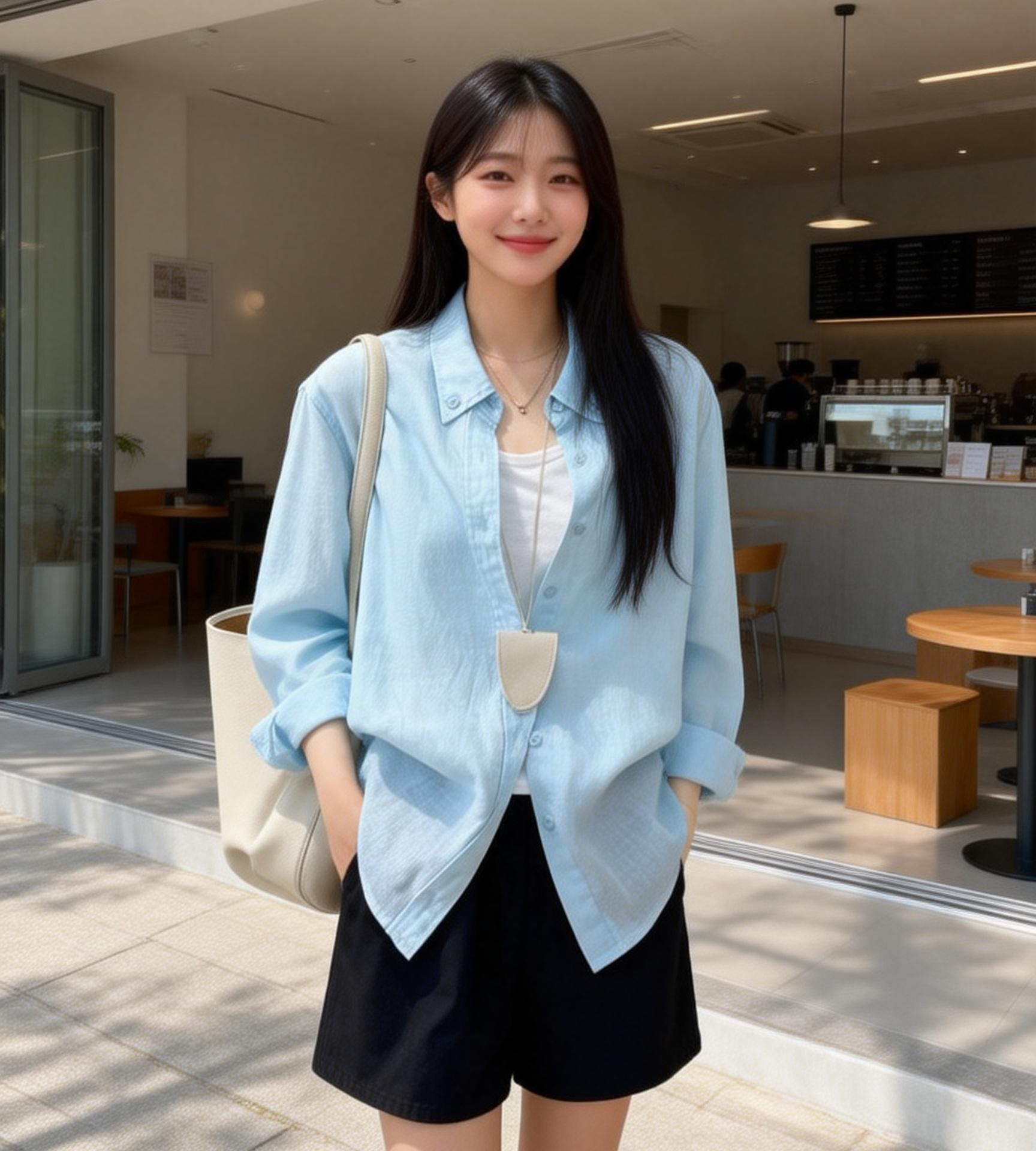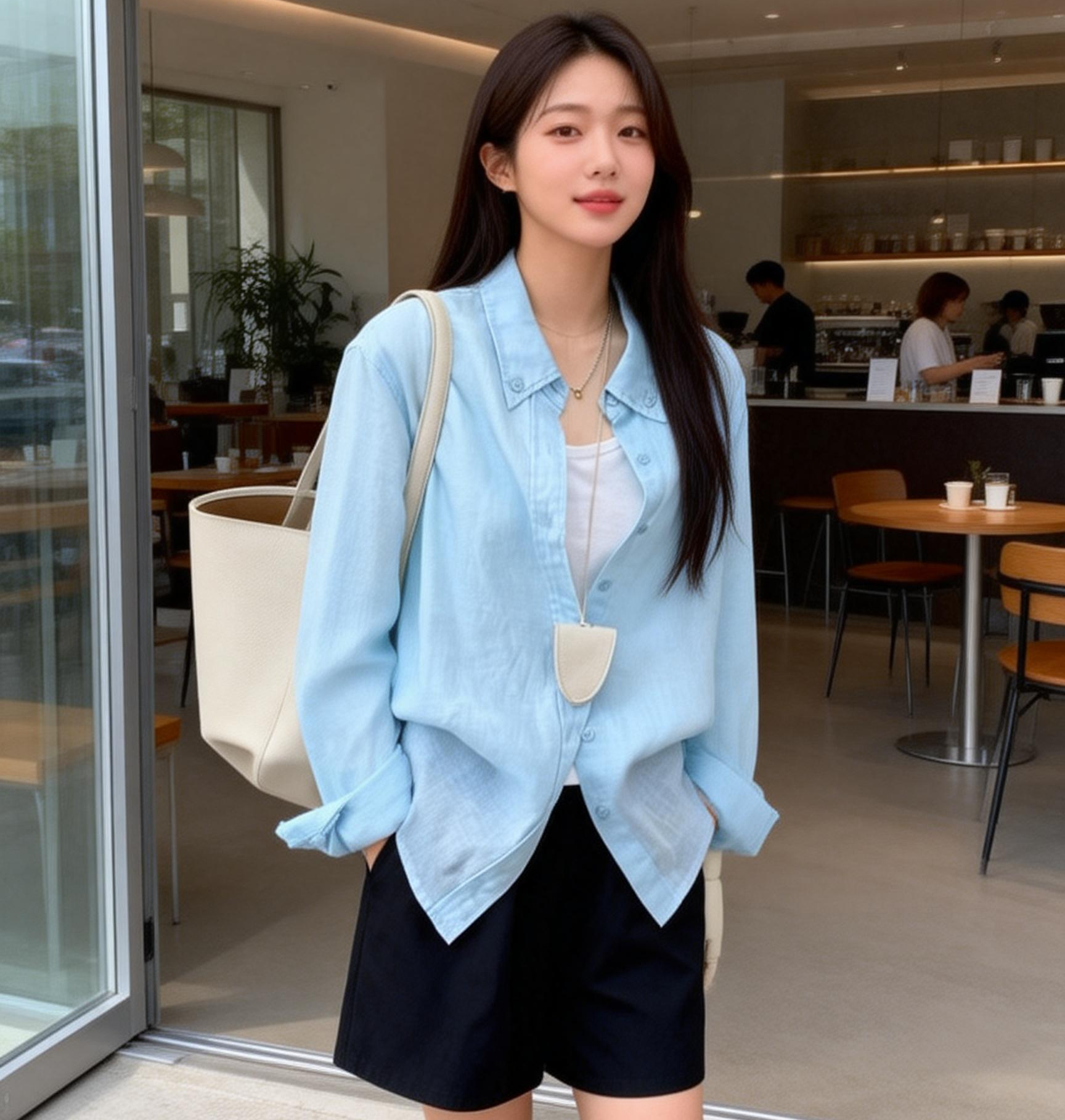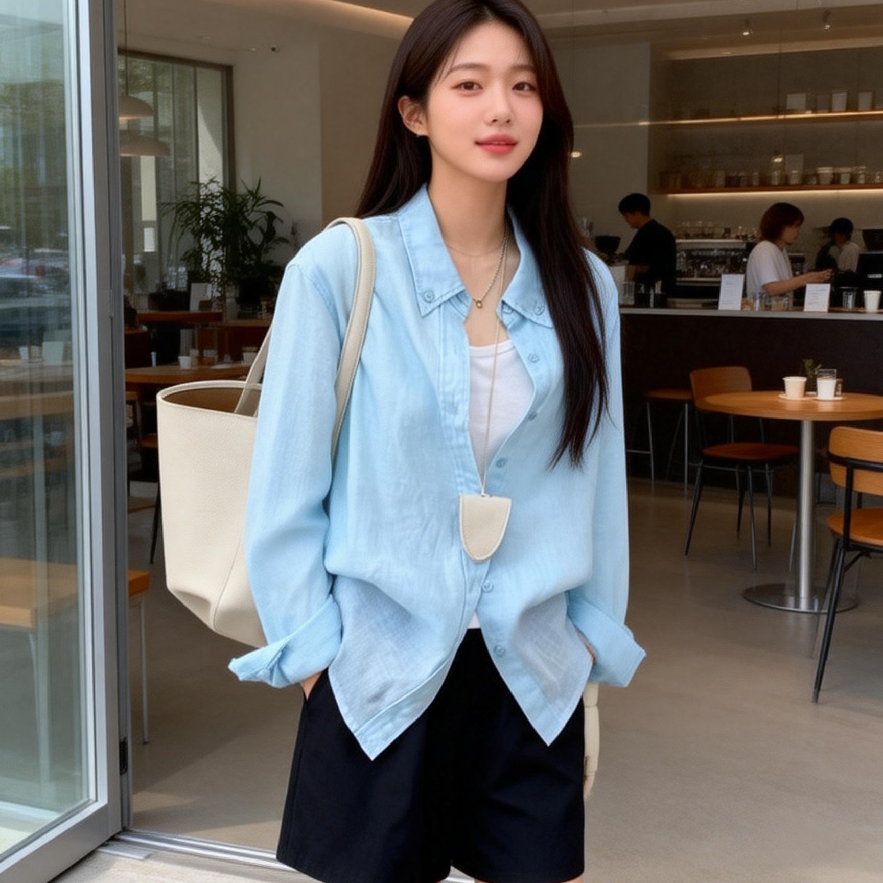 MY17086# 韩版高级感宽松显瘦亚麻蓝色衬衫女夏季薄款休闲长袖外套上衣女裝貨源服裝批發