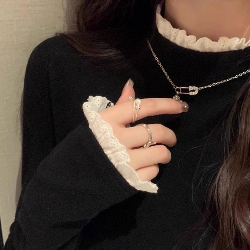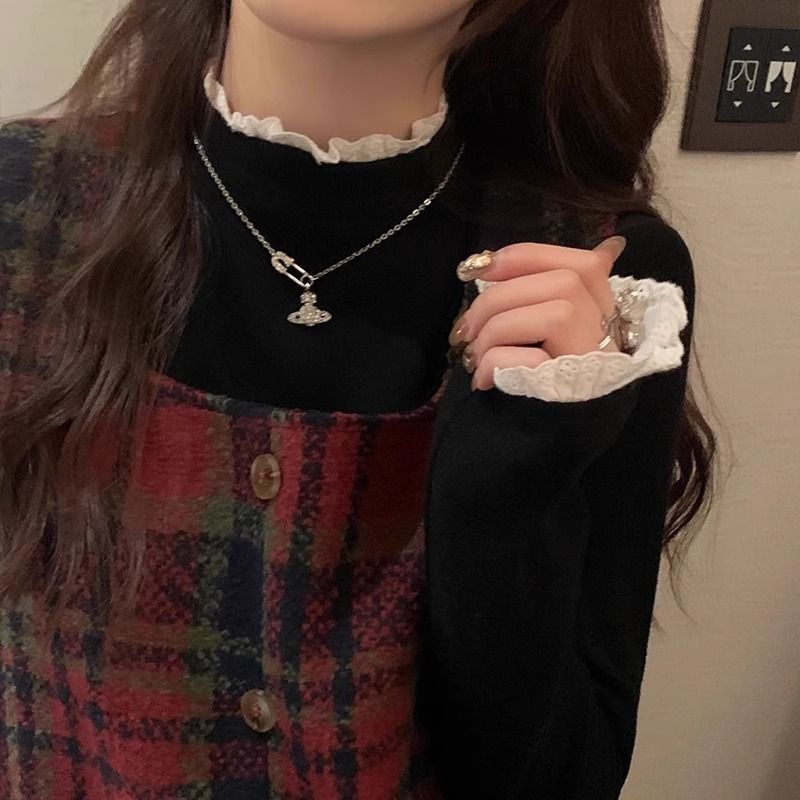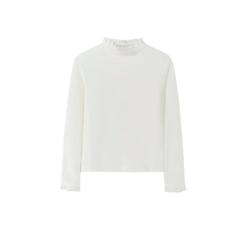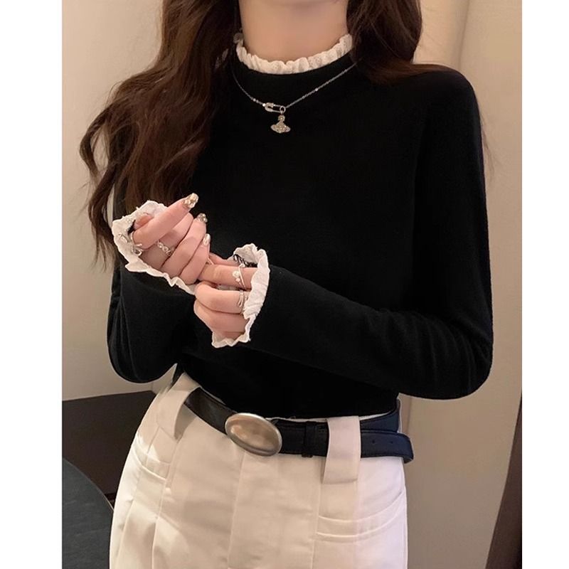 MY17108# 蕾丝半高领打底德绒高级感内搭黑色长袖T恤设计感小众上衣女裝貨源服裝批發