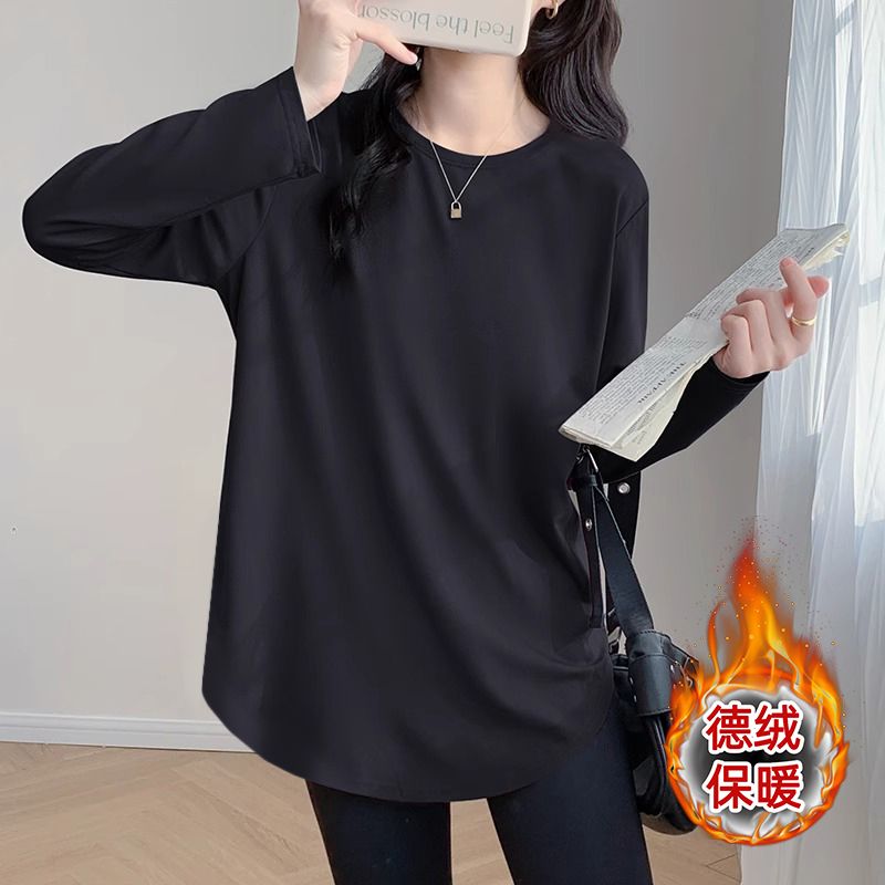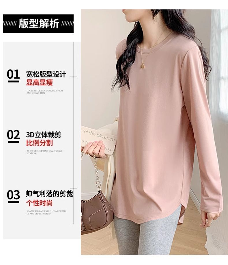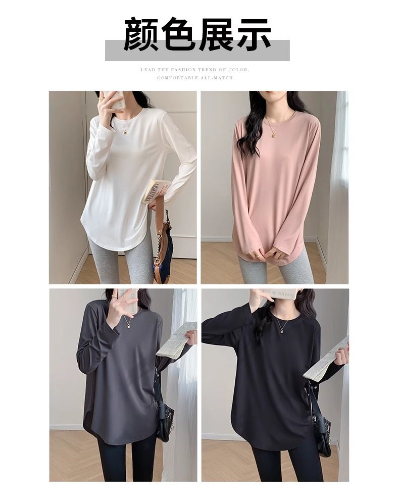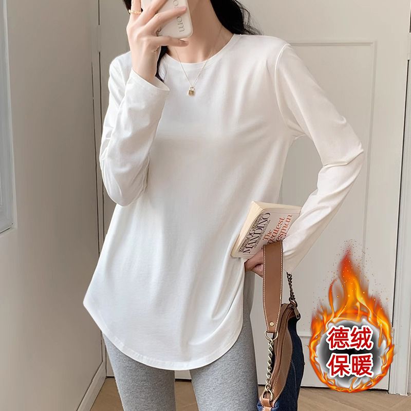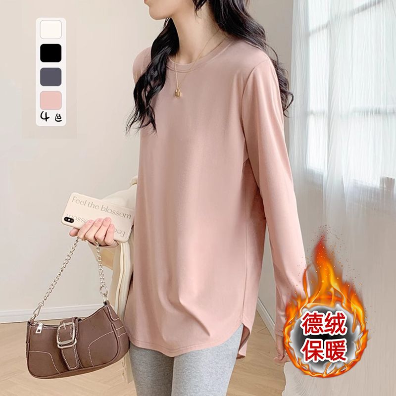 MY17111# 新款中长款双面德绒长袖打底衫上衣遮臀弧形下摆内搭T恤女裝貨源服裝批發