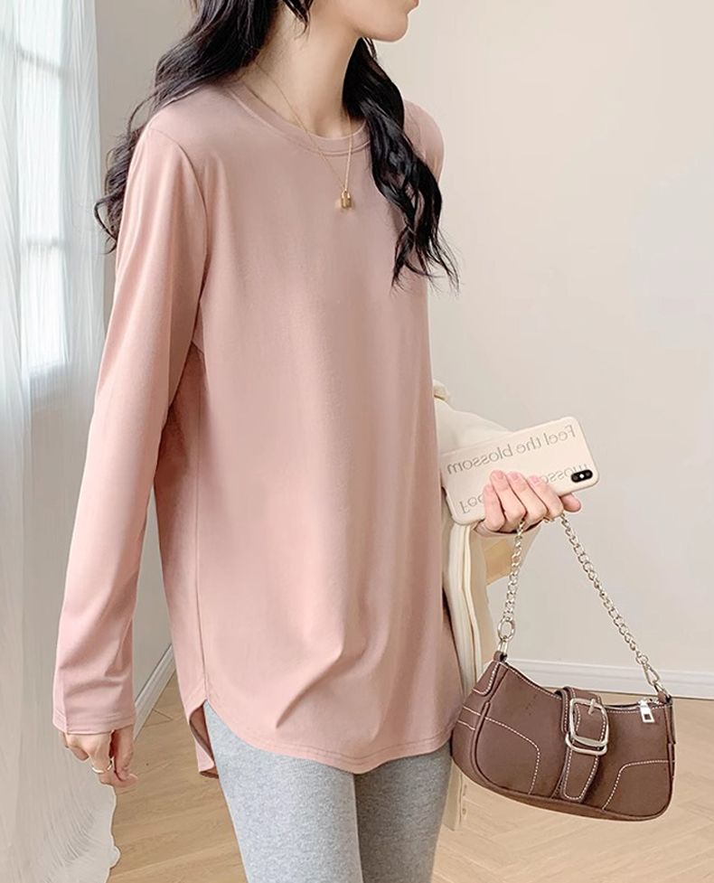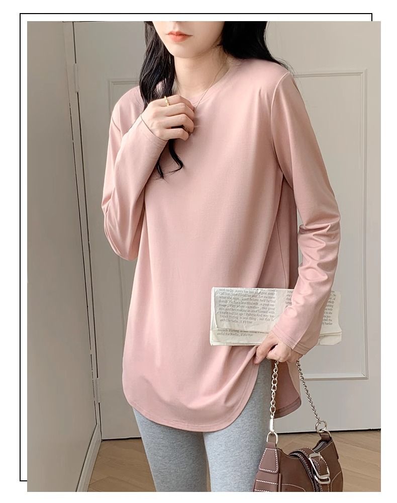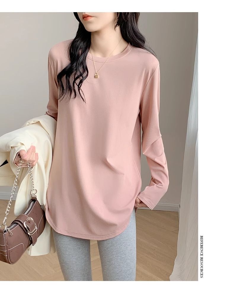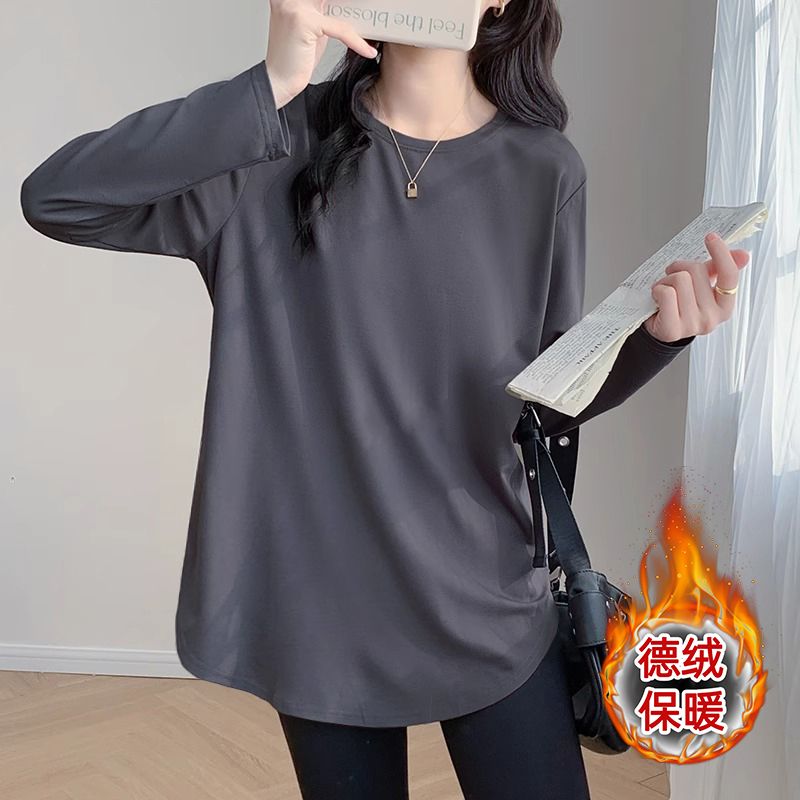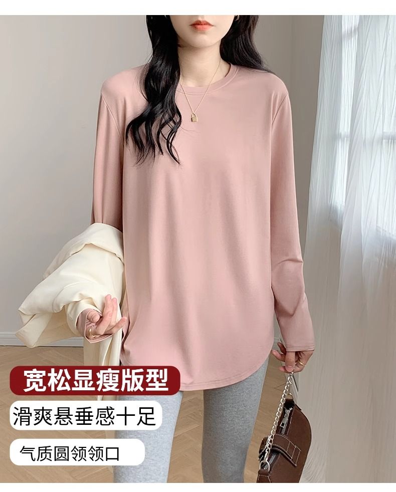 MY17111# 新款中长款双面德绒长袖打底衫上衣遮臀弧形下摆内搭T恤女裝貨源服裝批發
