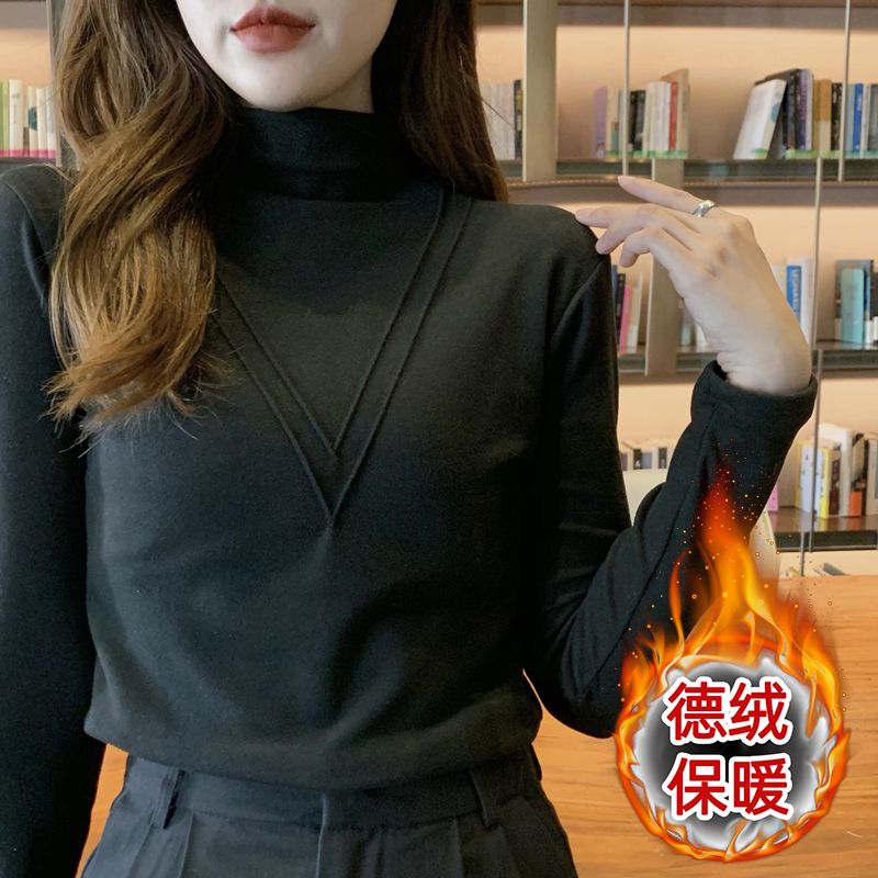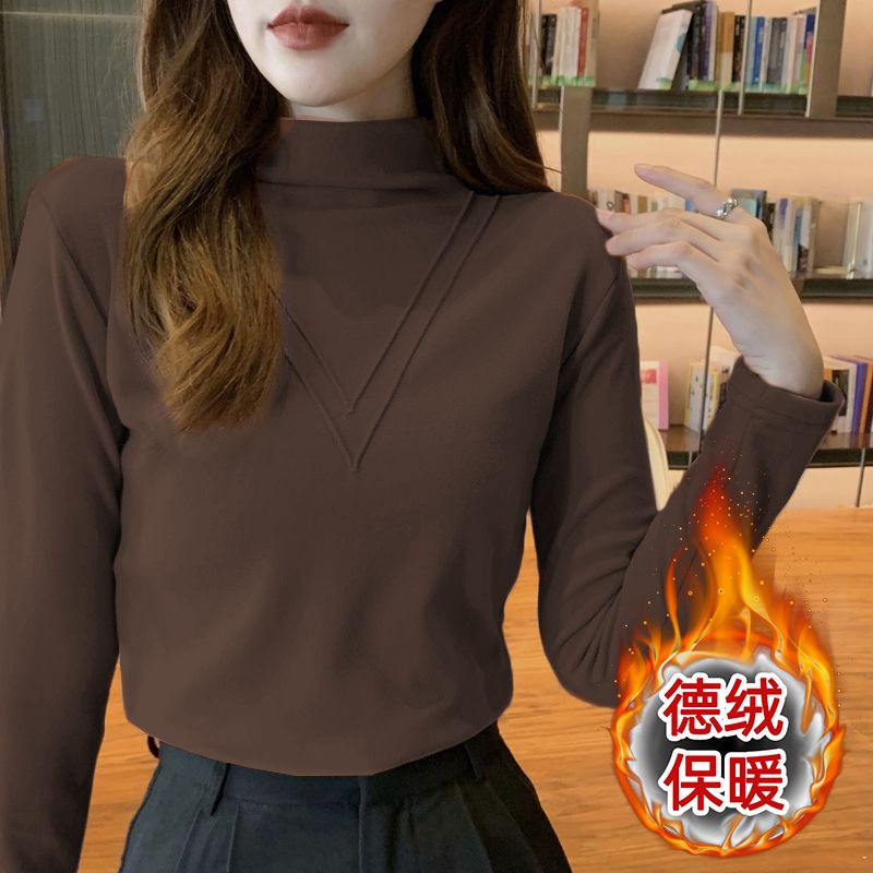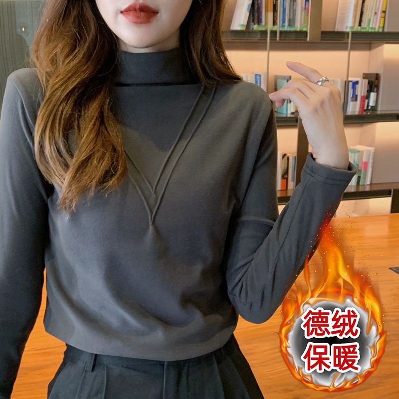 MY17113# 螺纹德绒半高领打底衫女内搭新款长袖t恤显瘦上衣服女裝貨源服裝批發