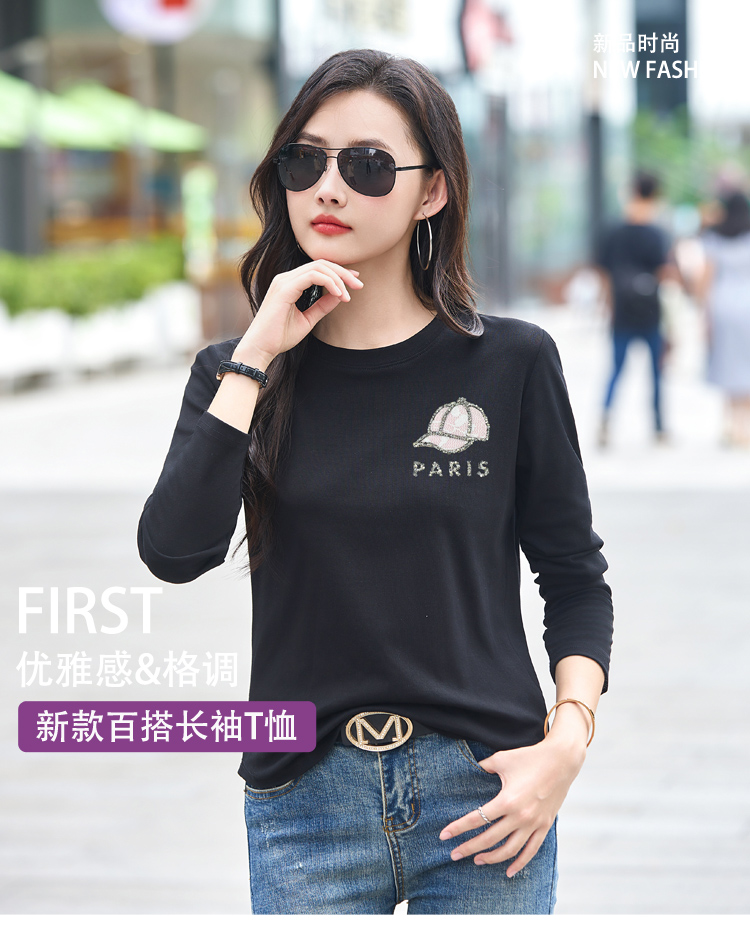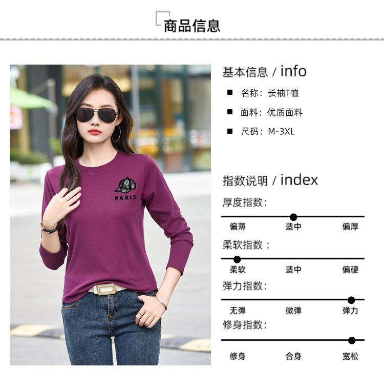 MY17120# 棉质打底衫女宽松简约休闲高级感内搭大码长袖t恤上衣女女裝貨源服裝批發