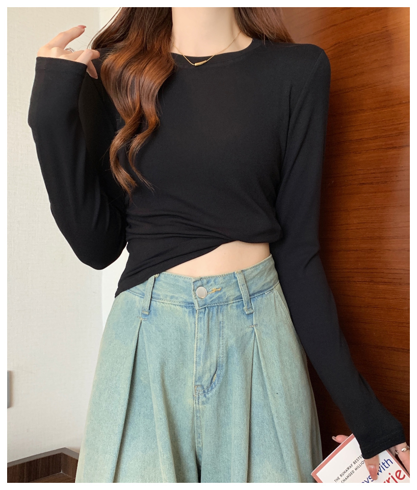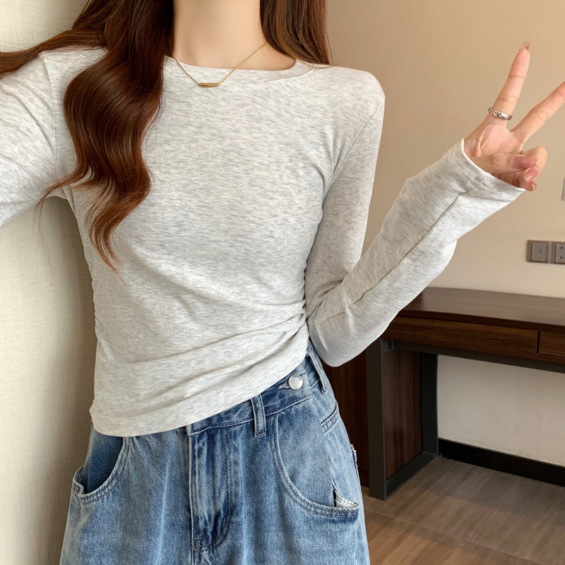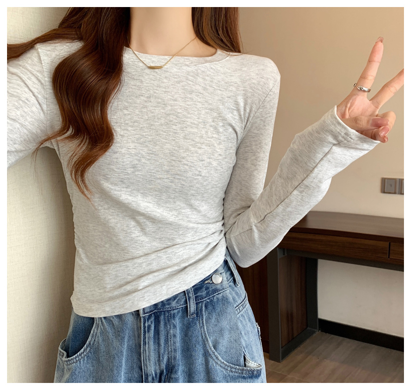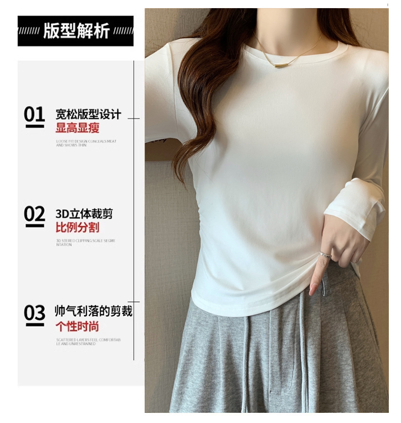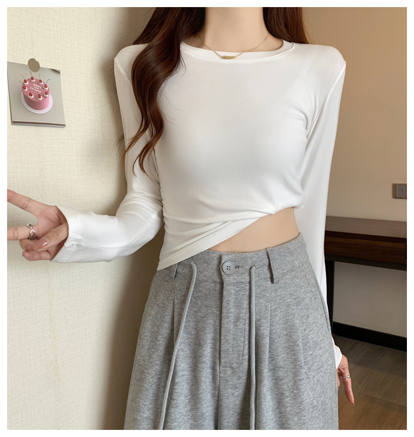 MY17134# 新款美式正肩长袖t恤女设计感抽褶紧身短款打底衫上衣女女裝貨源服裝批發