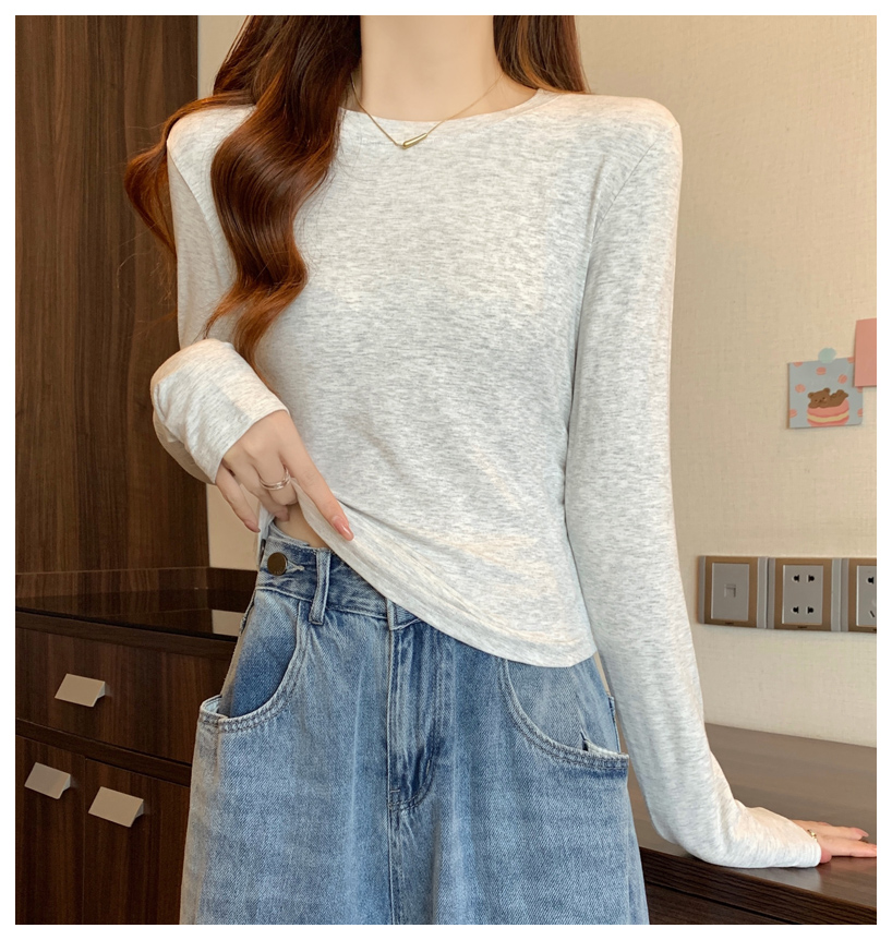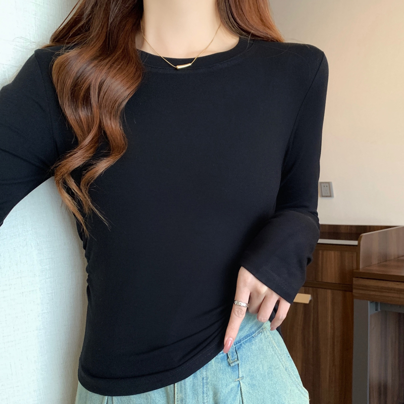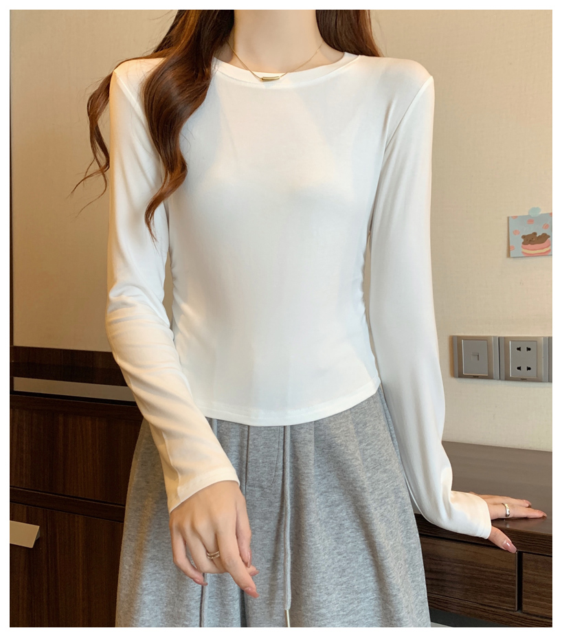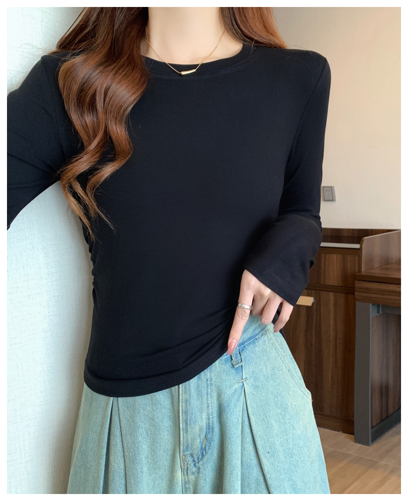 MY17134# 新款美式正肩长袖t恤女设计感抽褶紧身短款打底衫上衣女女裝貨源服裝批發