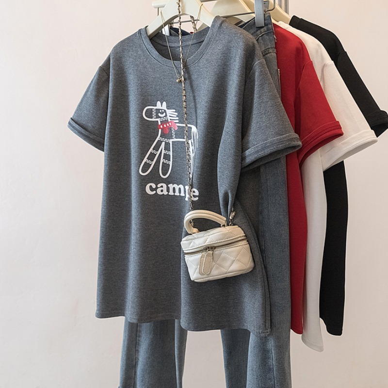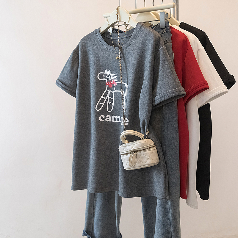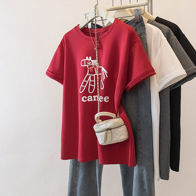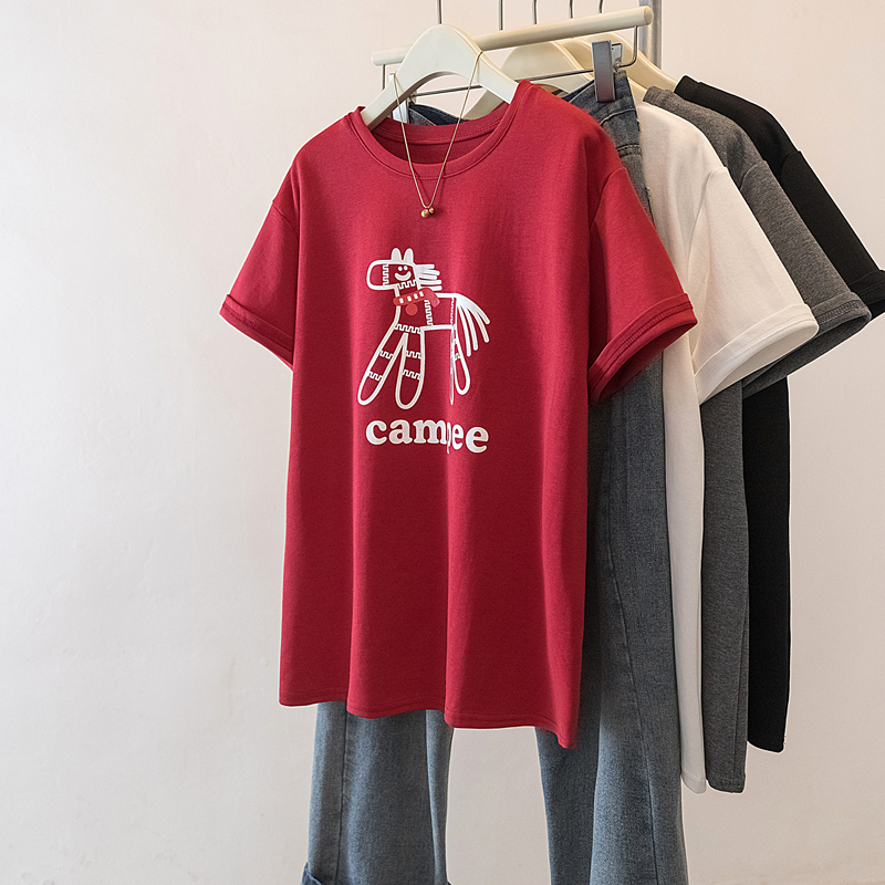 MY17139# 大码新年红色短袖T恤女新款马年本命年宽松百搭上衣女裝貨源服裝批發
