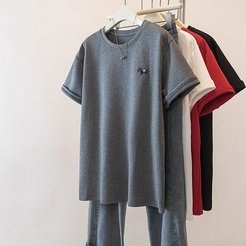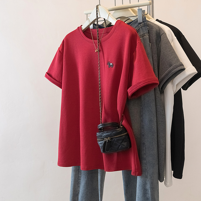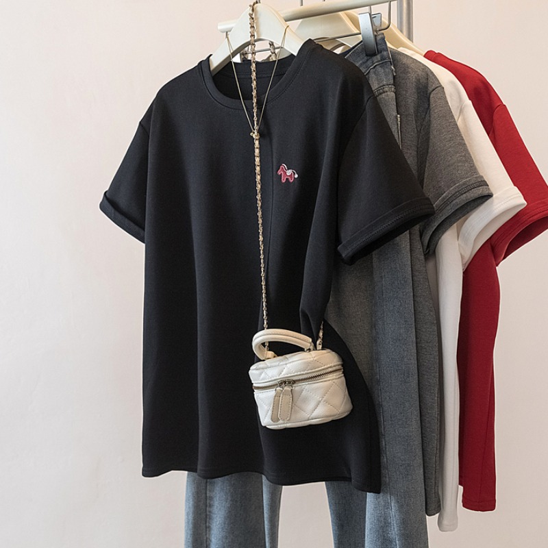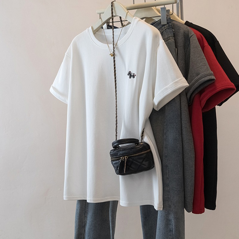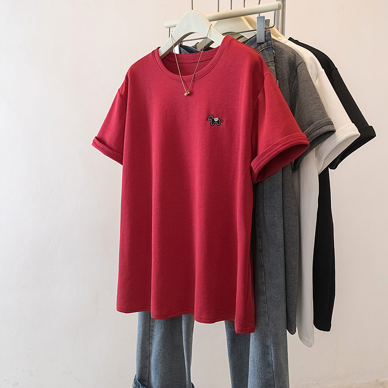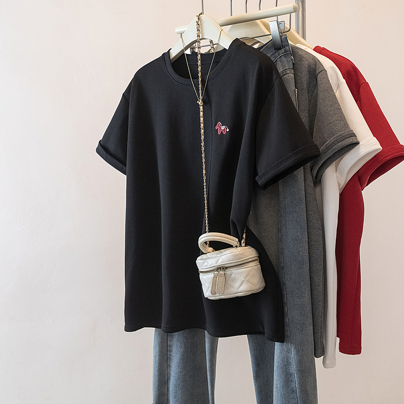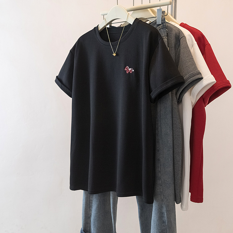 MY17142# 大码重工刺绣小马短袖T恤女新款本命年宽松百搭上衣女裝貨源服裝批發