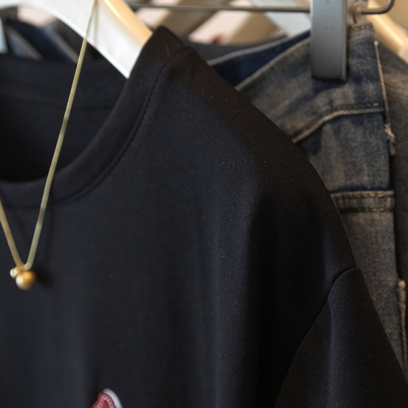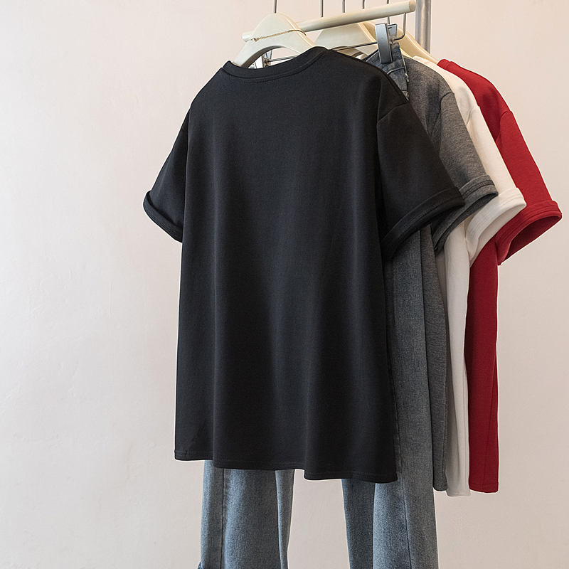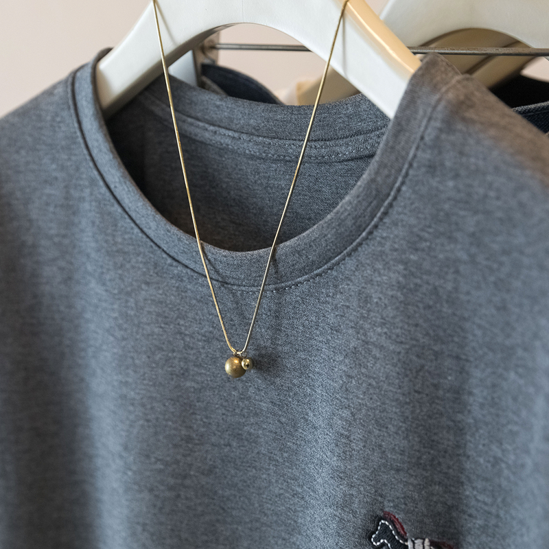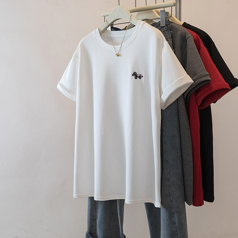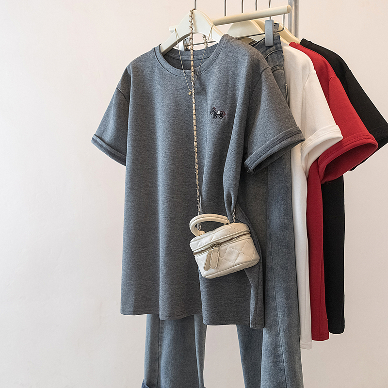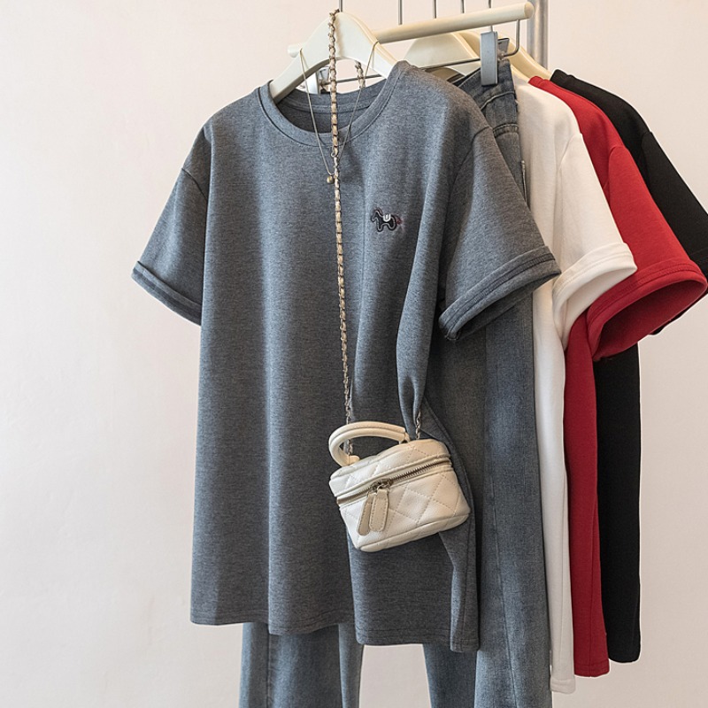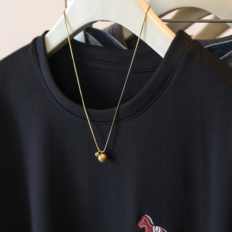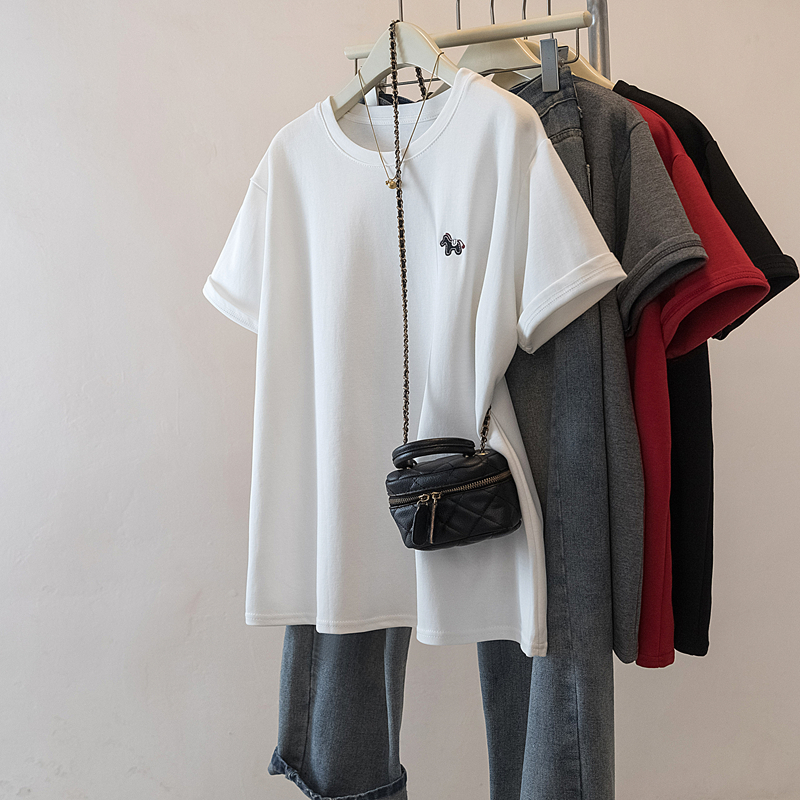 MY17142# 大码重工刺绣小马短袖T恤女新款本命年宽松百搭上衣女裝貨源服裝批發