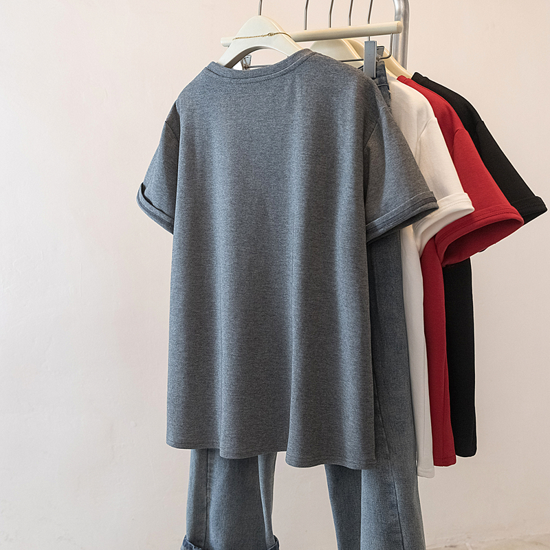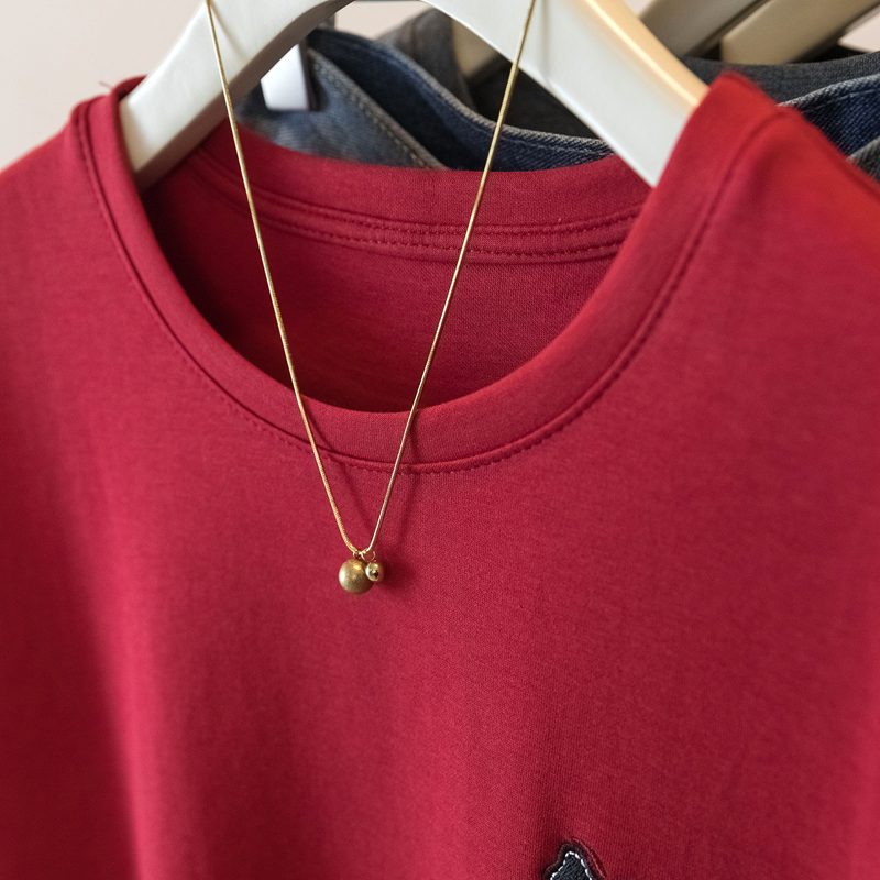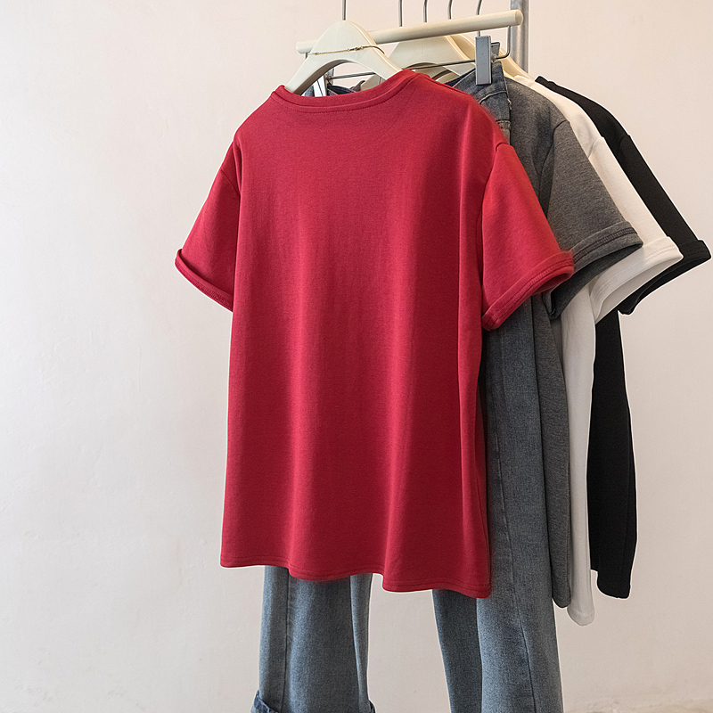 MY17141# 大码女装发财印花T恤宽松百搭红色中长款上衣女裝貨源服裝批...